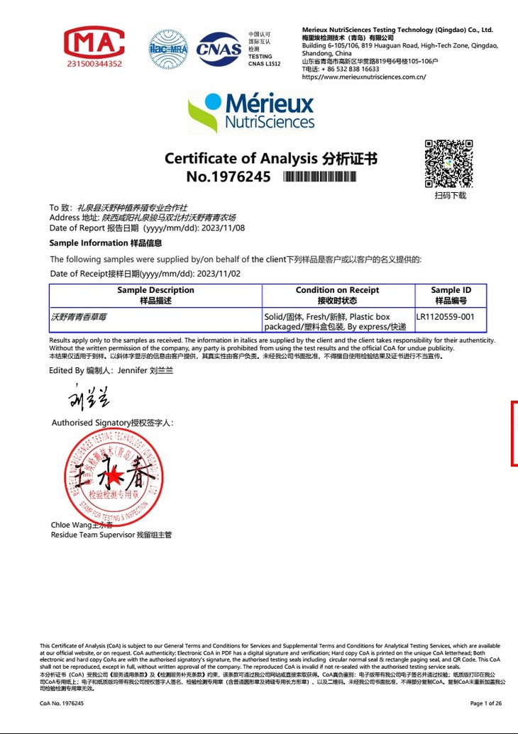 草莓的经过573项农残检测都是无检出