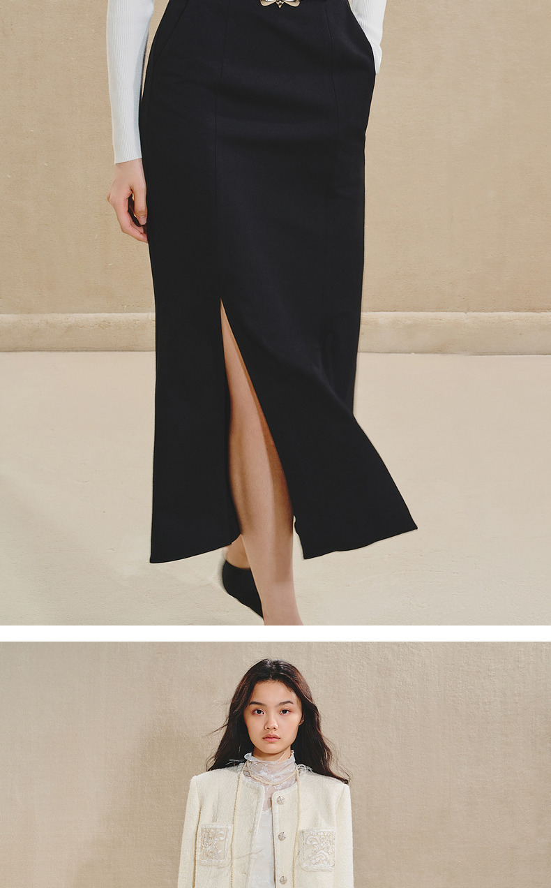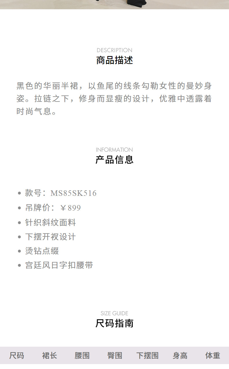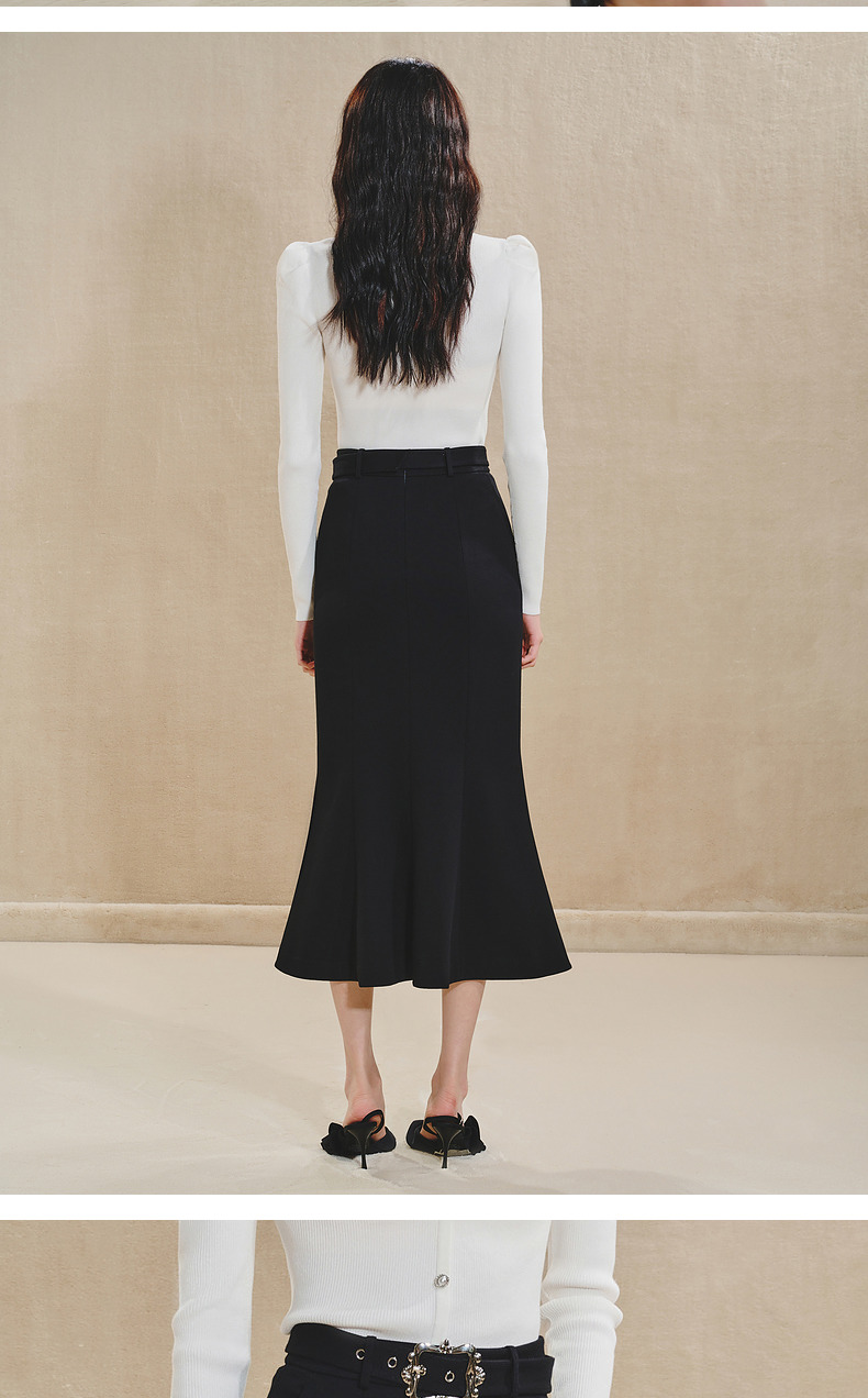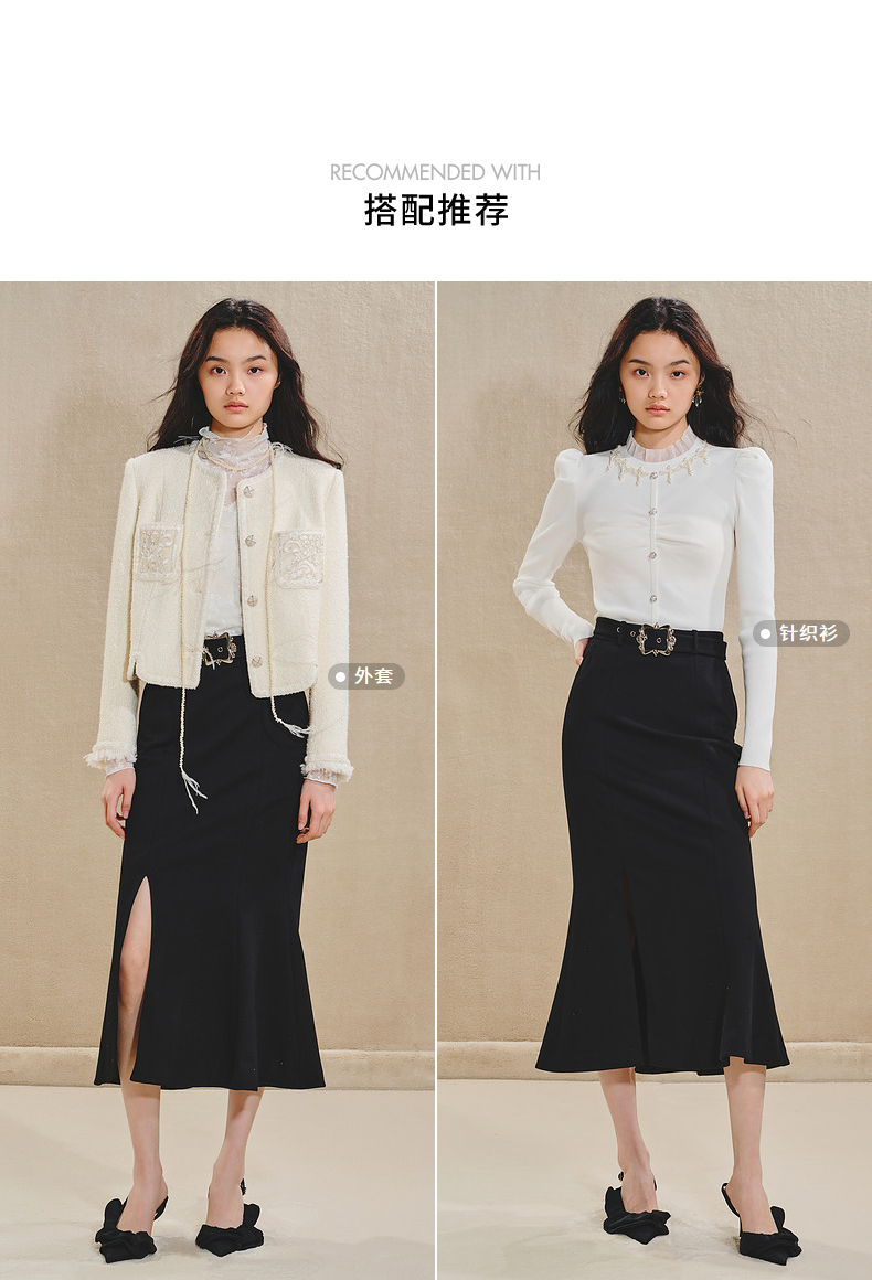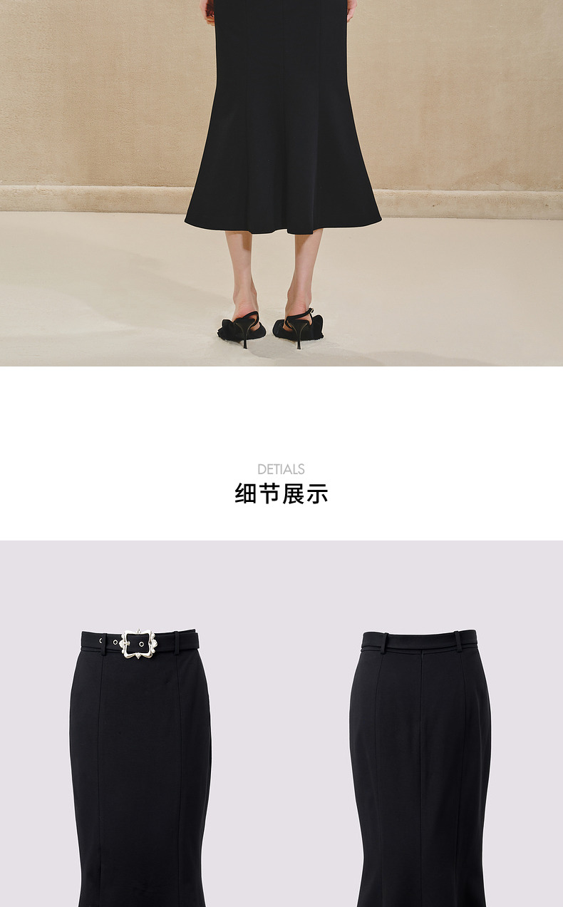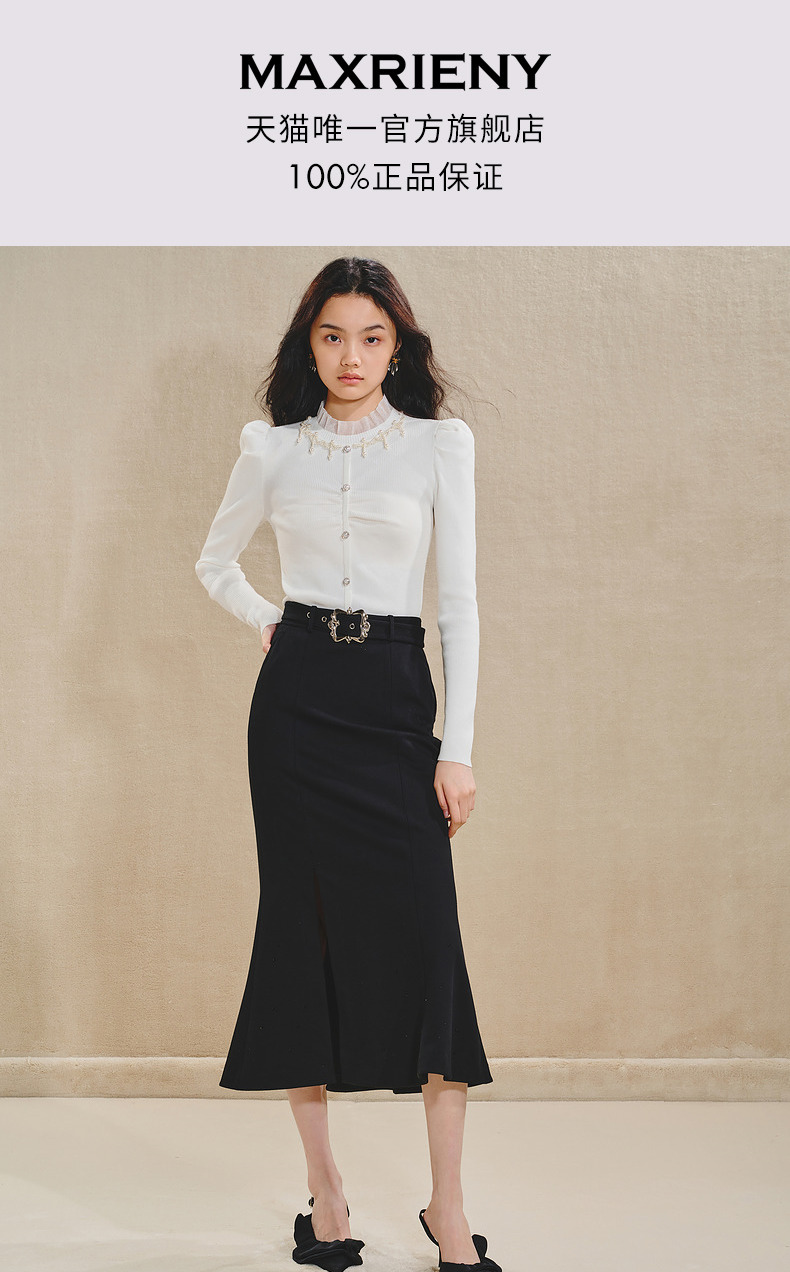 【商场同款】MAXRIENY鱼美人半裙复古优雅感开叉半身裙子鱼尾修身(货号:MS85SK516)