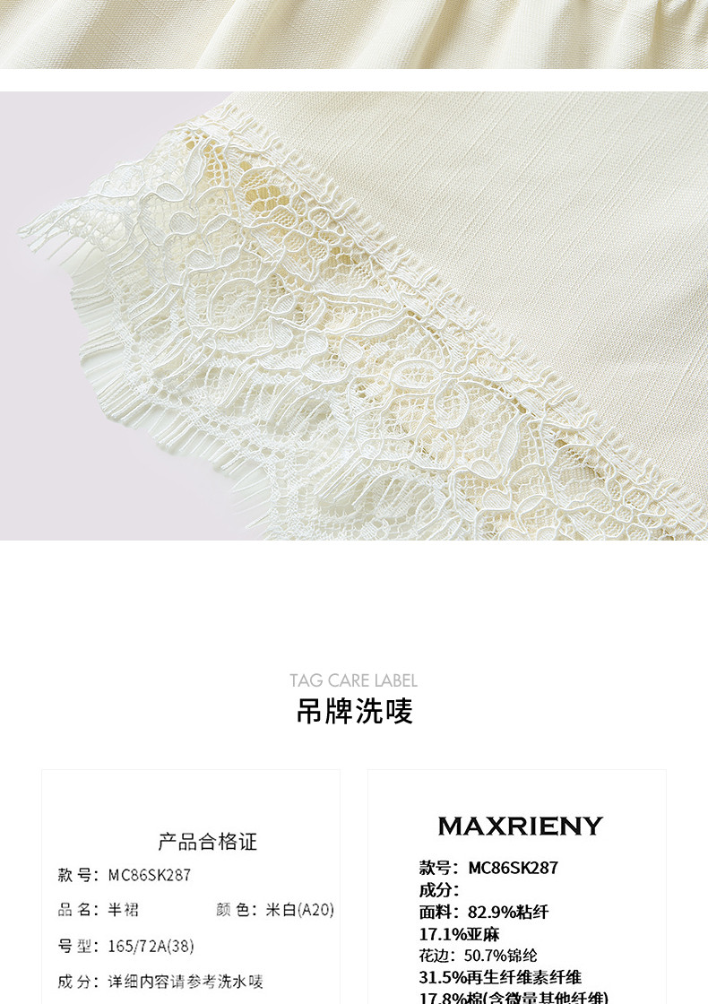 【商场同款】MAXRIENY优雅度假风不规则裙摆蕾丝半裙25夏季新款(货号:MC86SK287)