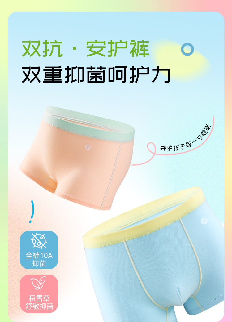 MILOFISH米乐鱼 儿童精梳长绒棉双抗内裤3条 (添加积雪草舒敏成分)