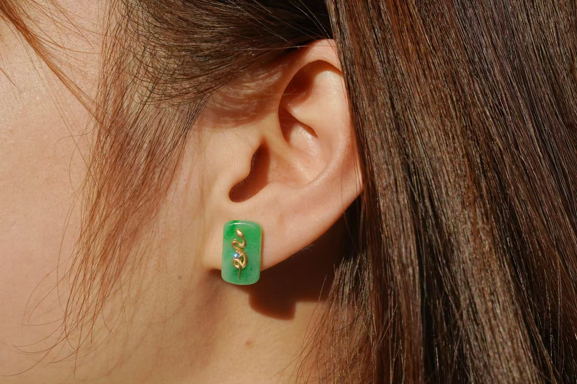 【喆】翡翠蛇纹耳钉