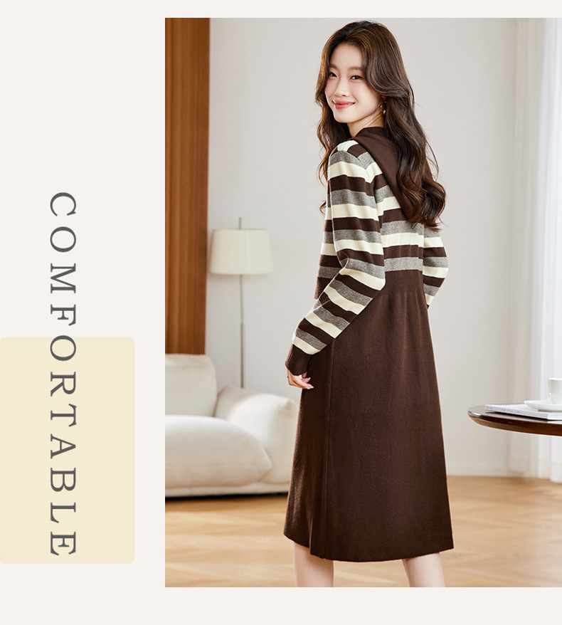 丁摩 秋冬女装连帽假两件针织连衣裙2813 商品图3
