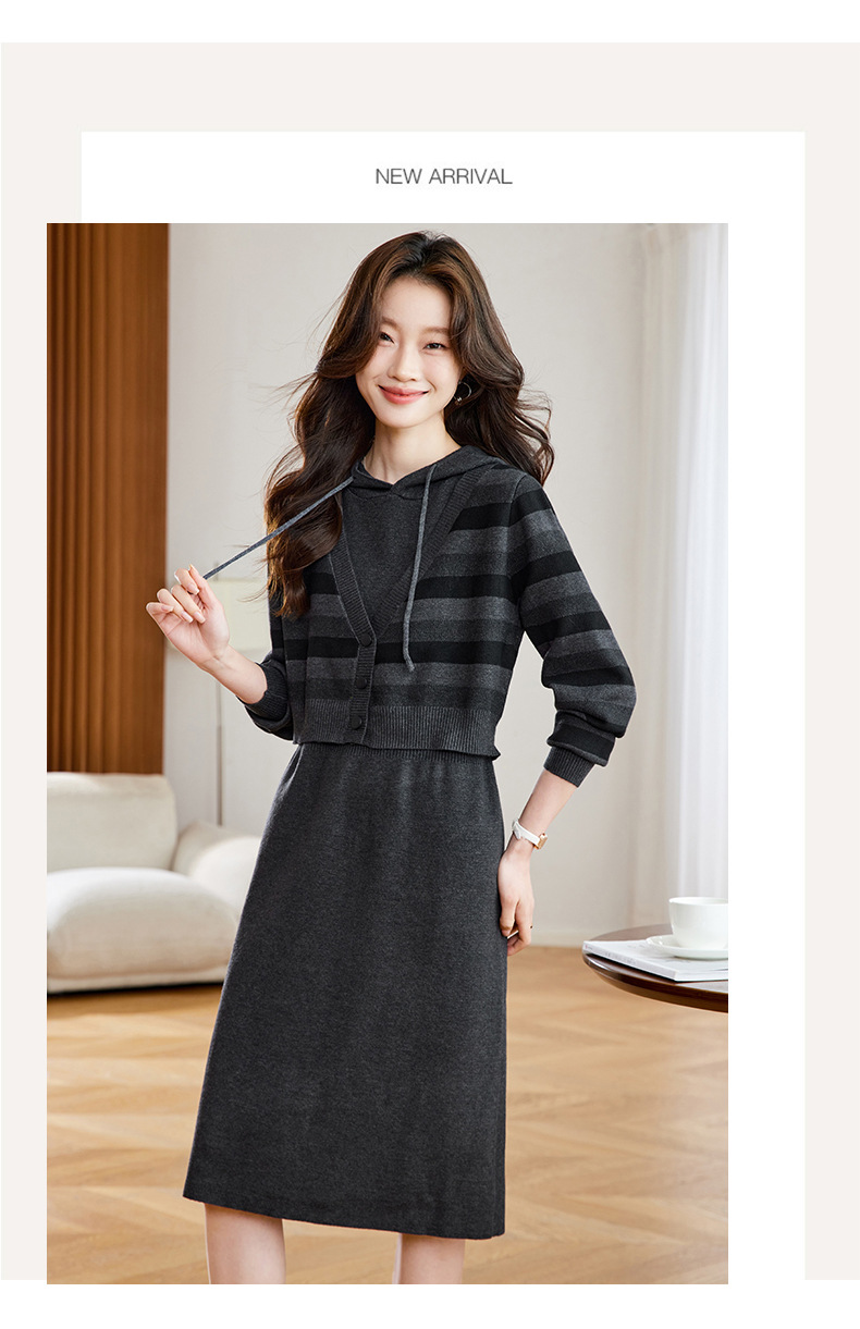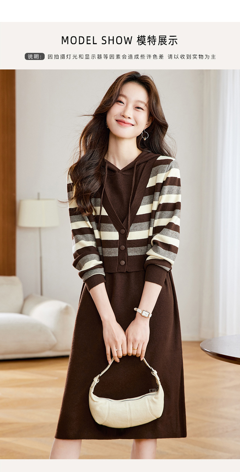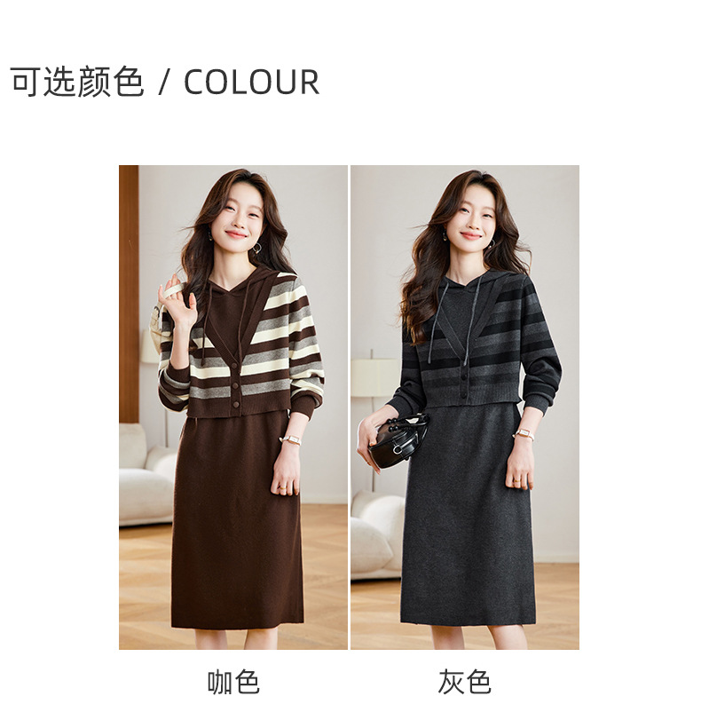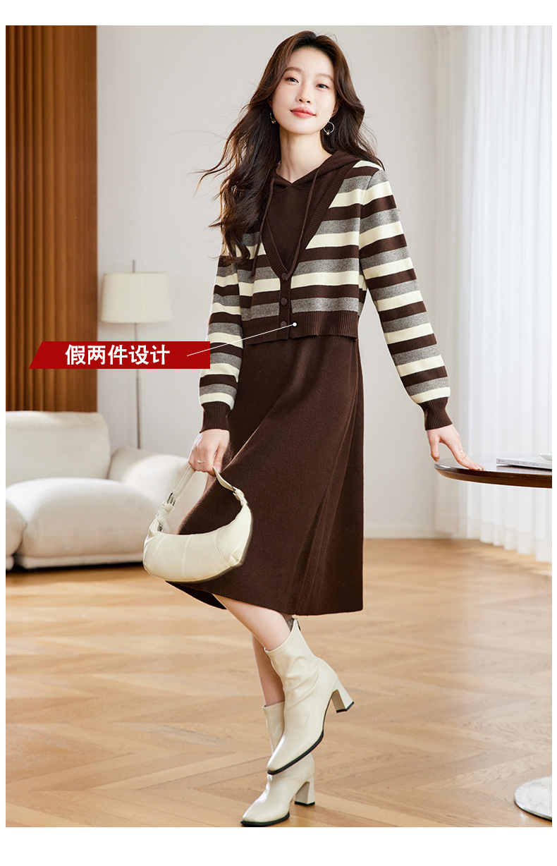 丁摩 秋冬女装连帽假两件针织连衣裙2813 商品图0