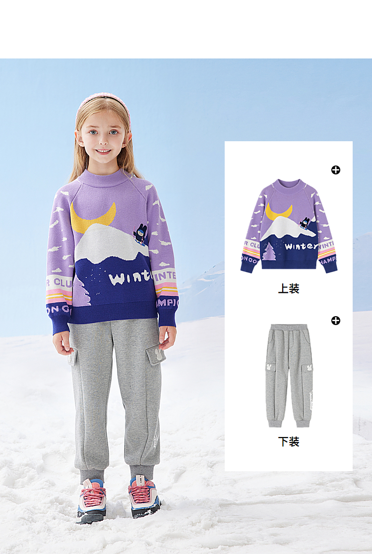 【秒】【专柜同款】MQD童装女童冬季新款加绒针织裤儿童运动裤卫裤潮