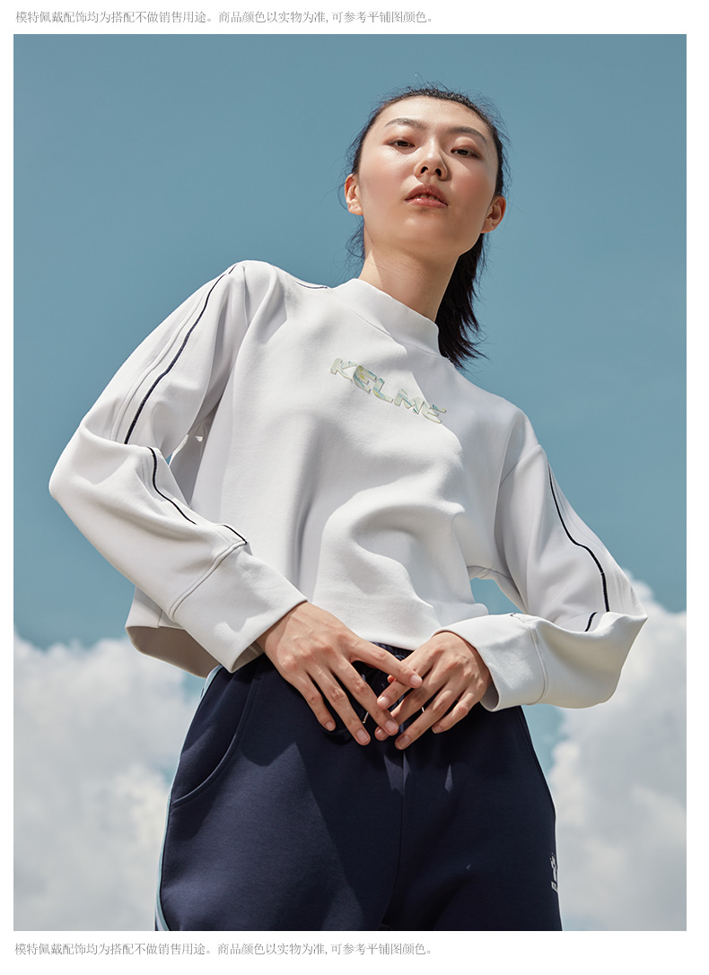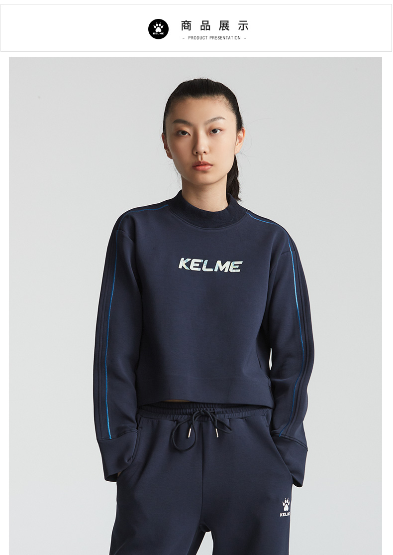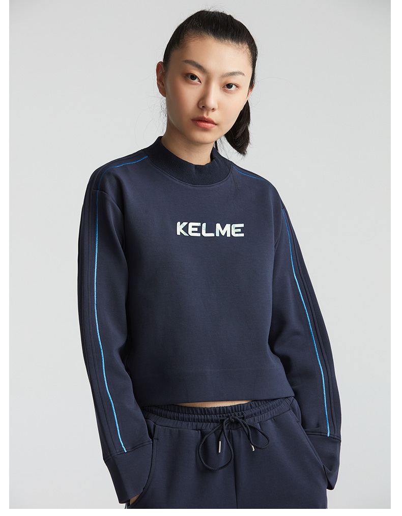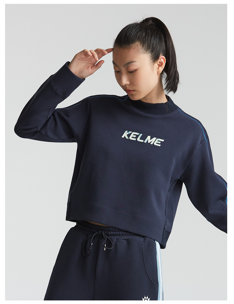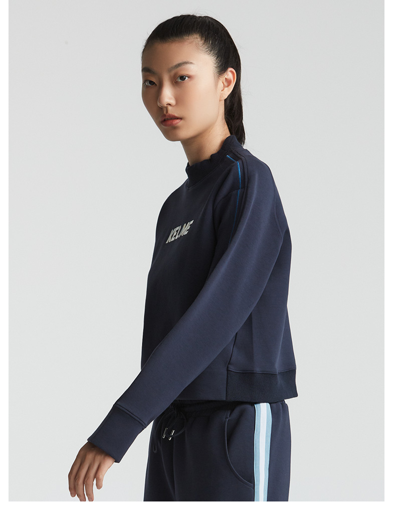 卡尔美秋冬新款字母撞色立领卫衣女休闲显瘦高腰上衣潮