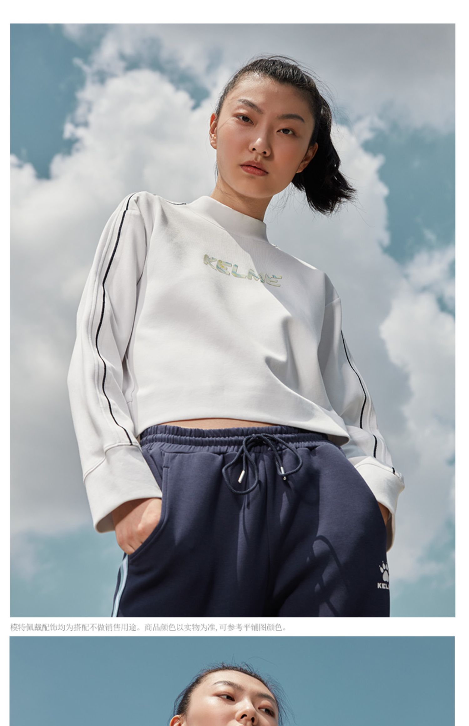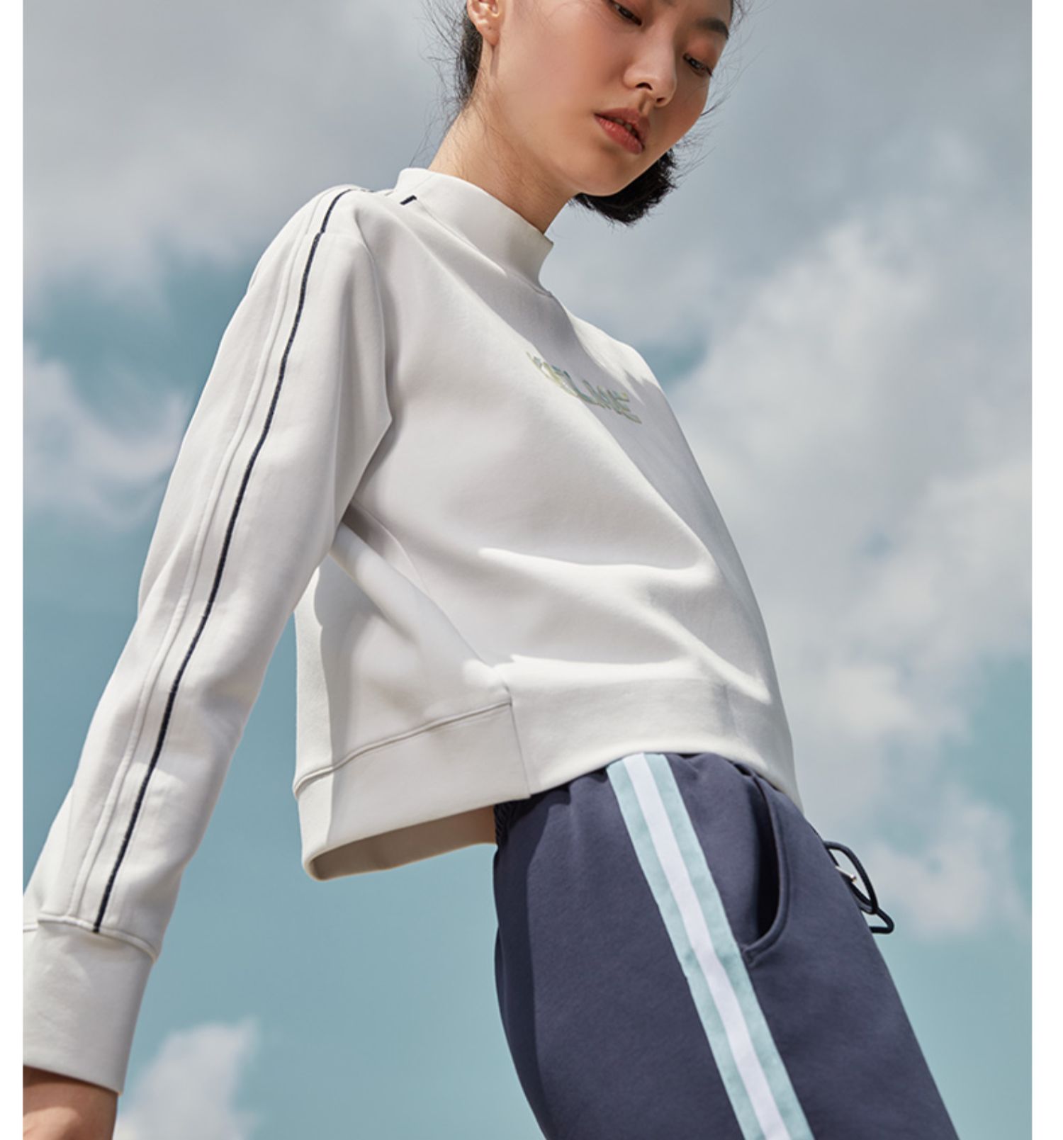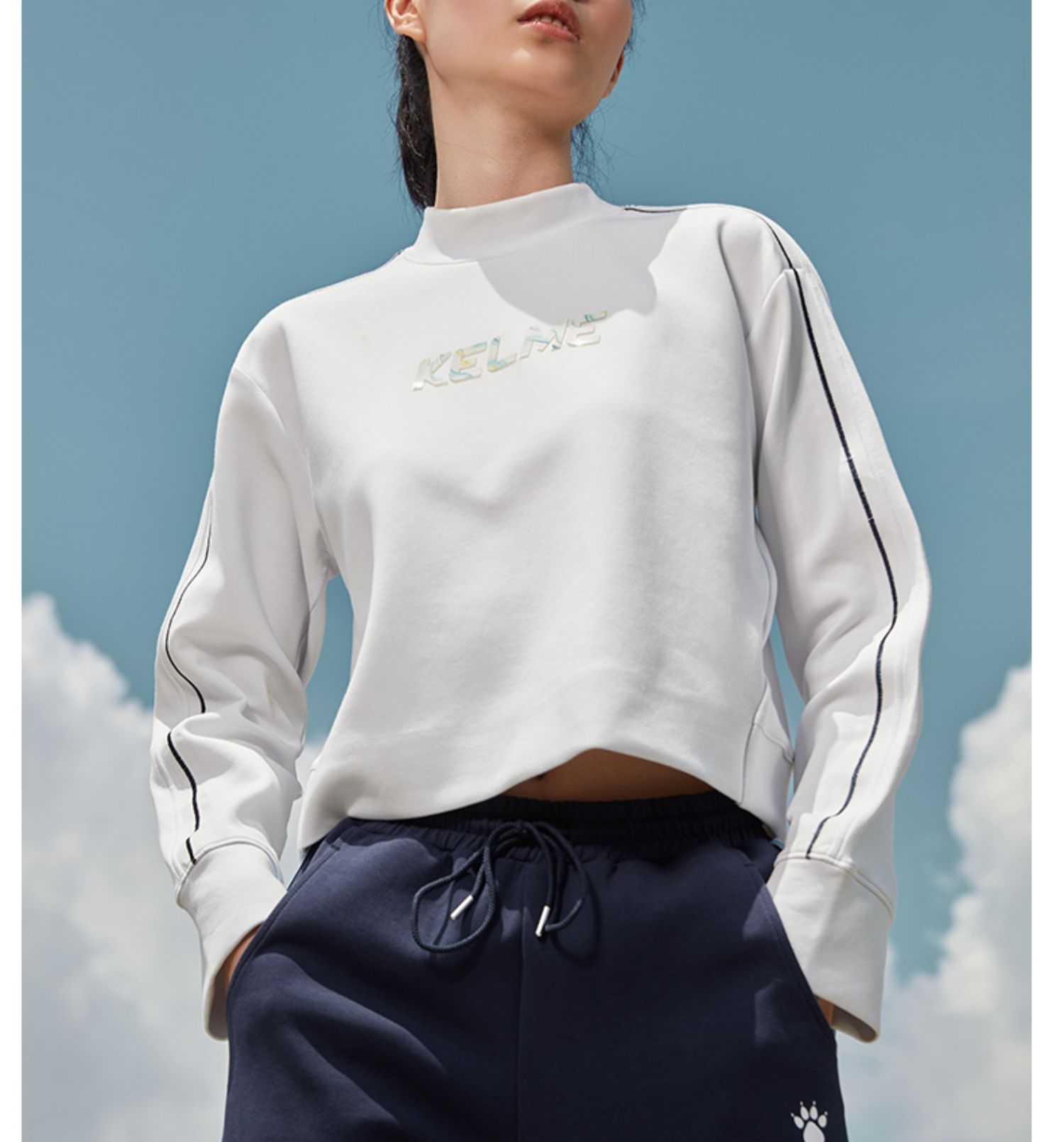 卡尔美秋冬新款字母撞色立领卫衣女休闲显瘦高腰上衣潮
