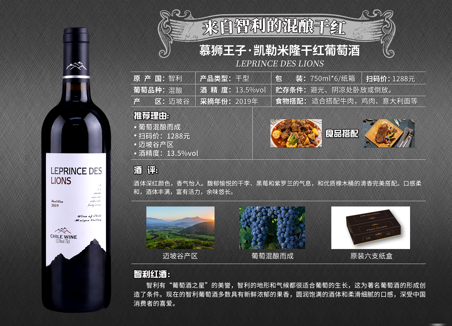 智利 慕狮王子凯勒米隆干红 智利迈坡谷产区葡萄酒