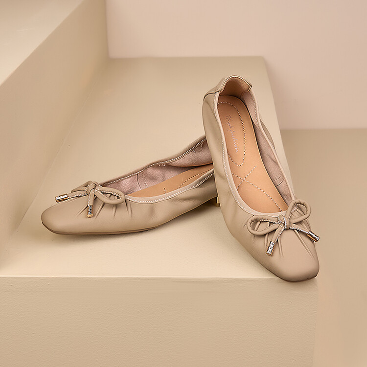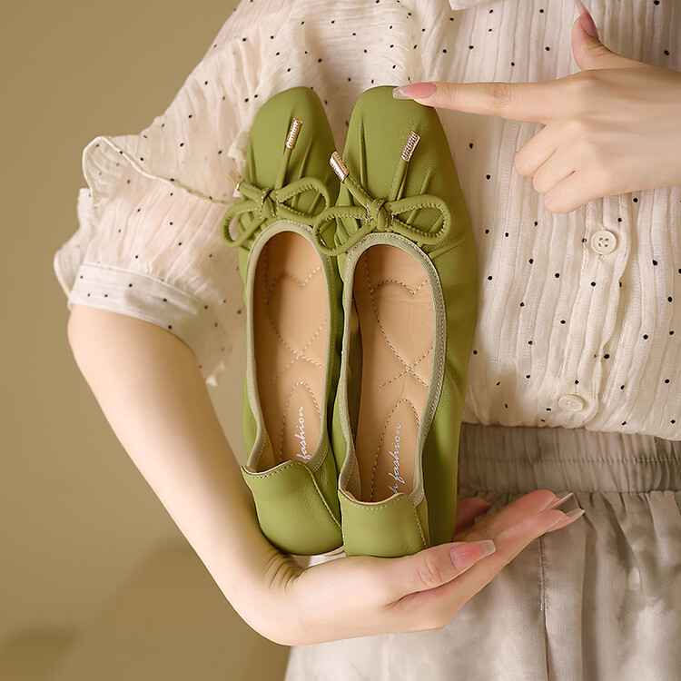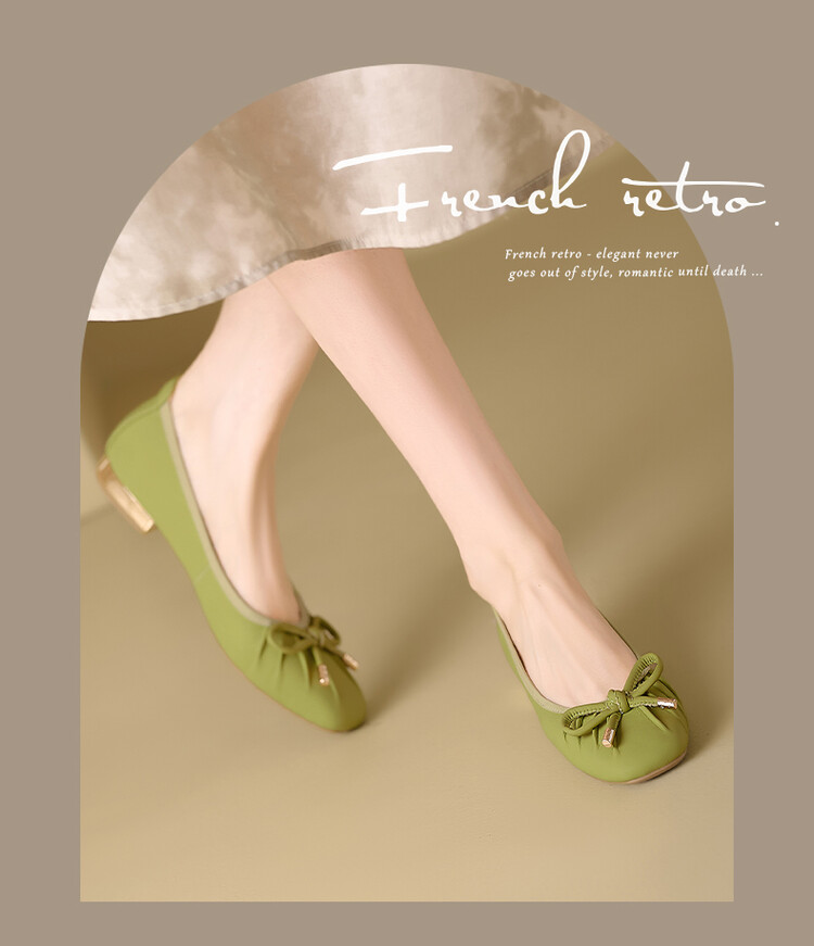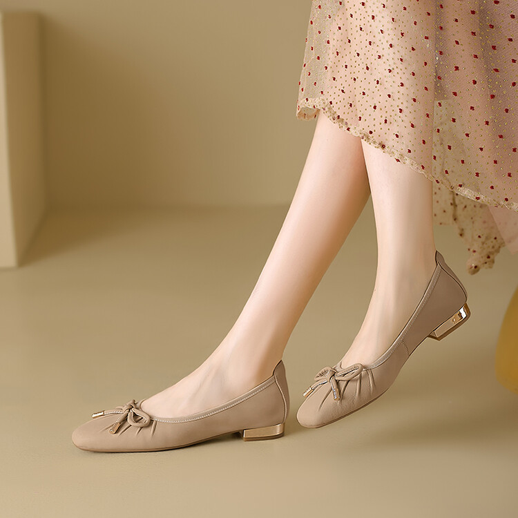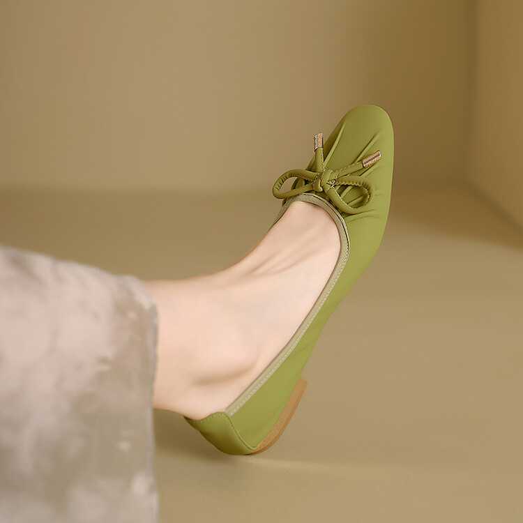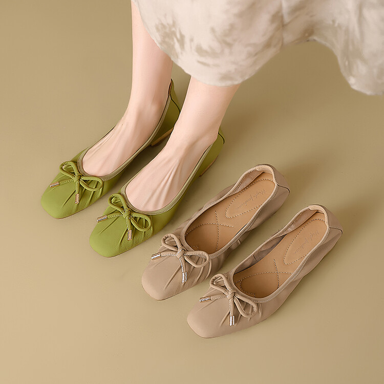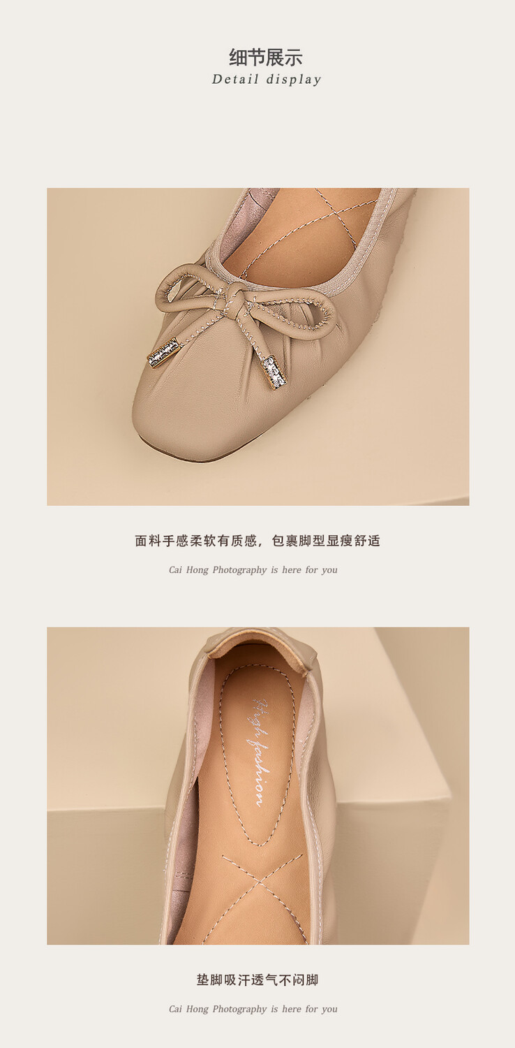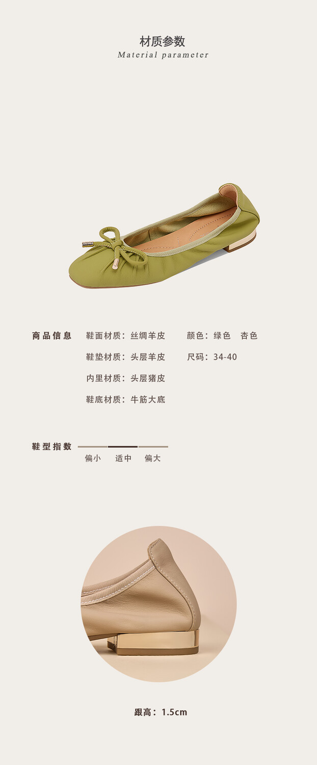 【预售5天】温柔风蝴蝶结丝绸羊皮平底奶奶鞋一脚蹬女鞋2024春款法式单鞋MBJR&922