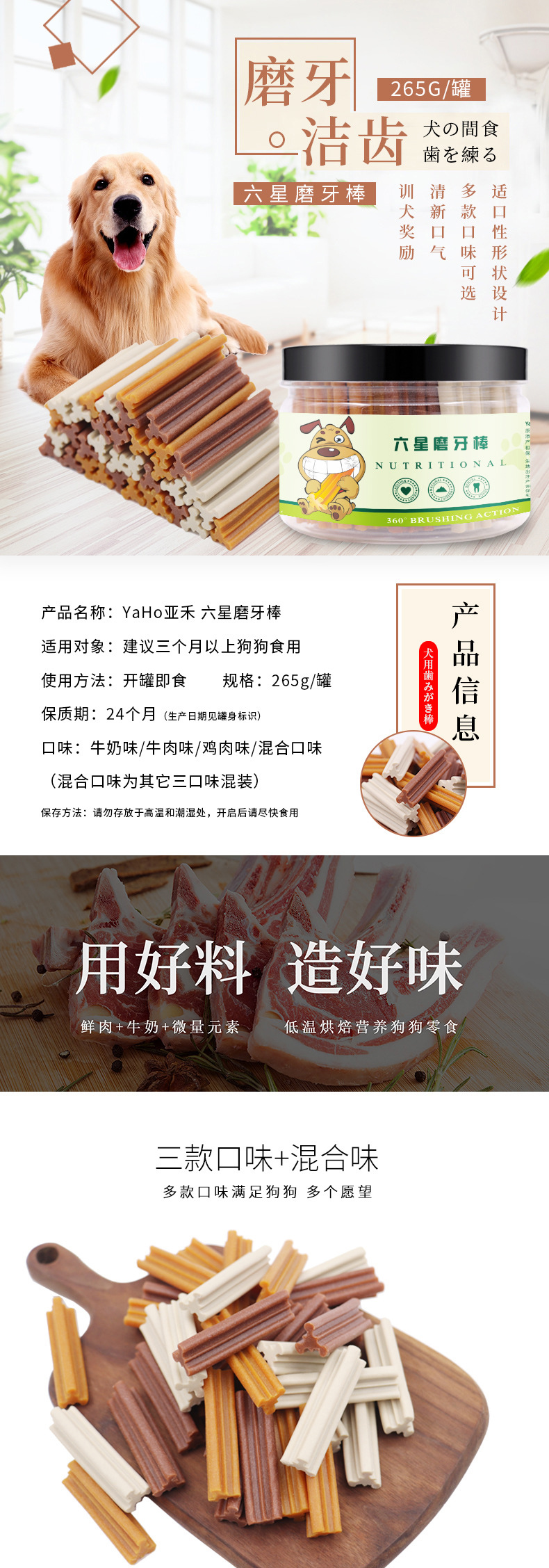 亚禾六星磨牙棒265g/罐 一箱=48罐 咬胶棒多口味 磨牙洁齿 狗狗零食批发