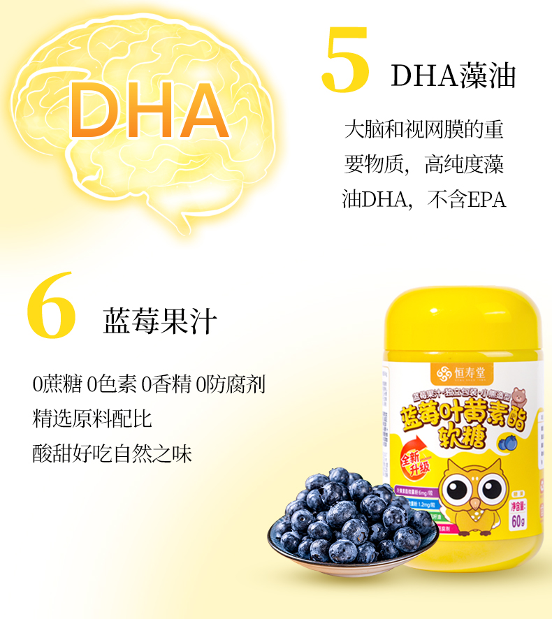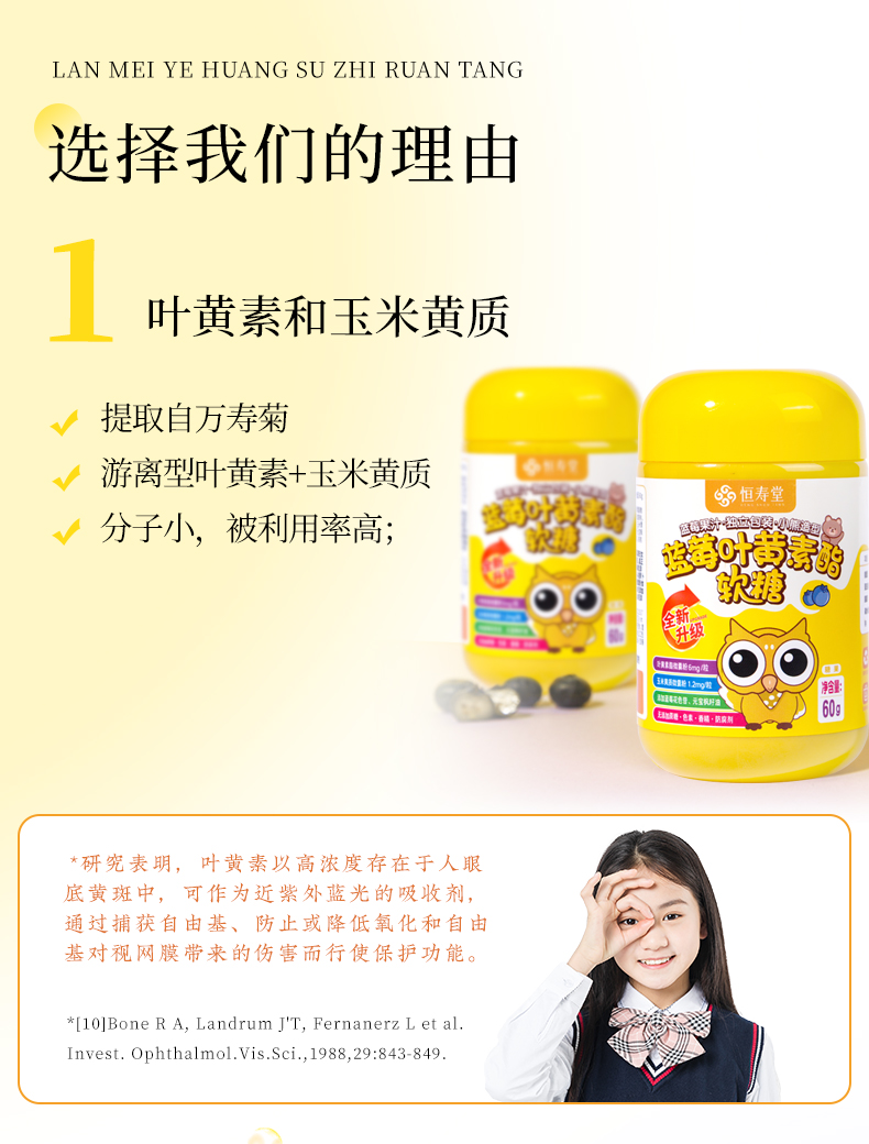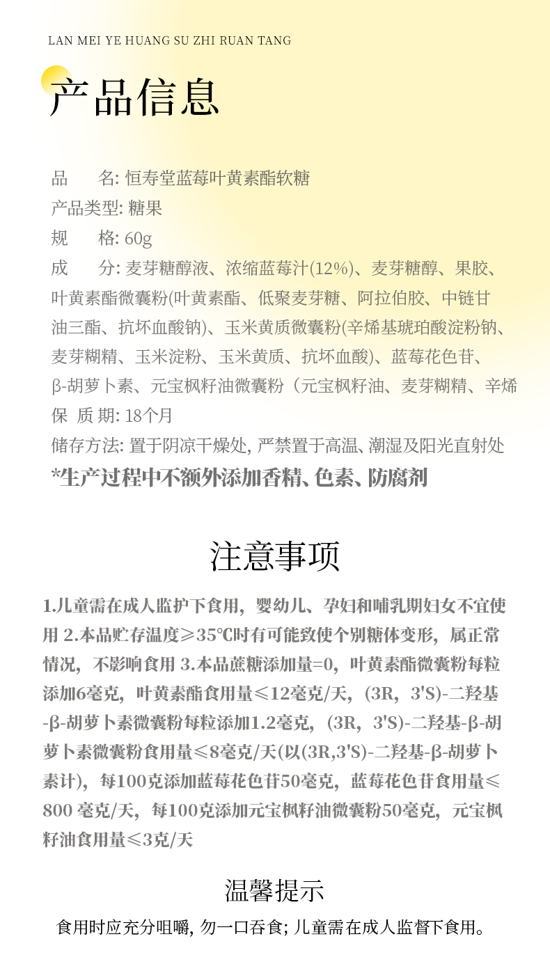 恒寿堂 蓝莓叶黄素软糖 60g 多规格