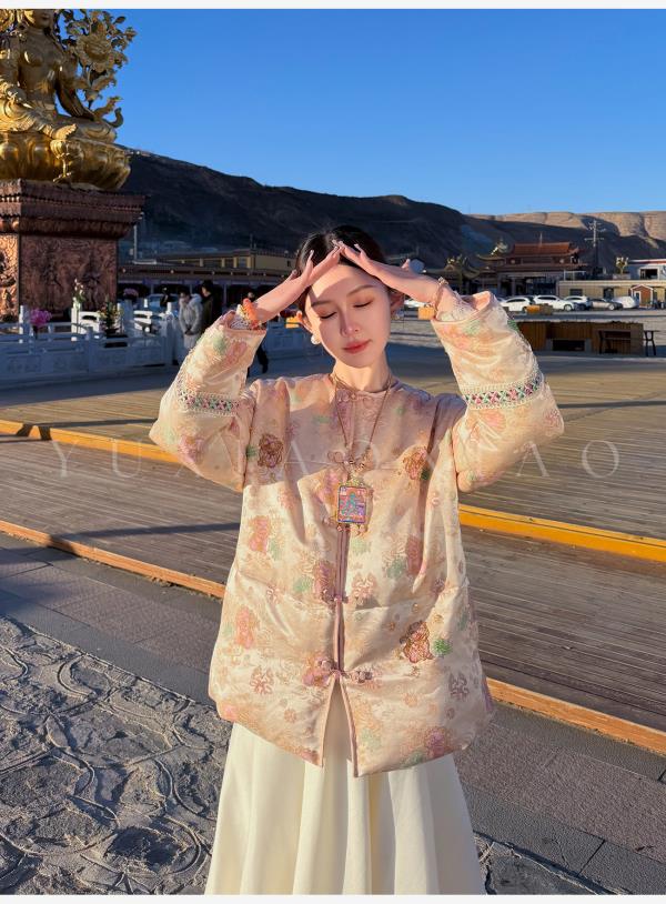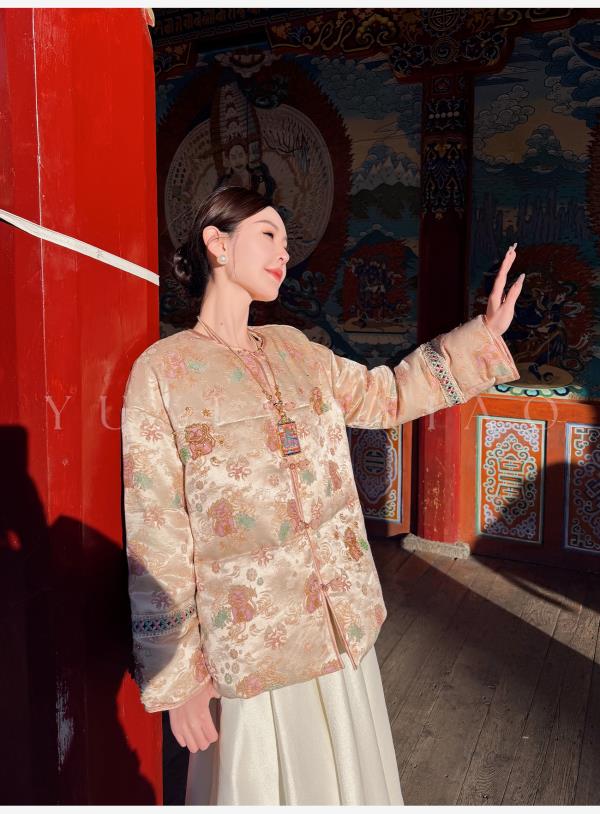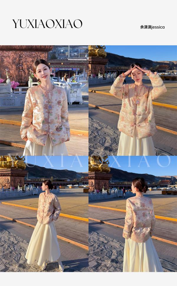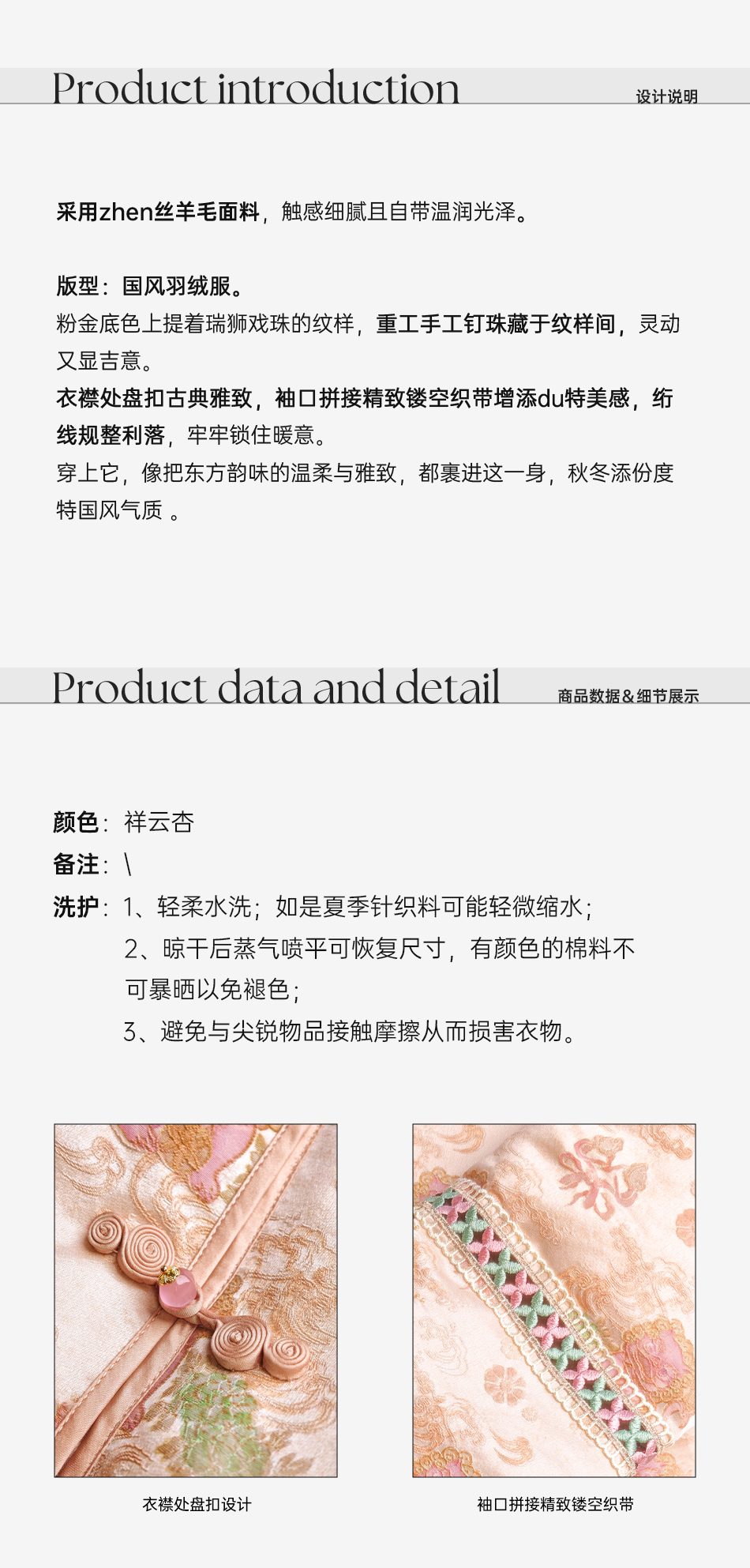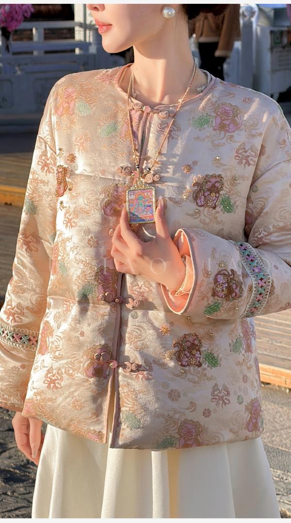 余潇潇【如意芳菲】国风重工古典雅致真丝羊毛东方韵味羽绒服外套