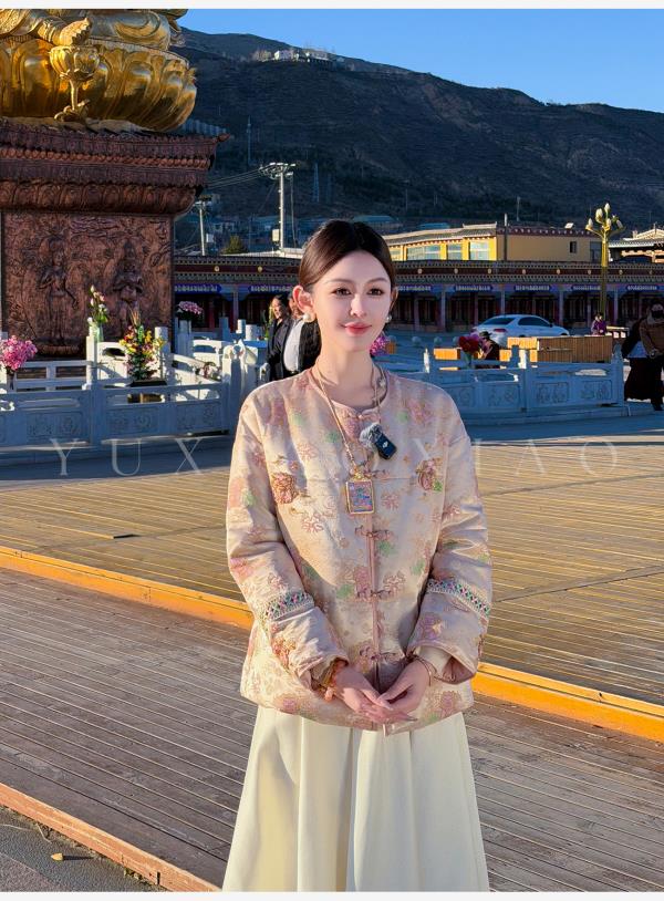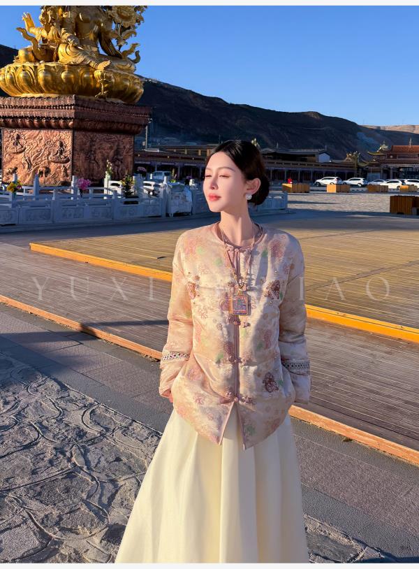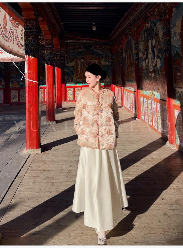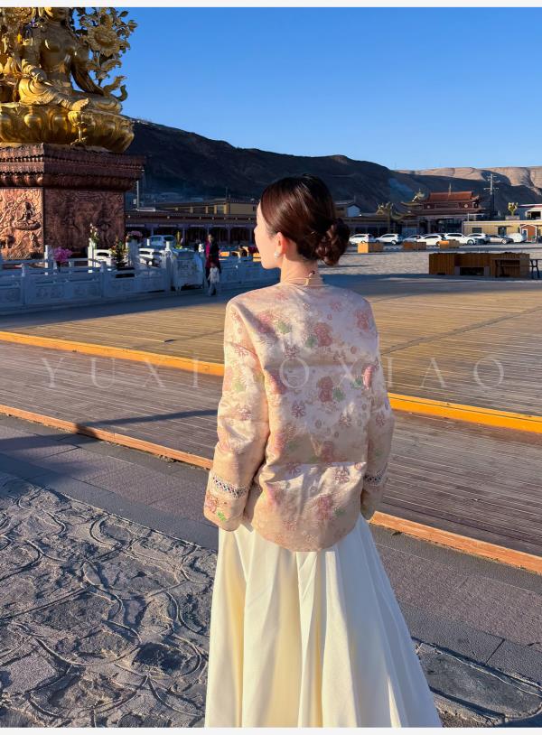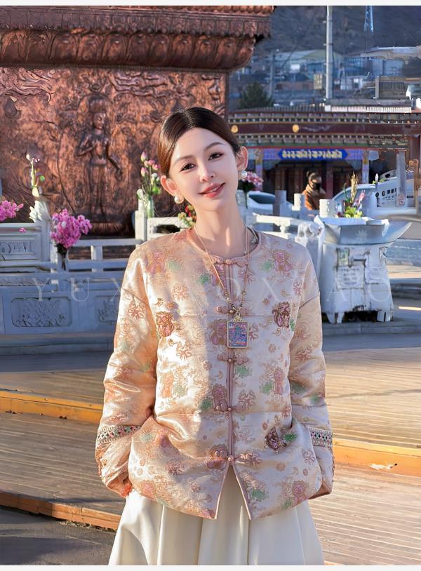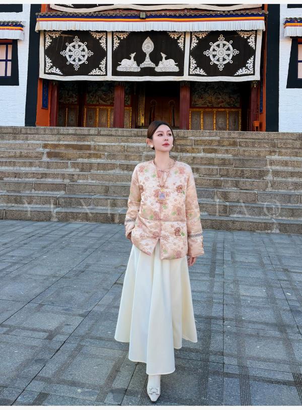 余潇潇【如意芳菲】国风重工古典雅致真丝羊毛东方韵味羽绒服外套