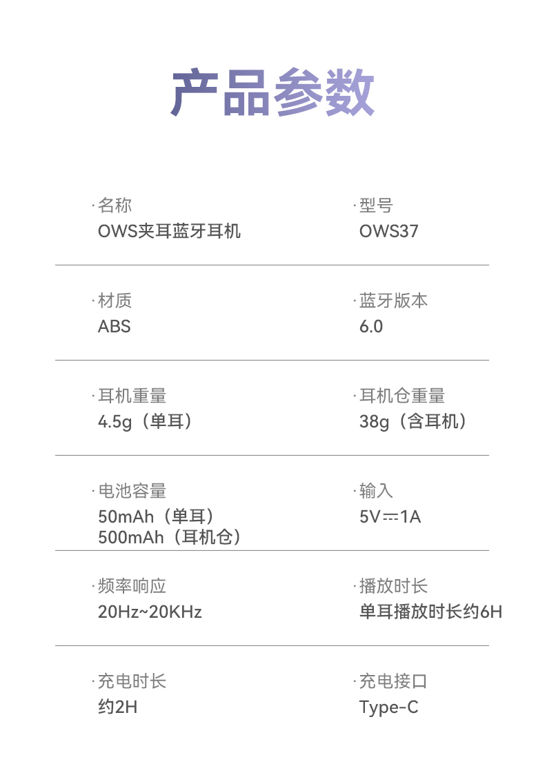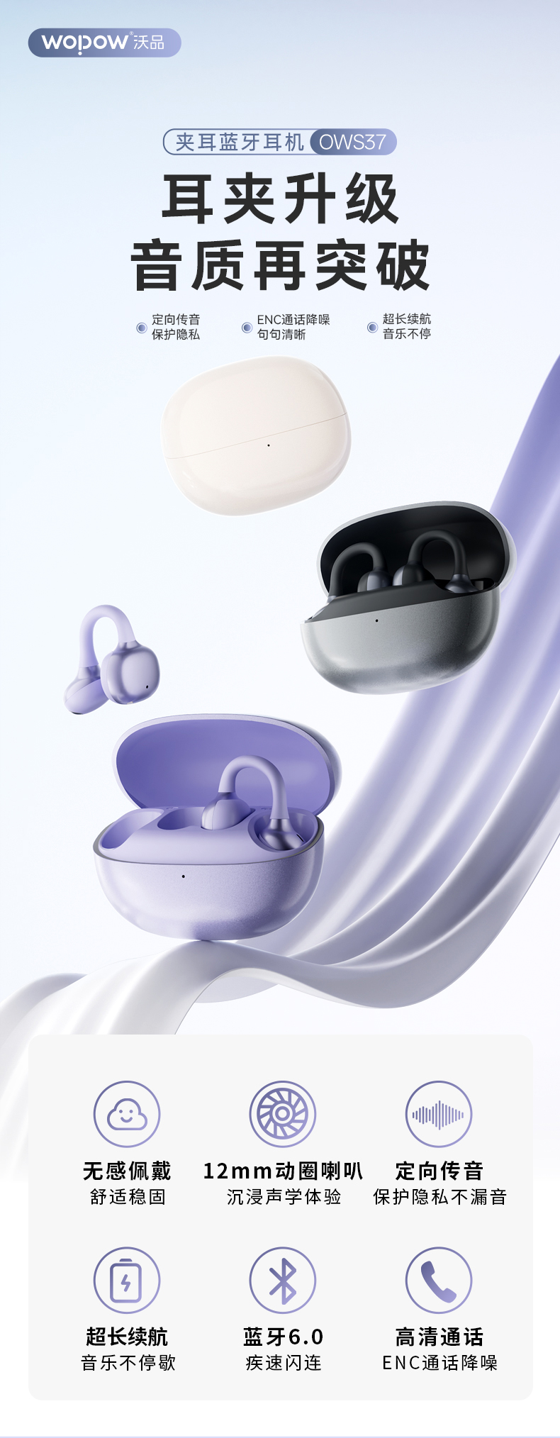 【几十元买到千元质感的超轻无感耳夹蓝牙耳机】沃品OWS夹耳蓝牙耳机 OWS37