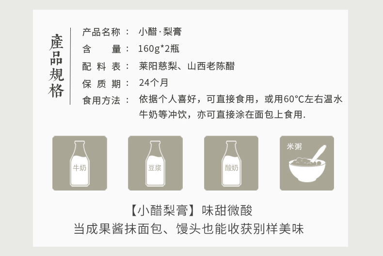佐以六年窖藏年份醋非遗传承慢火熬制而成的小醋梨膏 160g/瓶
