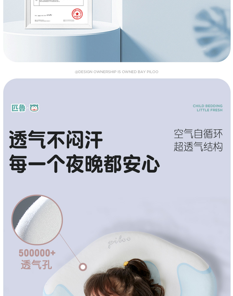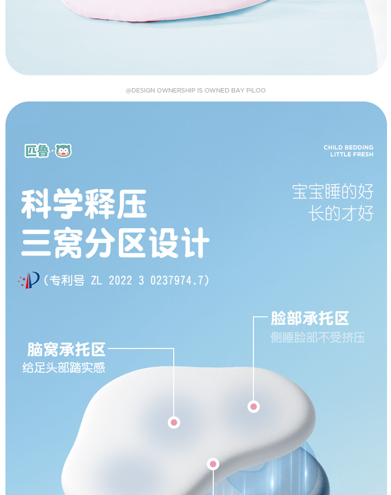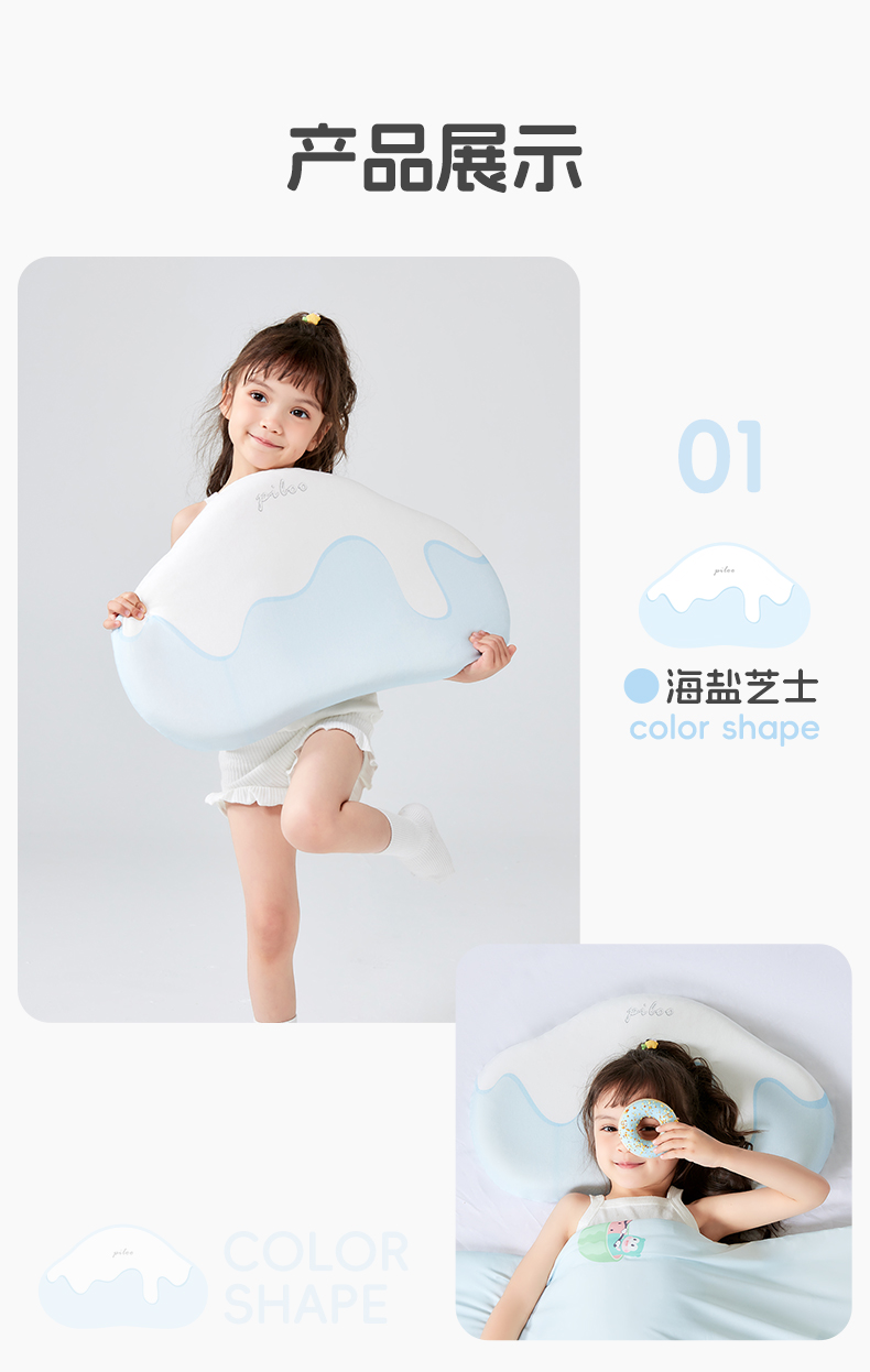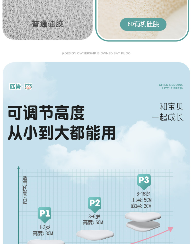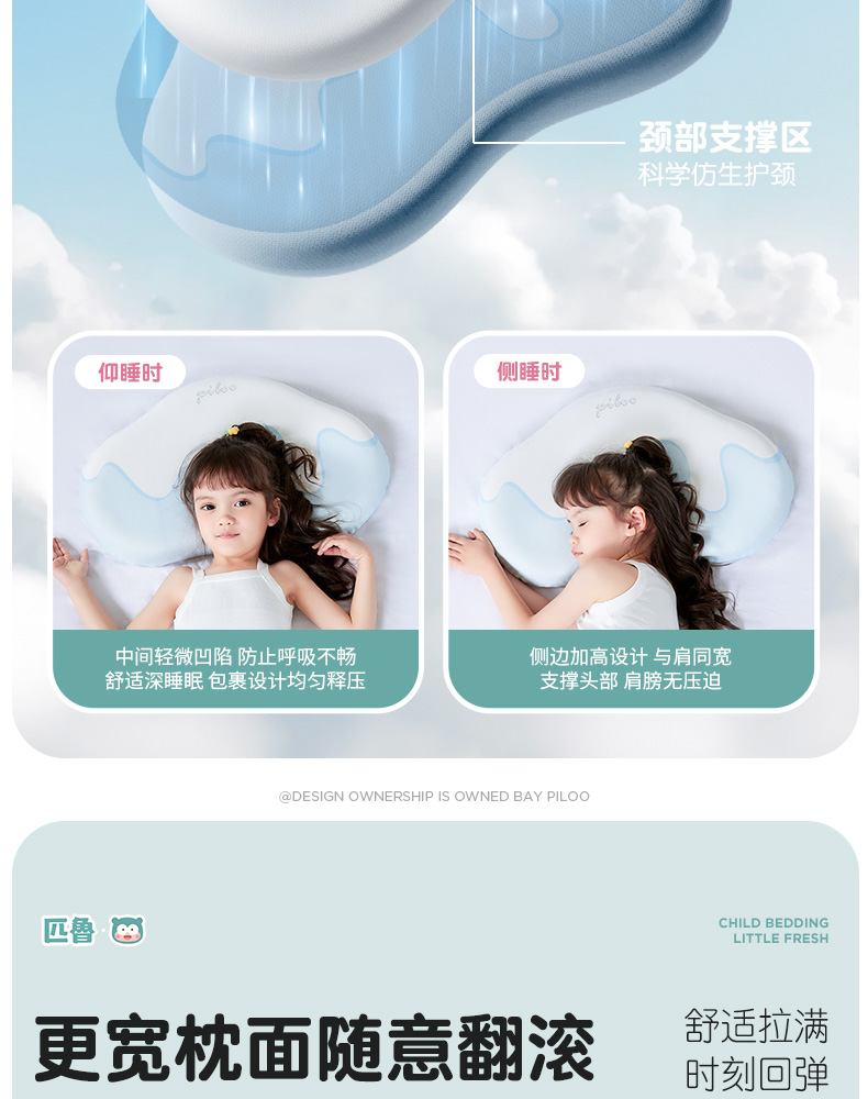 ³【匹鲁儿童成长云朵枕】可水洗硅胶 三窝科学释压蜂巢技术 枕芯98%透气开孔率 亲肤不闷汗 宝贝睡眠更安稳 1-16岁 XN03-CRMM-PL