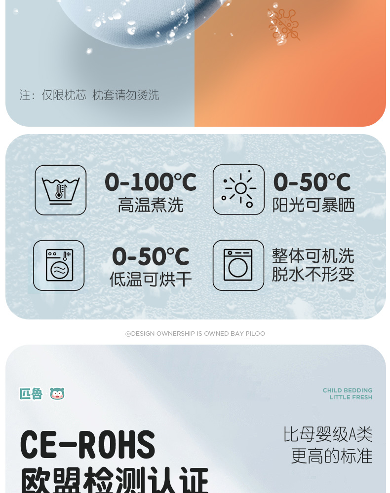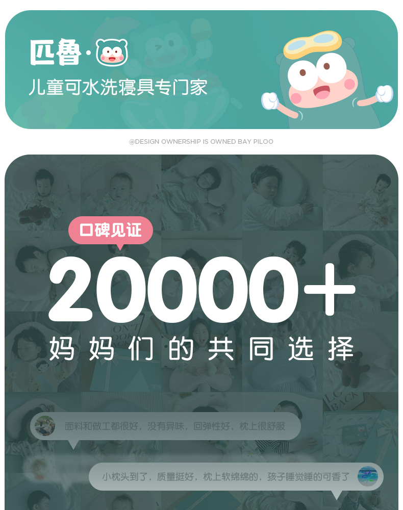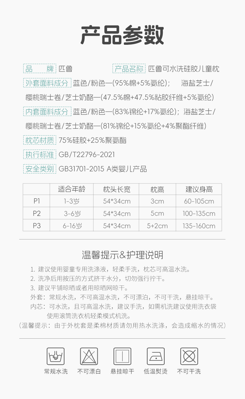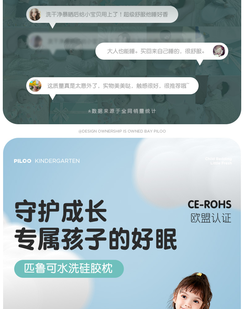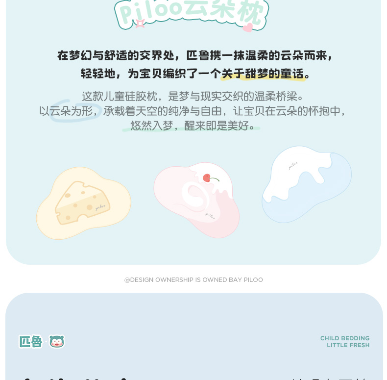 ³【匹鲁儿童成长云朵枕】可水洗硅胶 三窝科学释压蜂巢技术 枕芯98%透气开孔率 亲肤不闷汗 宝贝睡眠更安稳 1-16岁 XN03-CRMM-PL