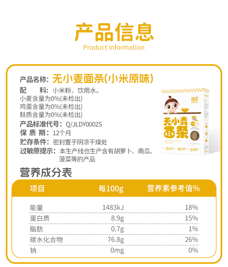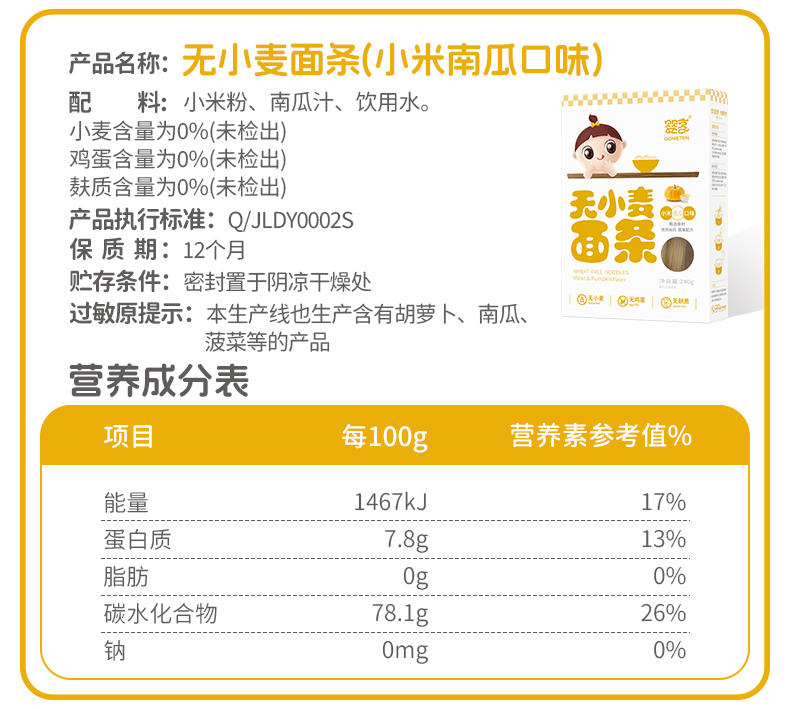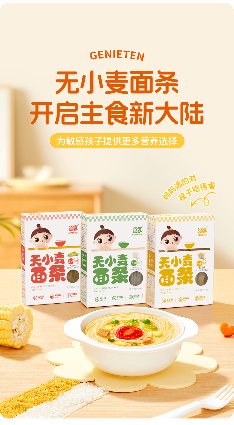 婴享无小麦面条小米玉米大米无麸质无蛋奶营养面条送婴幼儿敏宝辅食电子食谱