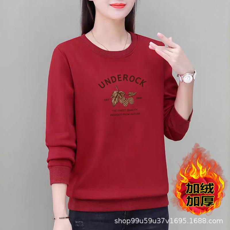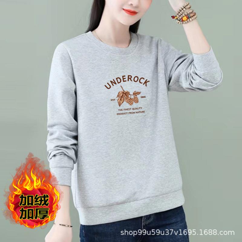 加绒圆领卫衣棉质女式外穿休闲宽松秋冬长袖上衣印花运动衣显瘦