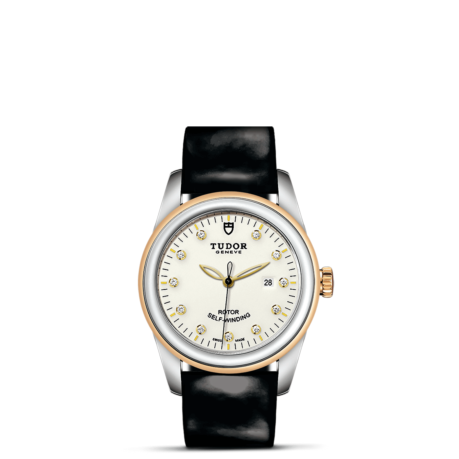 旋入式上链錶冠,饰以帝舵表标志;精钢覆有0.1毫米18K黄金薄层