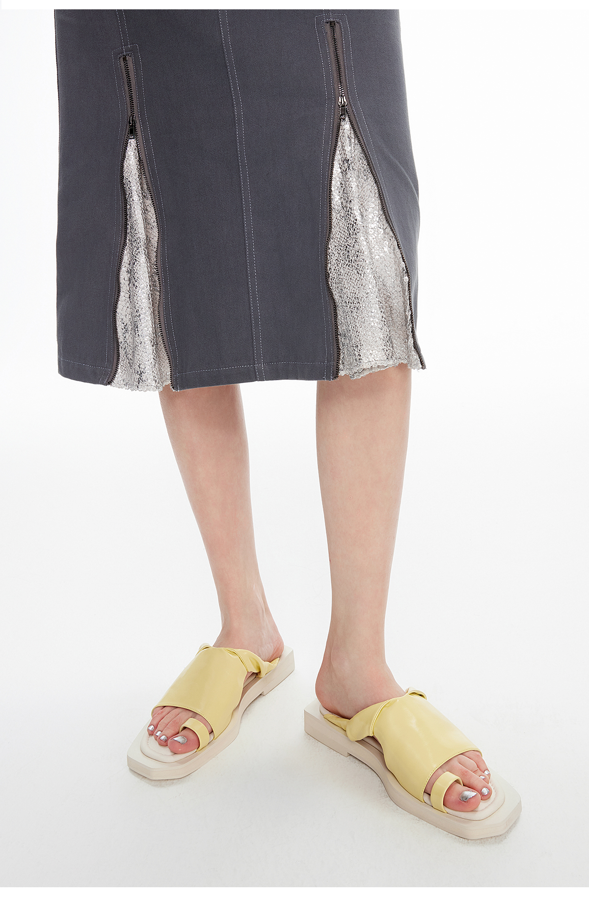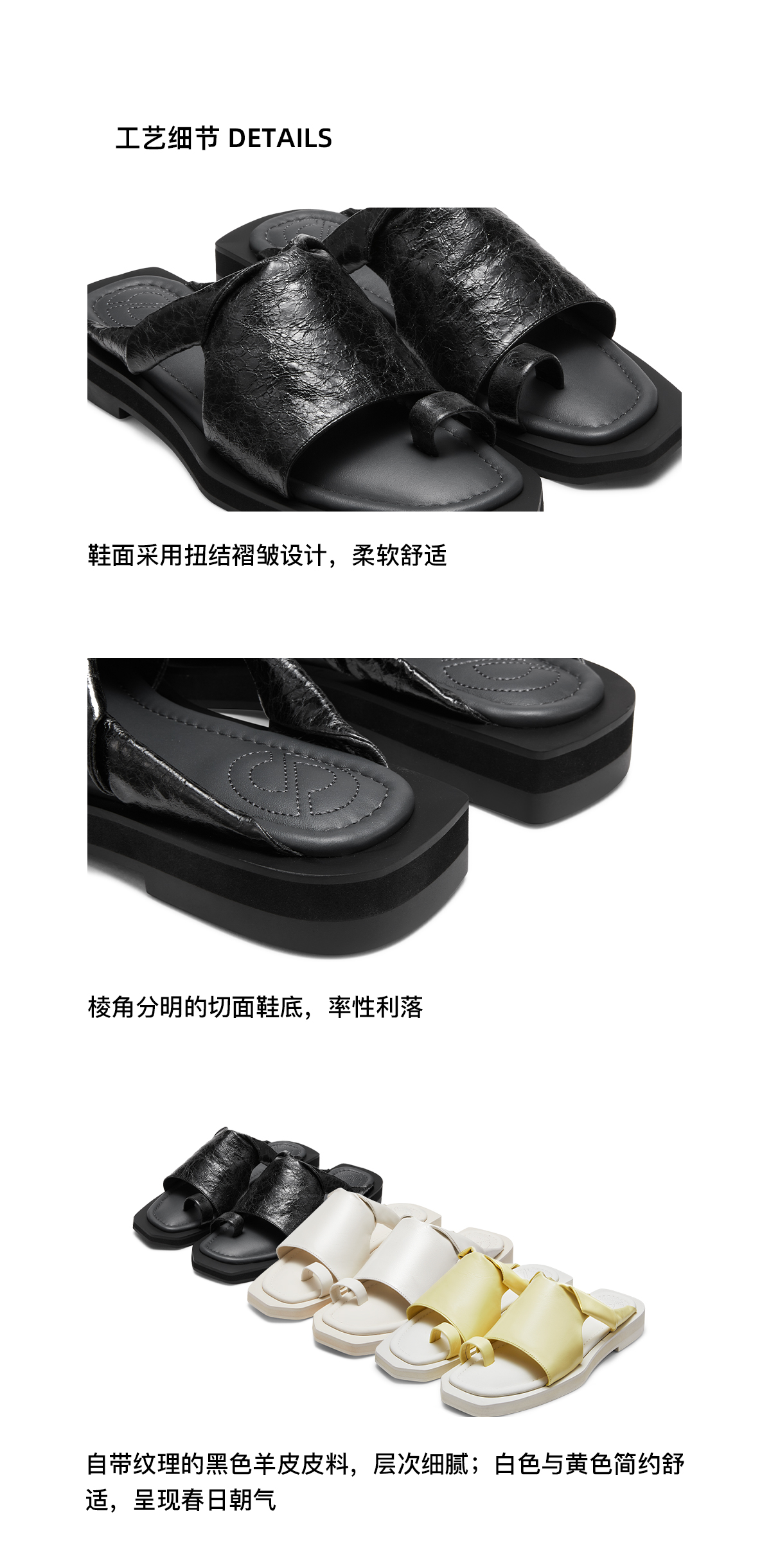 [断码]lost in echo2024春季新品设计师品牌扭转褶皱露趾切面厚底拖鞋