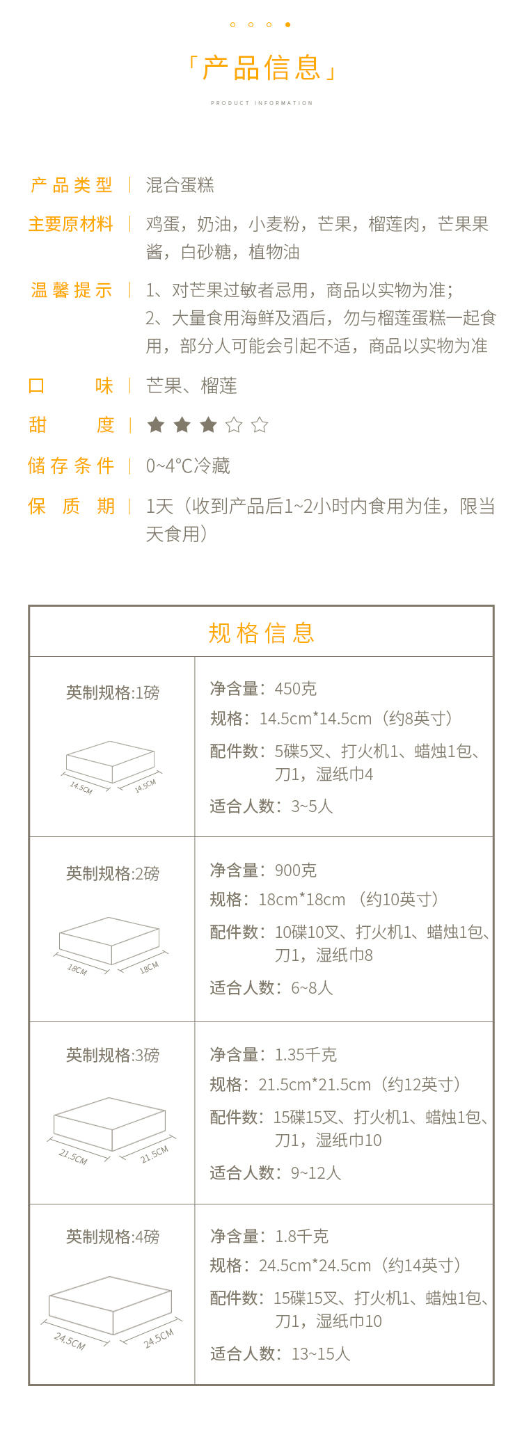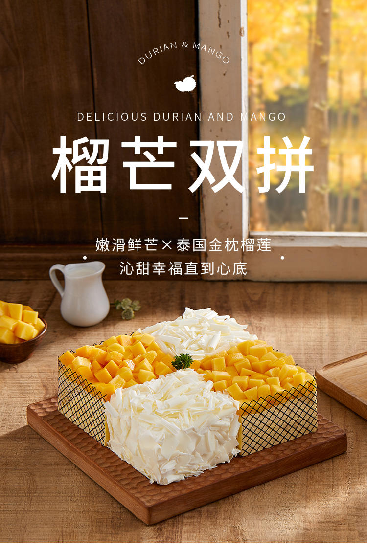 【本店热销】榴芒双拼生日蛋糕,泰国金枕榴莲+精选芒果双拼口味,送朋友老人推荐