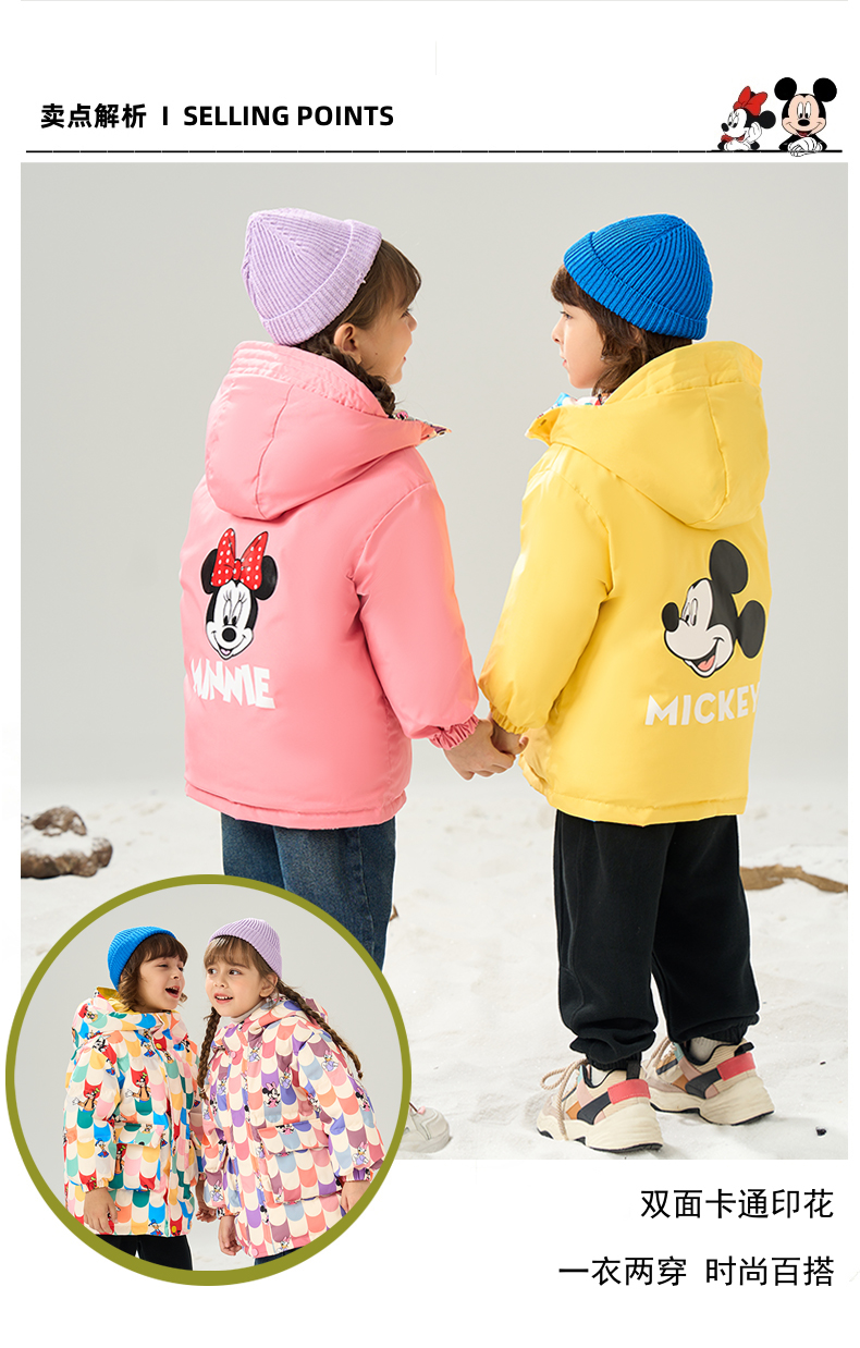 Disney/迪士尼W儿童双面穿羽绒服男女童冬季连帽外套XME4SU333