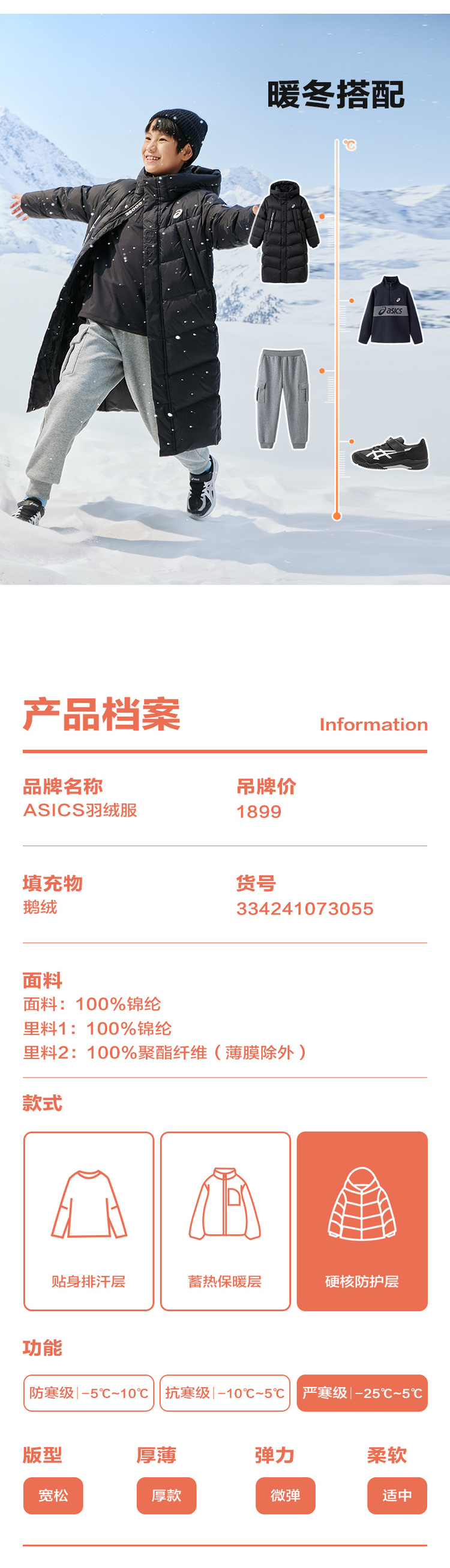 【鹅绒羽绒服】Asics/亚瑟士商场同款长款保暖鹅绒服24年冬季新款