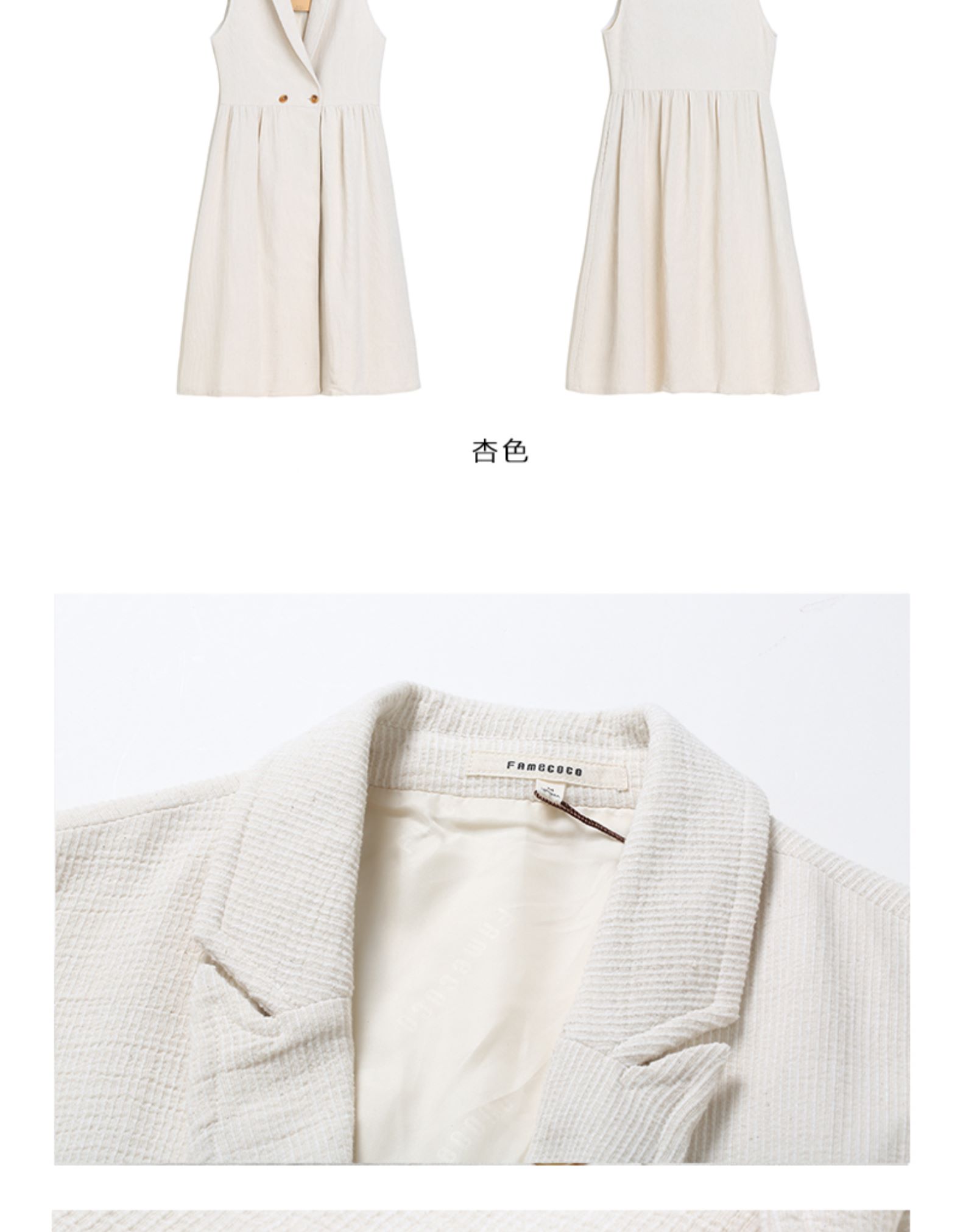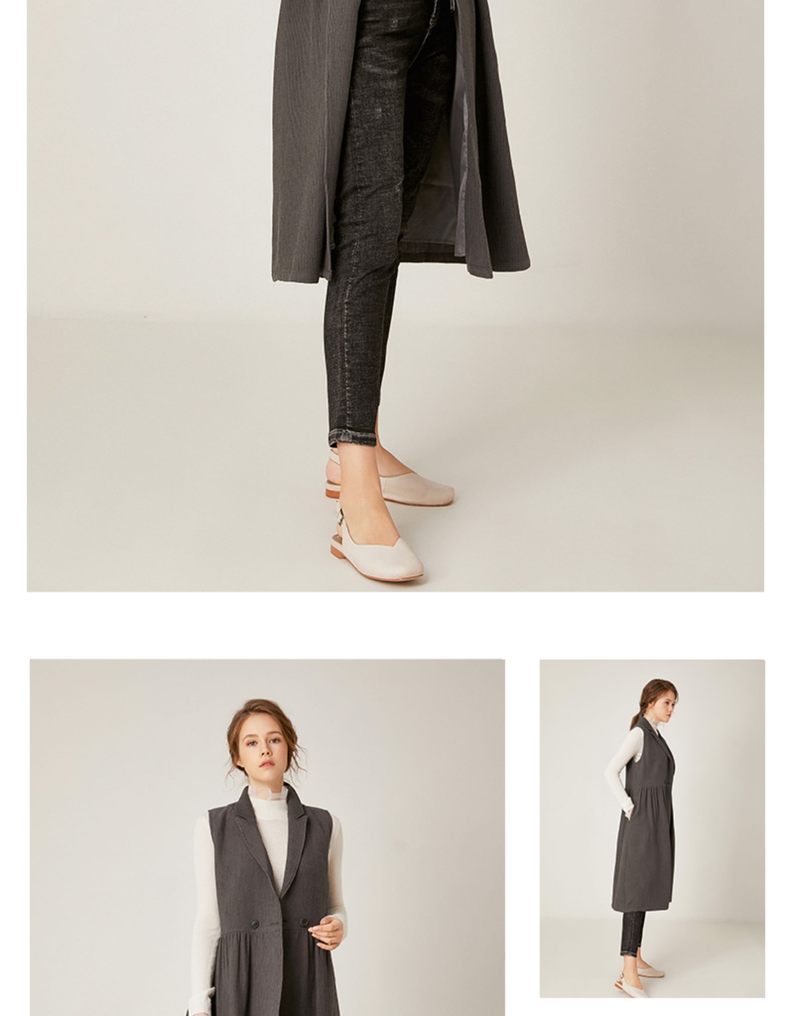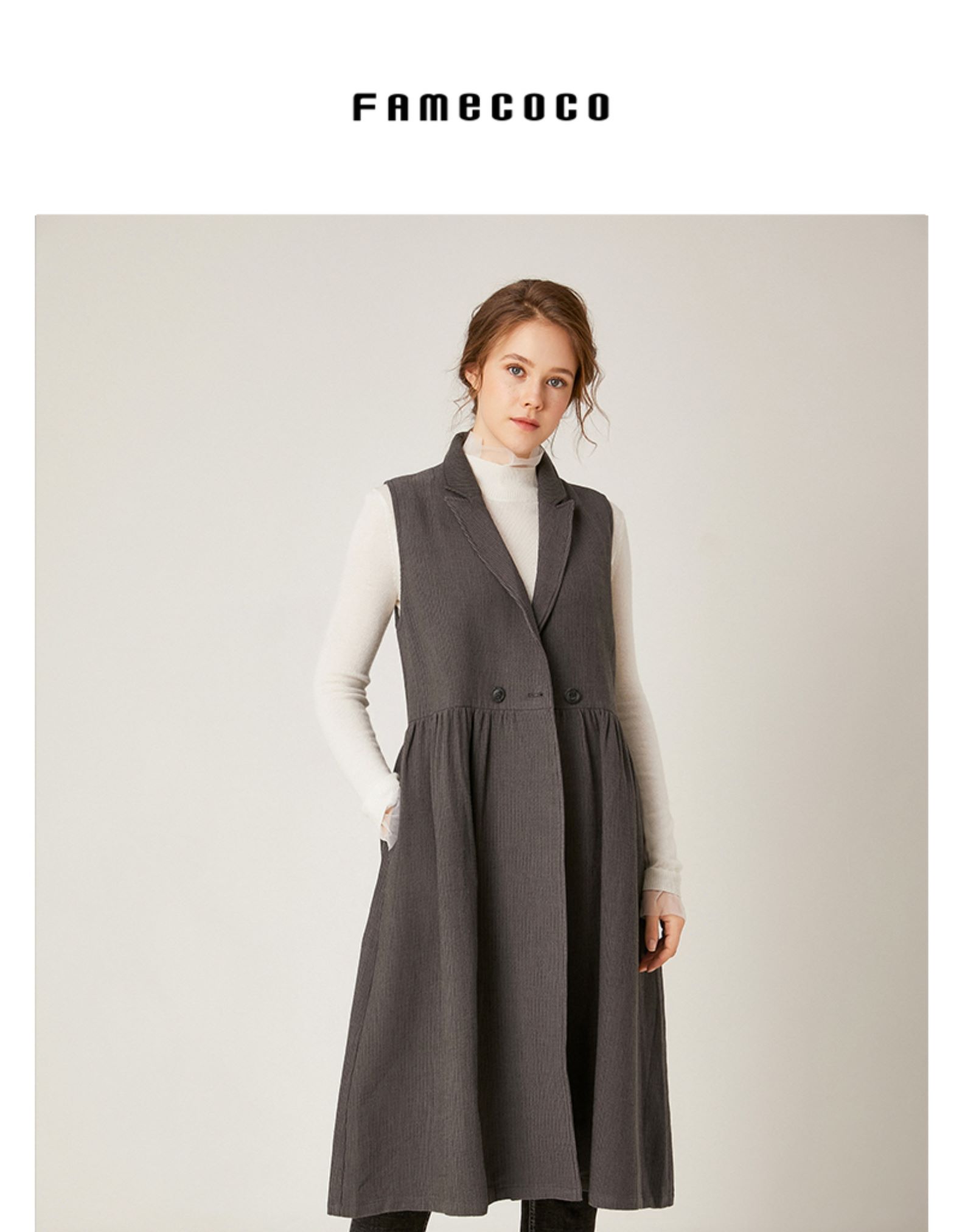 famecoco范可儿休闲中长款外套收腰双排扣马夹女 F195CA008