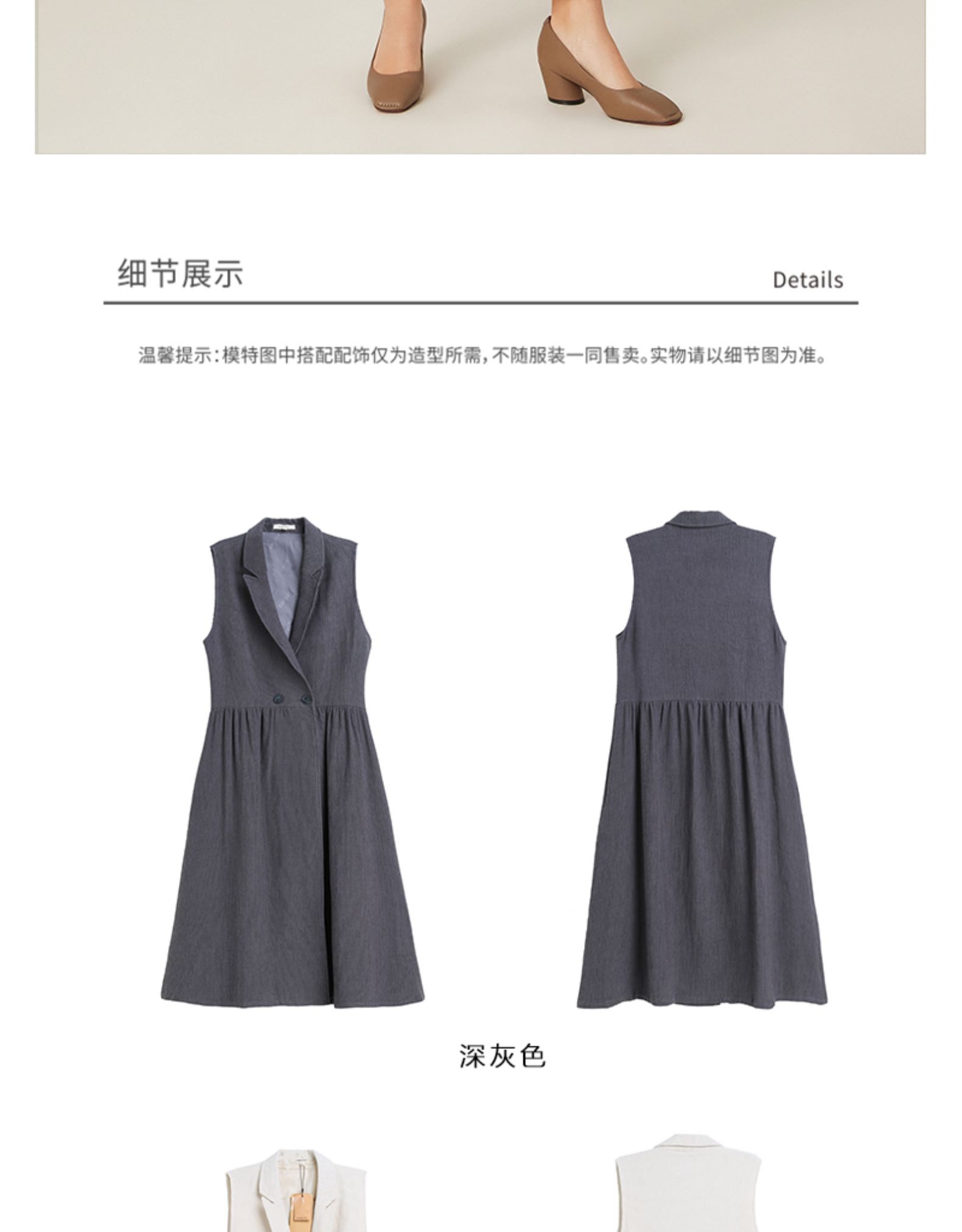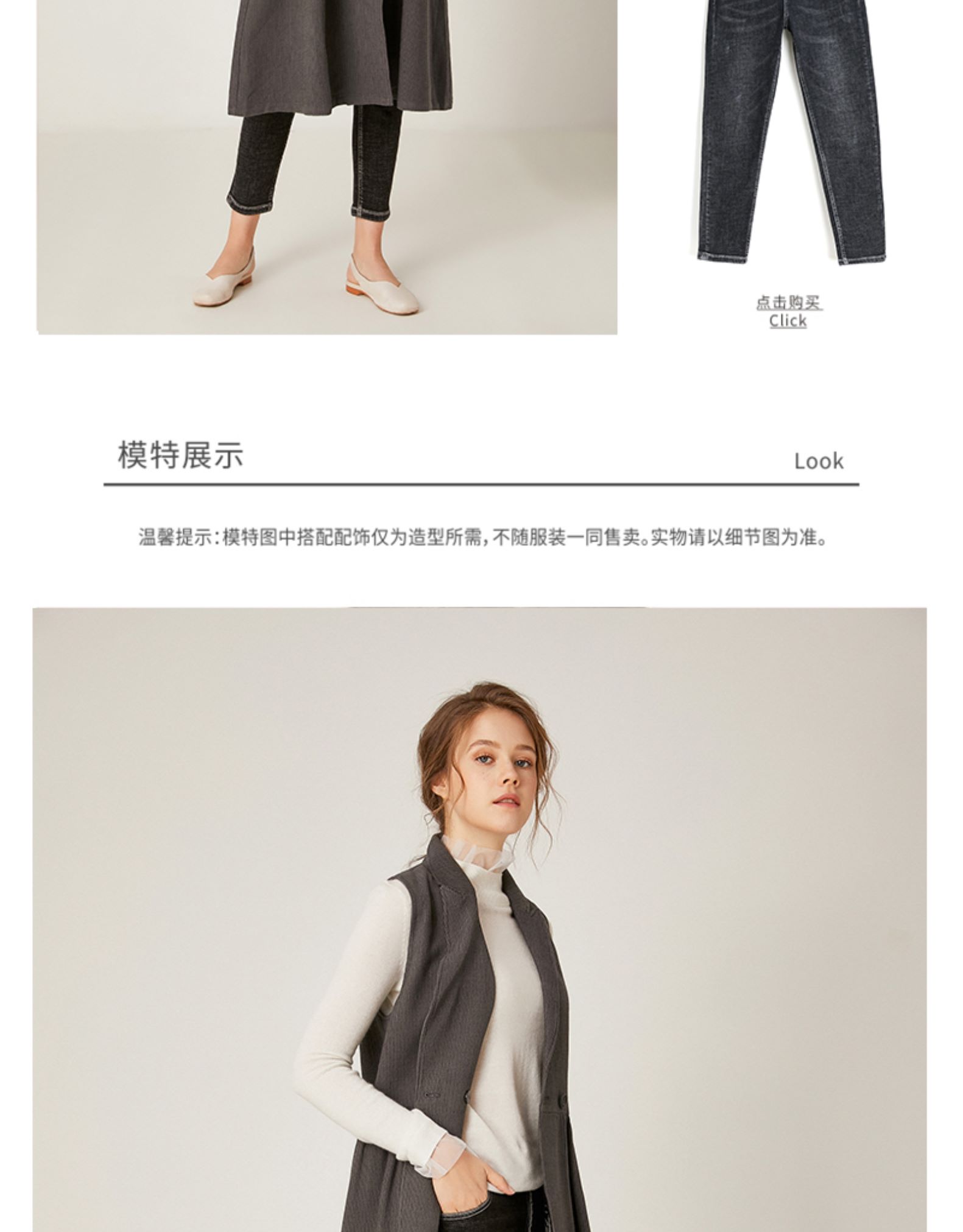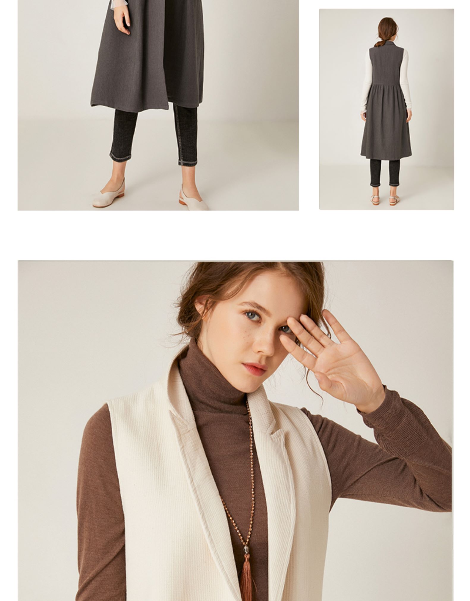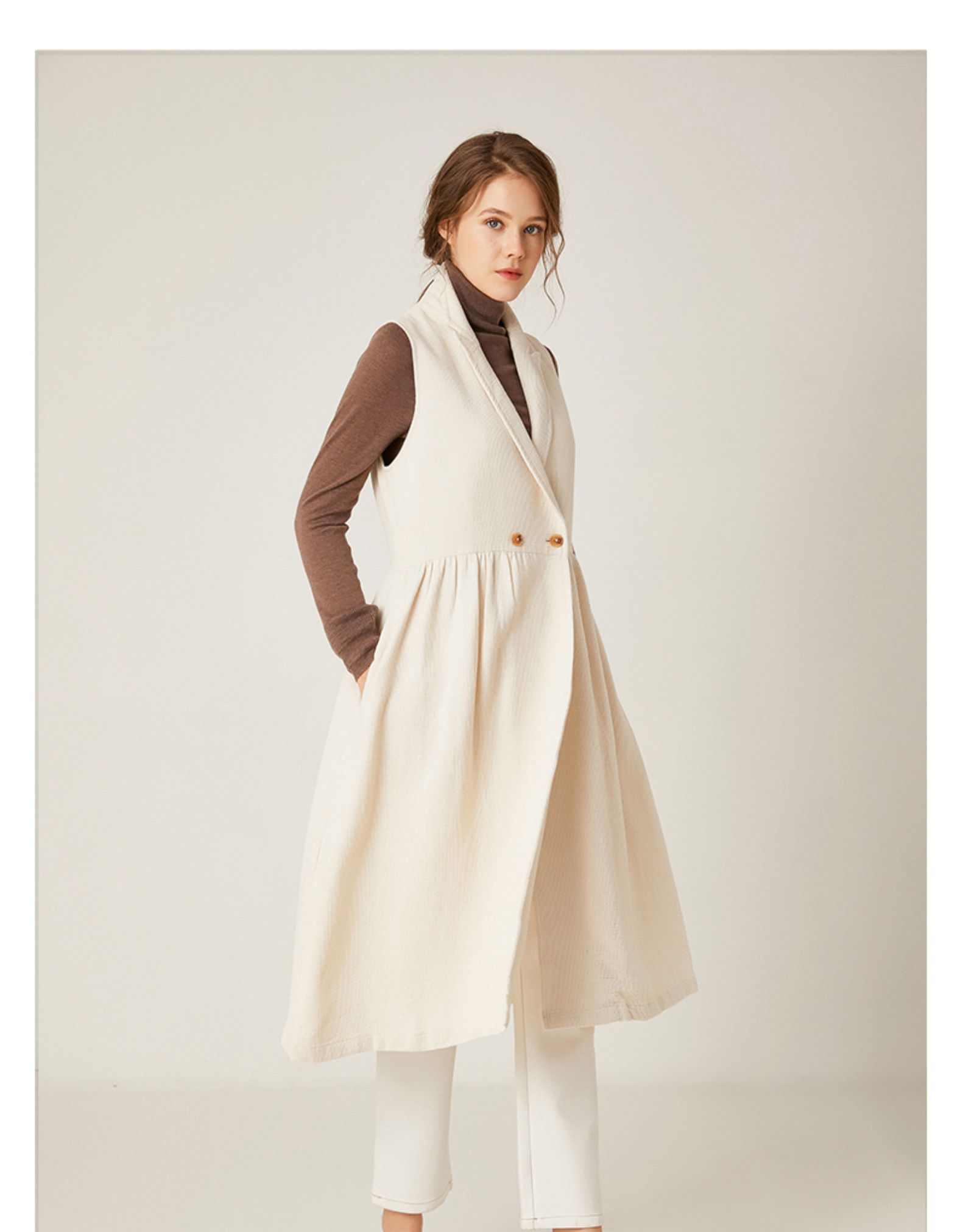 famecoco范可儿休闲中长款外套收腰双排扣马夹女 F195CA008