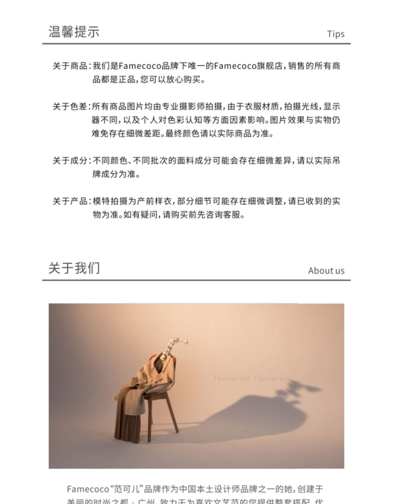 - Famecoco作为中国本土设计师品牌之一的她,创建于美丽的时尚花都广州,自2013年创立以来,一直致力于打造优雅、知性、文艺的穿着理念。