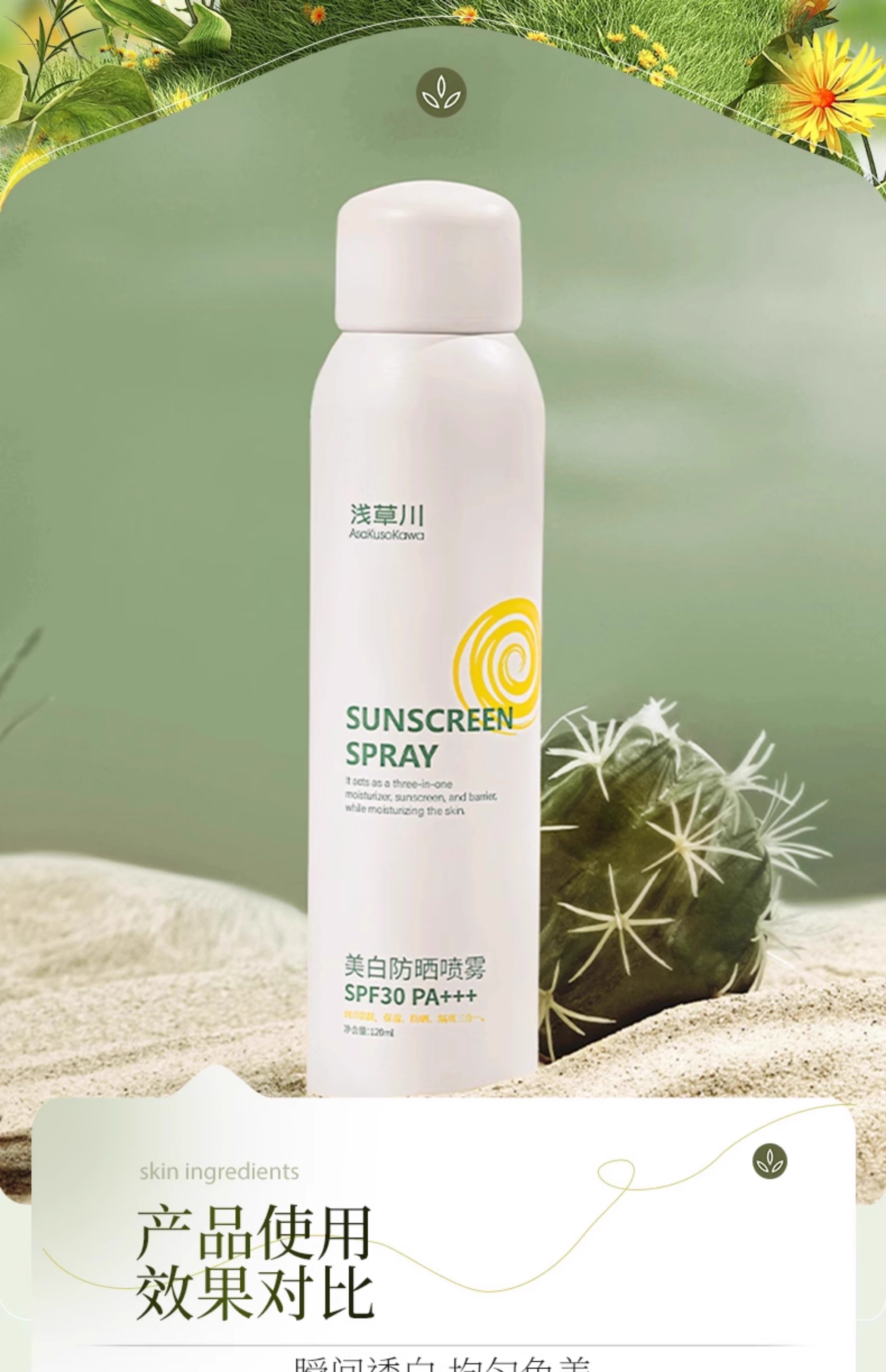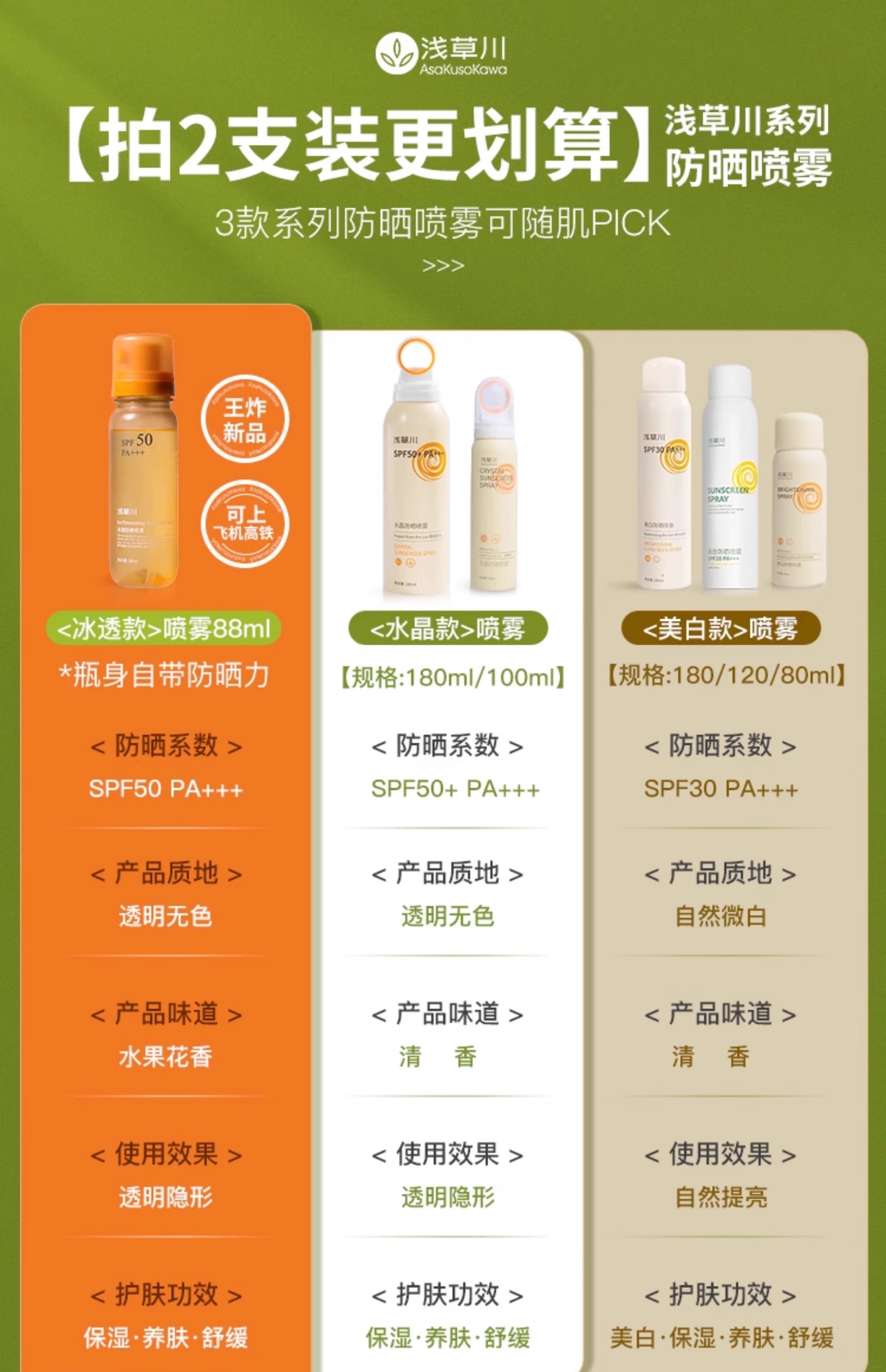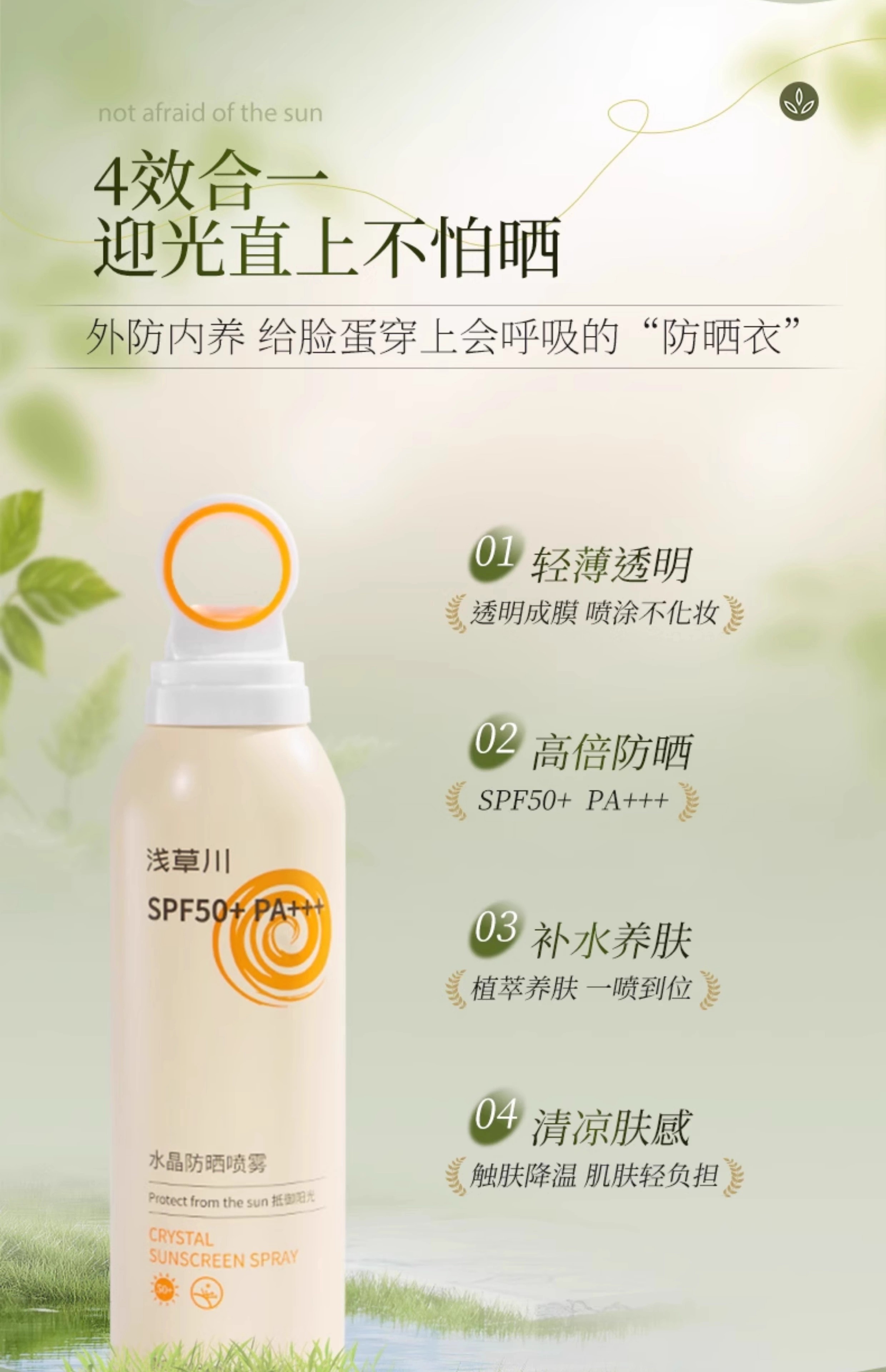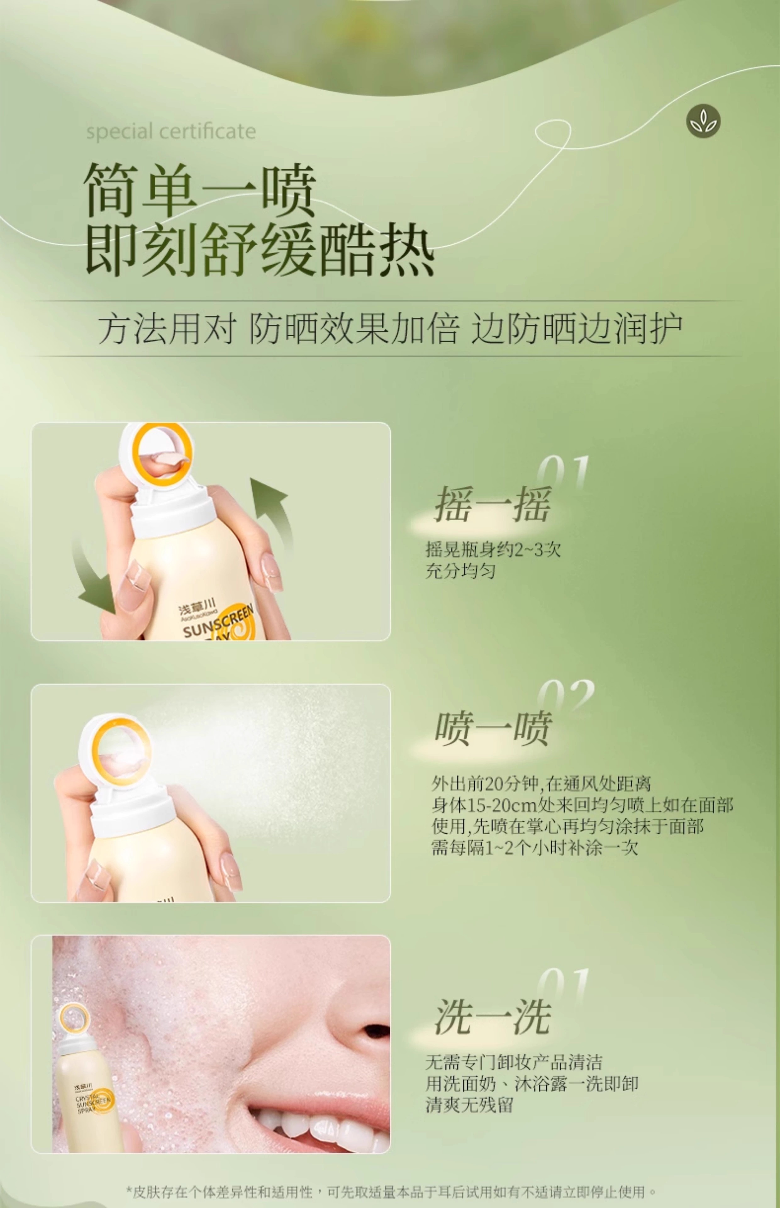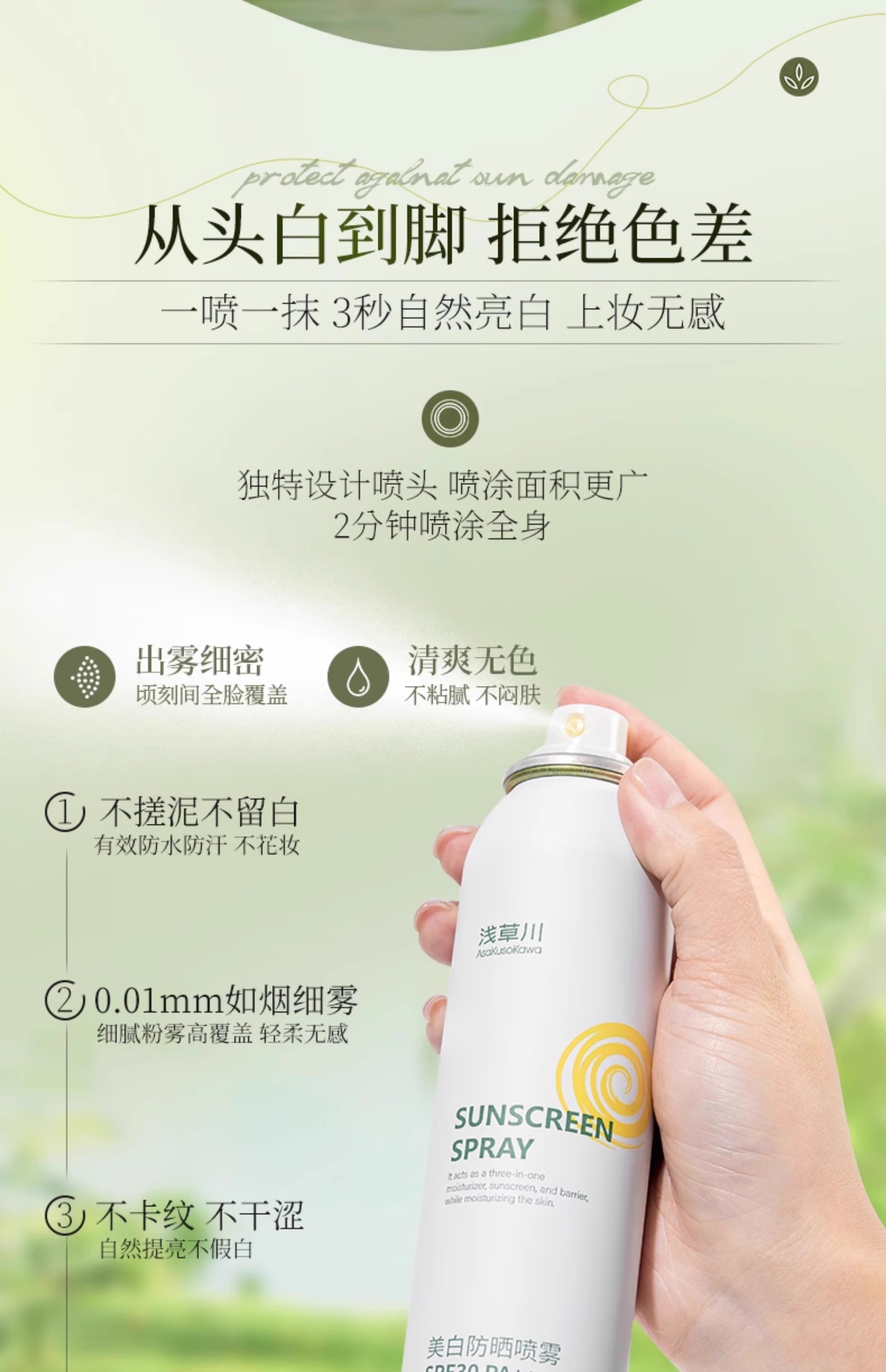 【第二瓶立减20元】2024年新款浅草川防护喷雾 戴森头款/水光美肌亮白防水防晒隔离面部全身180ml包邮
