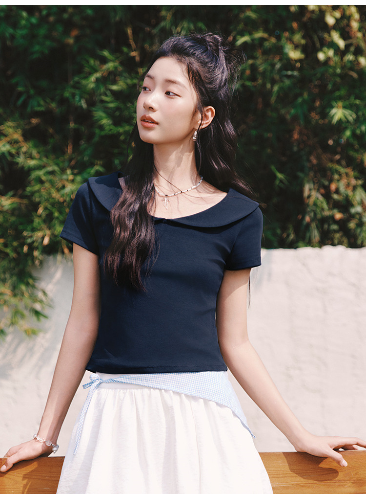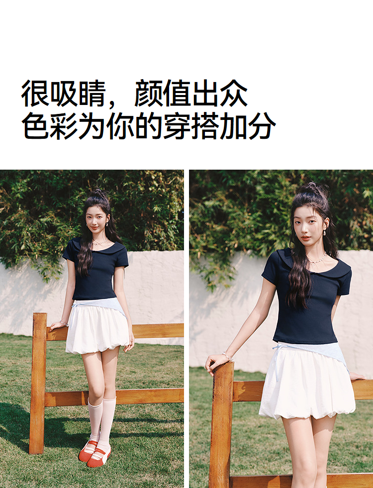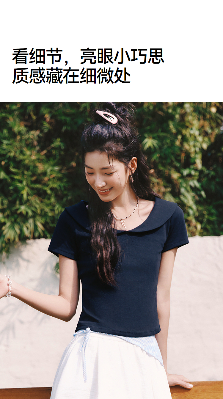 森马POLO衫女夏短款纯色娃娃领短袖正肩修身2026新款温柔气质衣服