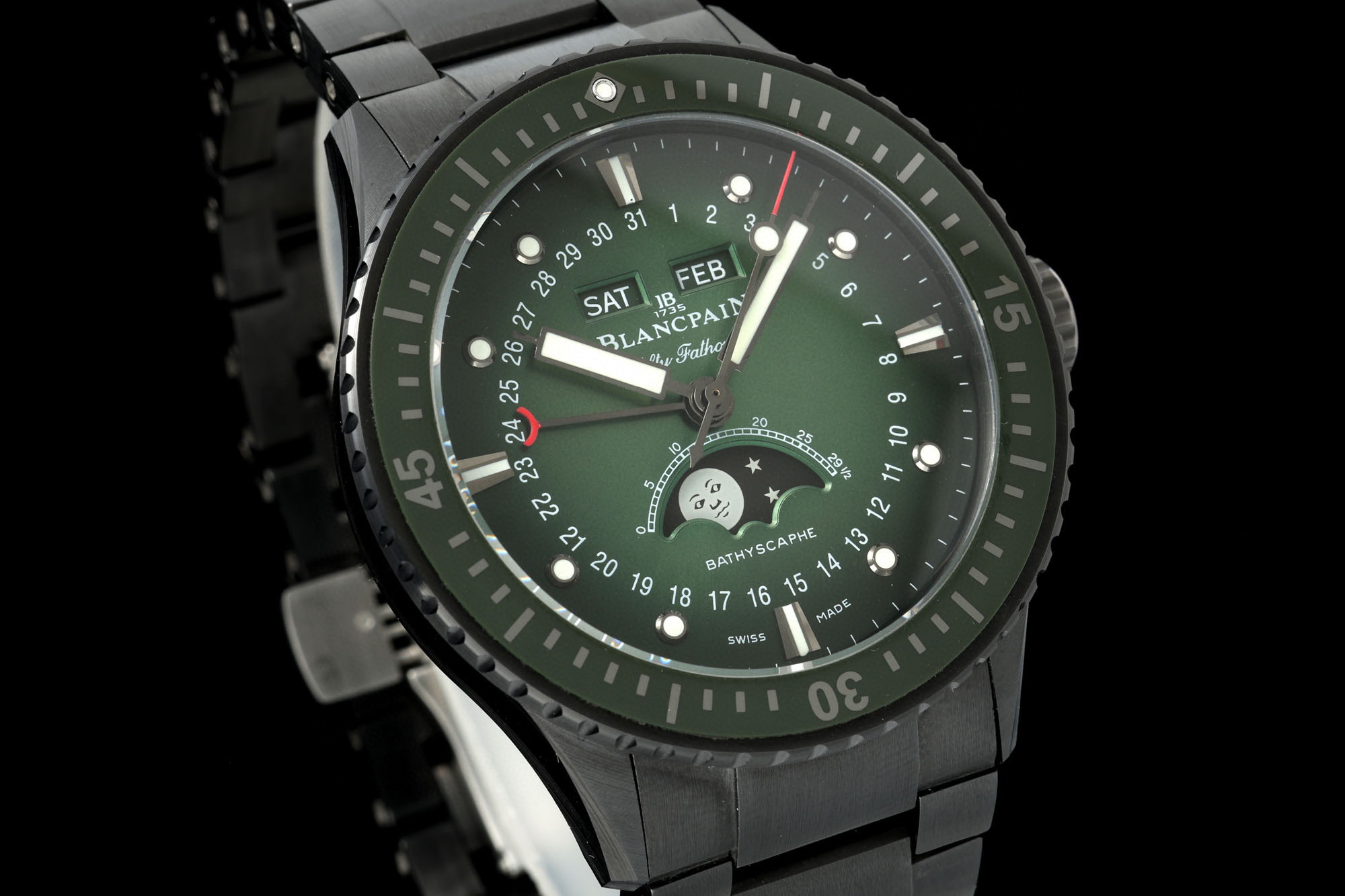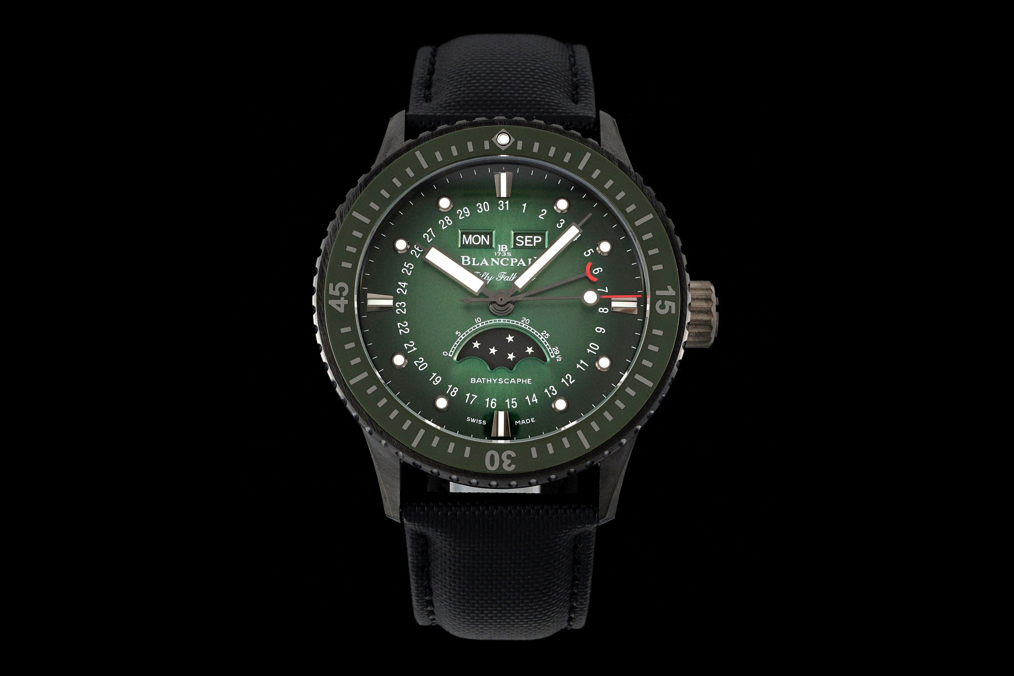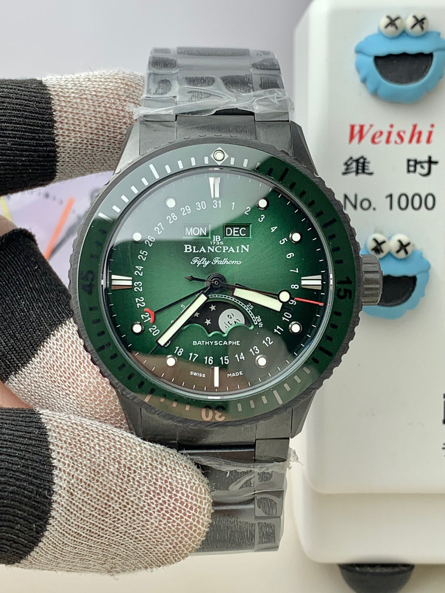 『NOOB official➕市场独家首创,没有之一』宝珀 五十寻 50寻全日历深潜器首创全陶瓷表链 1、集多功能于表盘显示(12 点钟位置的窗口显示星期和月份,以及 6 点钟位置的子表盘显示月相✔️