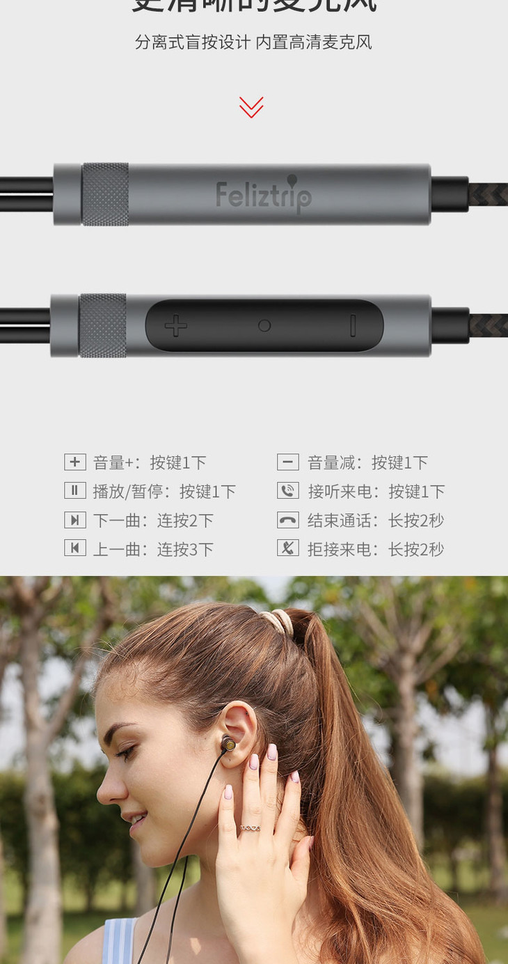 Feliztrip斐利斯 炫酷动铁动圈双单元带麦克风入耳式耳机高解析畅享游戏音乐 TR-H33