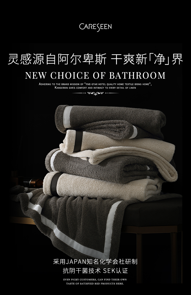 康尔馨2022新款日本抗阴干菌技术纯棉浴巾高级家用全棉浴巾女裹巾