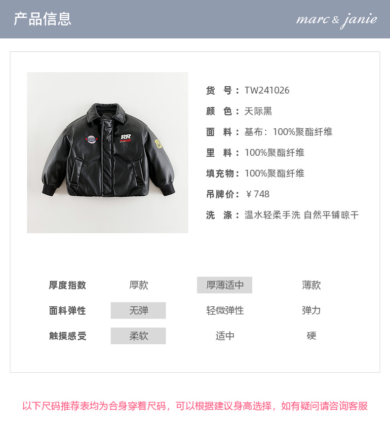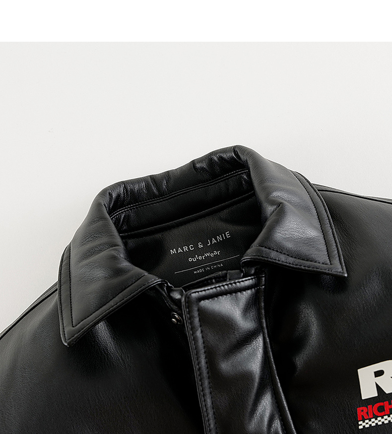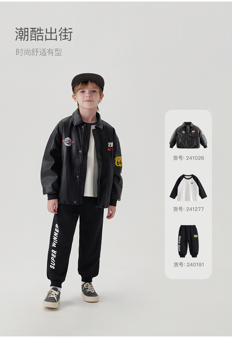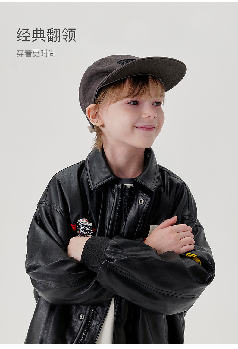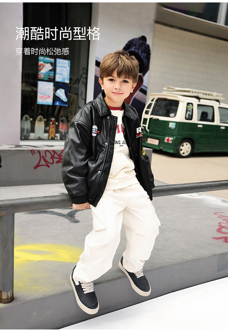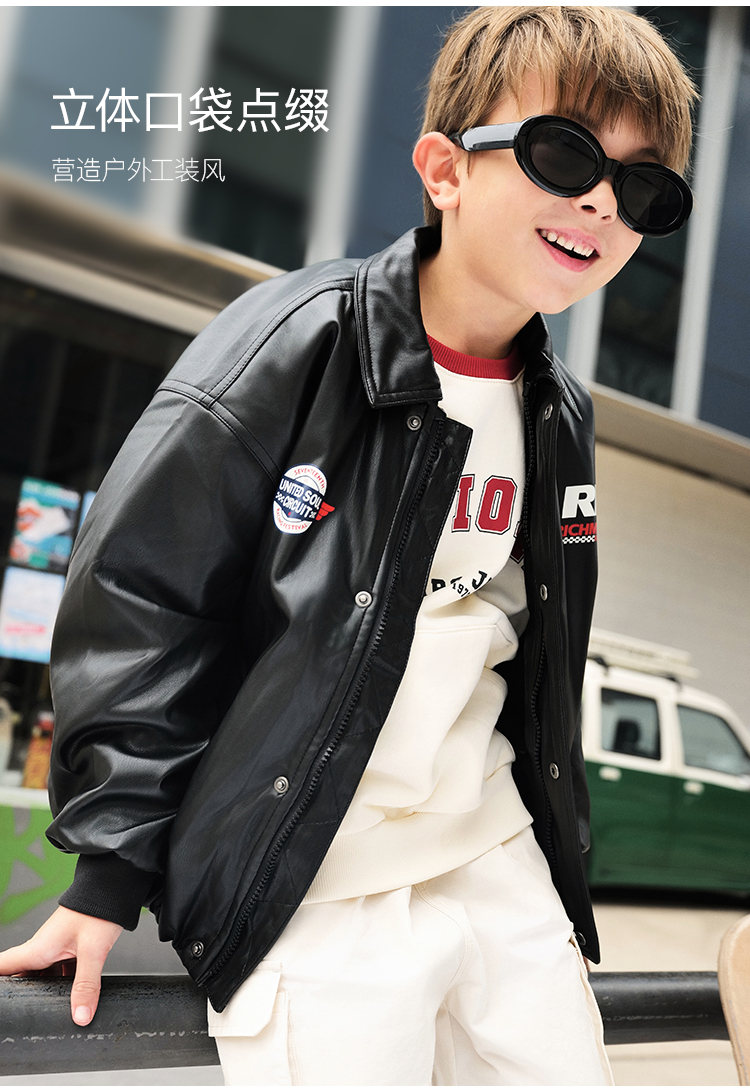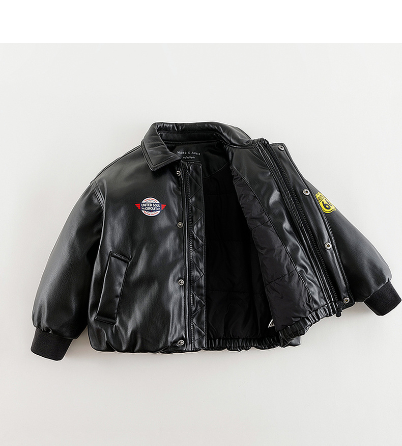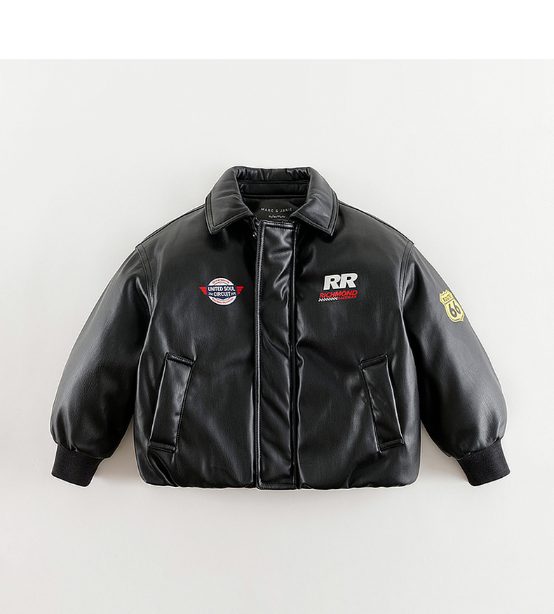 马克珍妮男童潮酷赛车风皮衣外套儿童飞行夹克棉衣秋冬新款241026