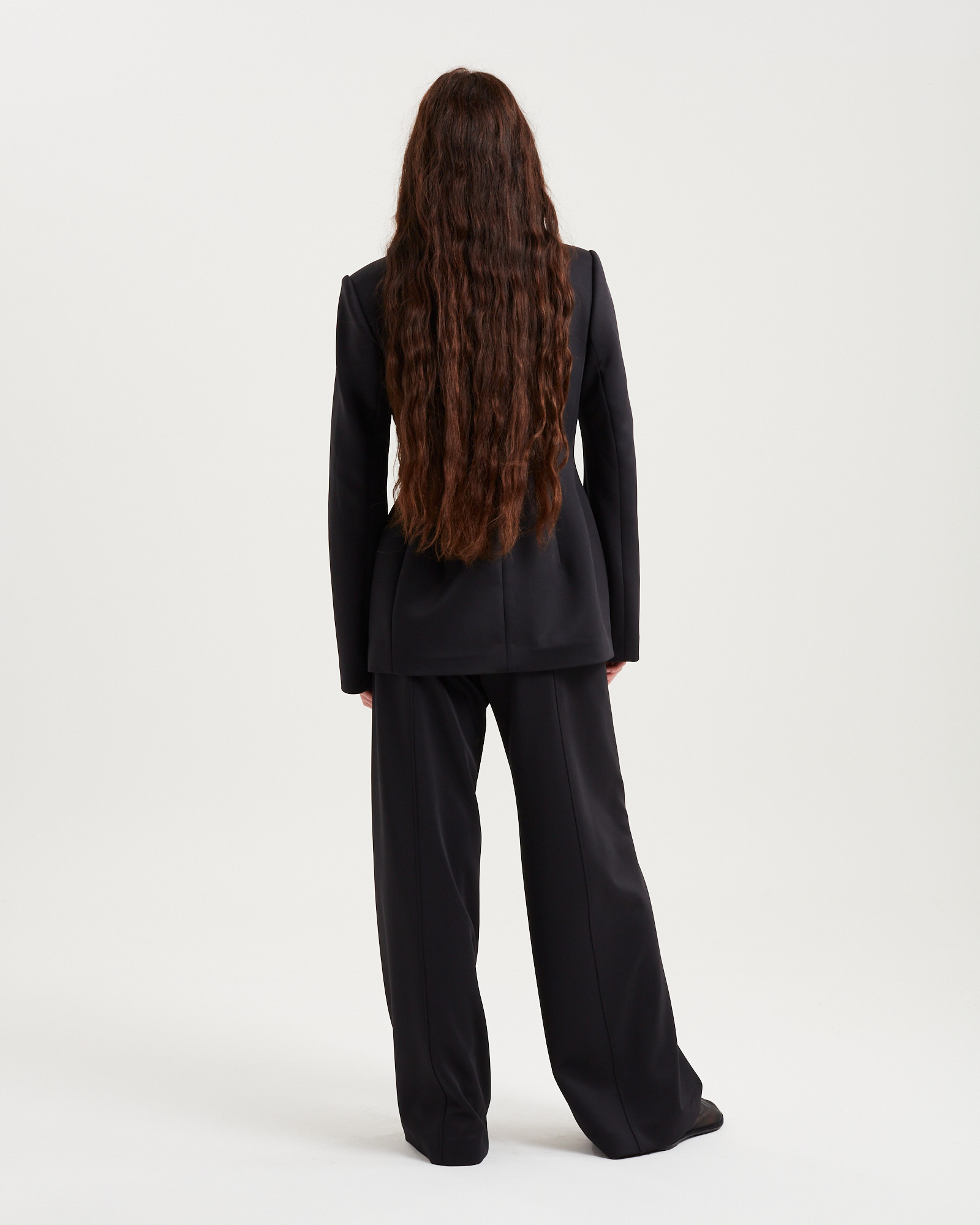 Kit Wide Trousers是上一季锥形款式裤的升级款。 廓形加宽,面料更加松弛地裹着小腿。 正面和背面沿腿侧缝的明线拼接,强调了装饰感。
