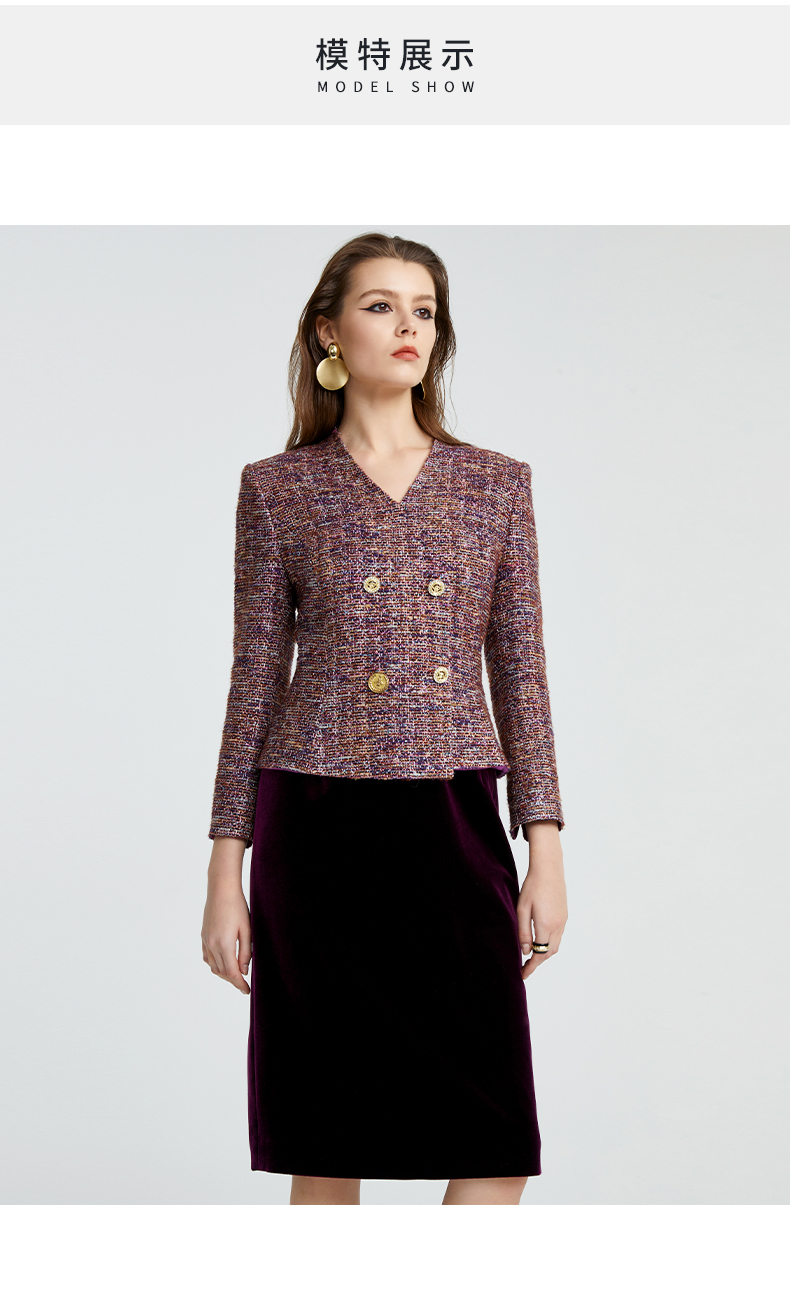 成熟、稳重、高贵典雅、大方得体 融合东方文化的含蓄和法国的浪漫 将创意的艺术性与消费需求相结合 为自信女性塑造高品质场合服装