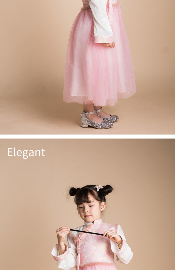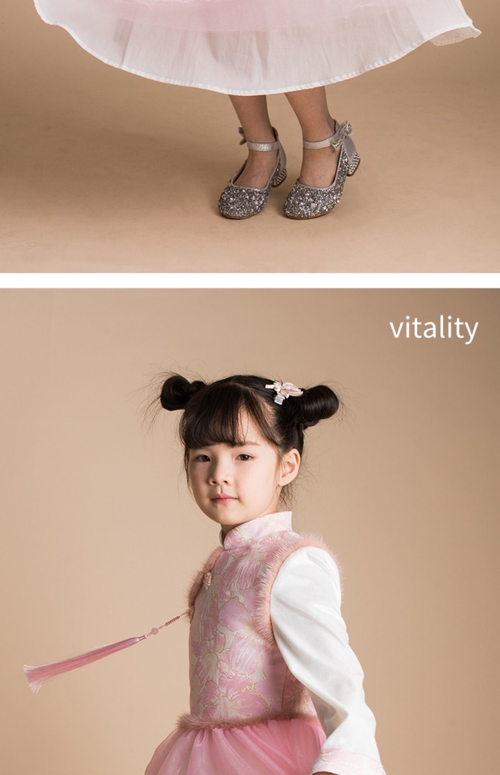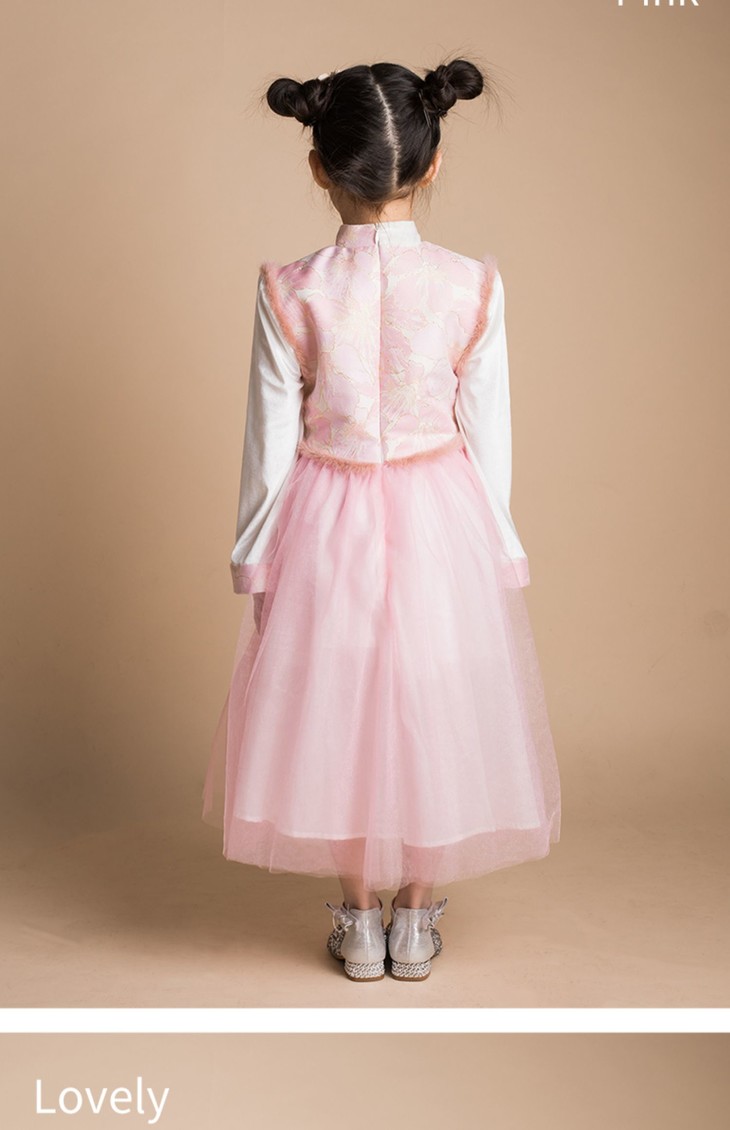 pureshare蓬纱馆 女童拜年礼服中国风宝宝连衣裙保暖冬装-粉月季提花年服