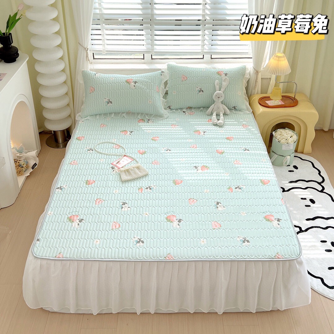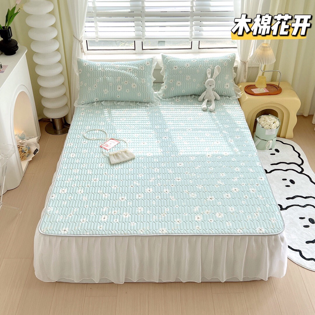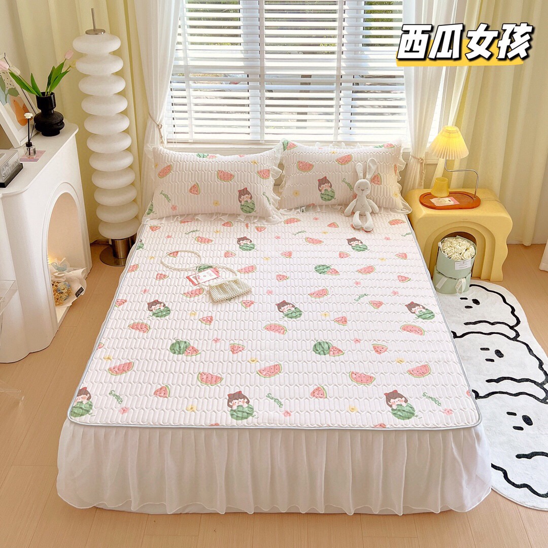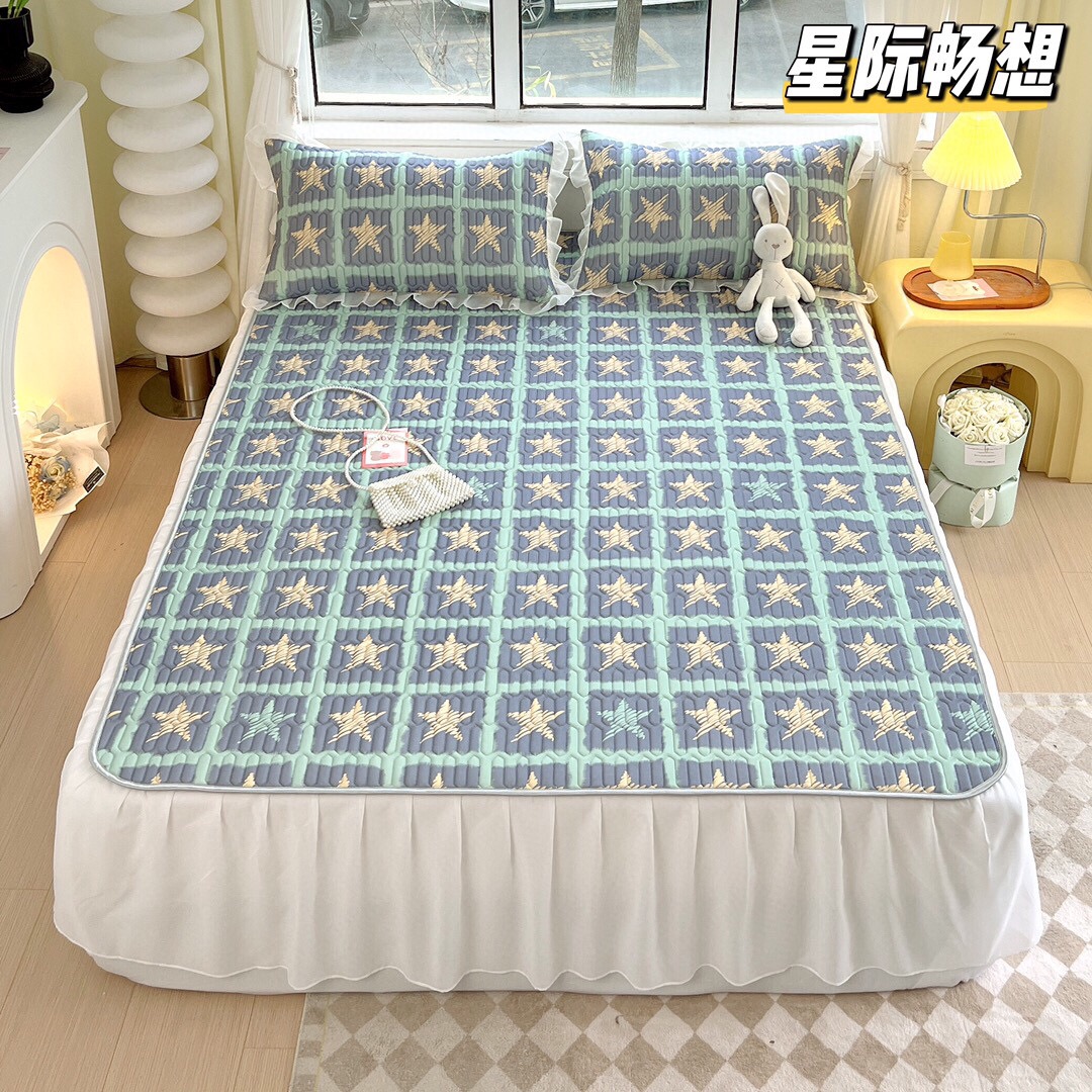 夏季新宠乳胶凉席床裙款三件套
