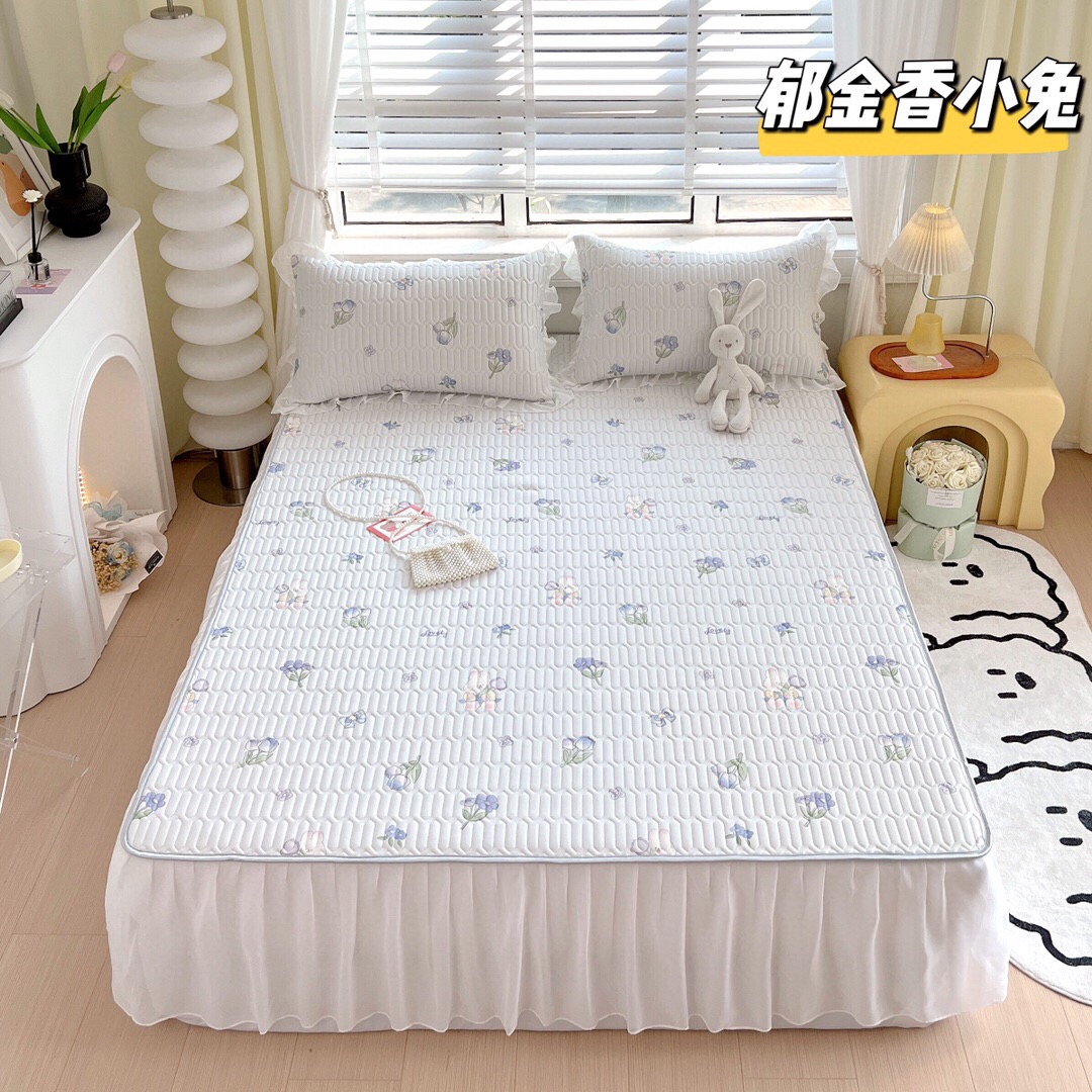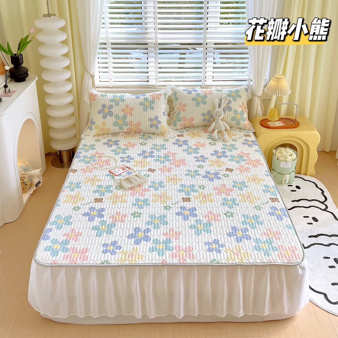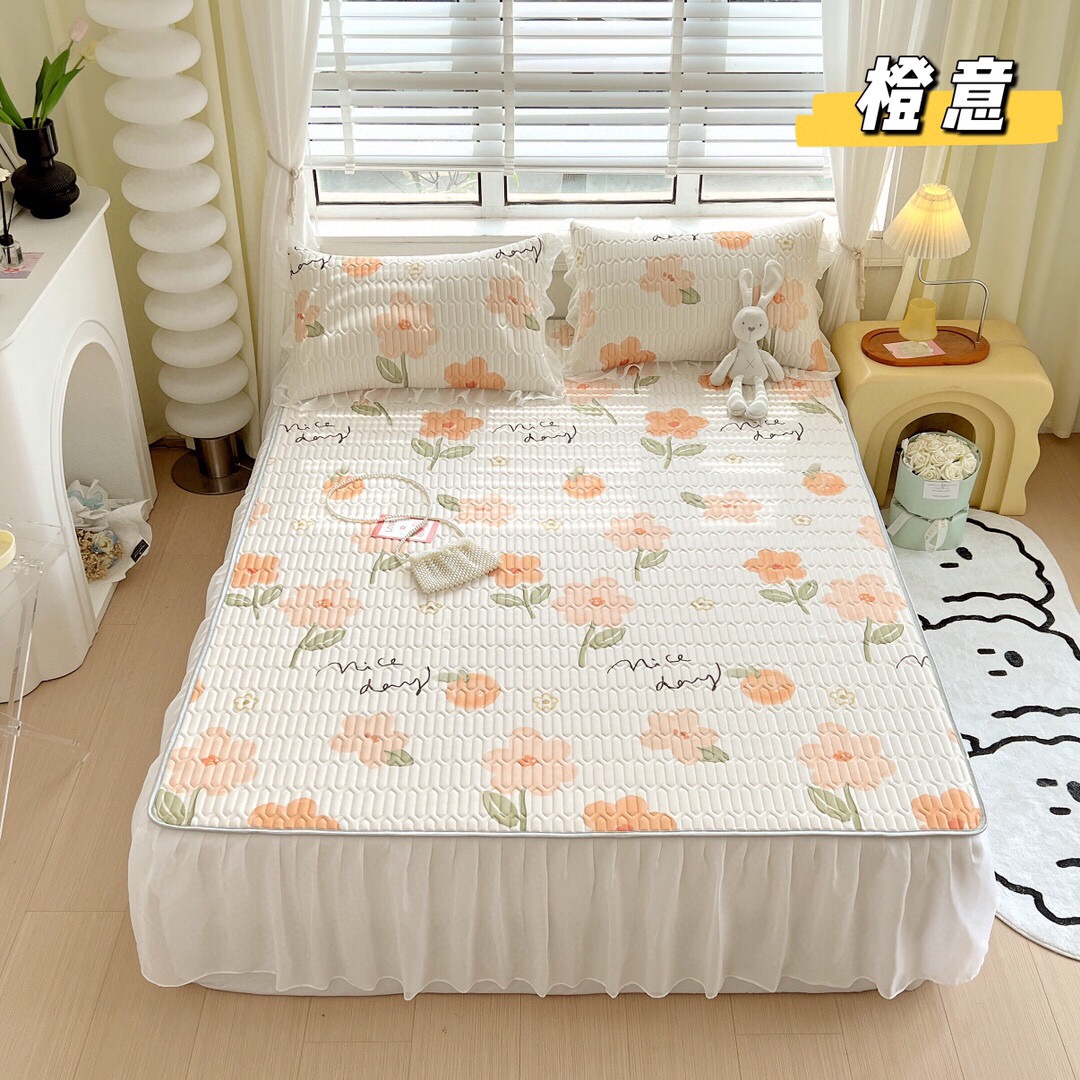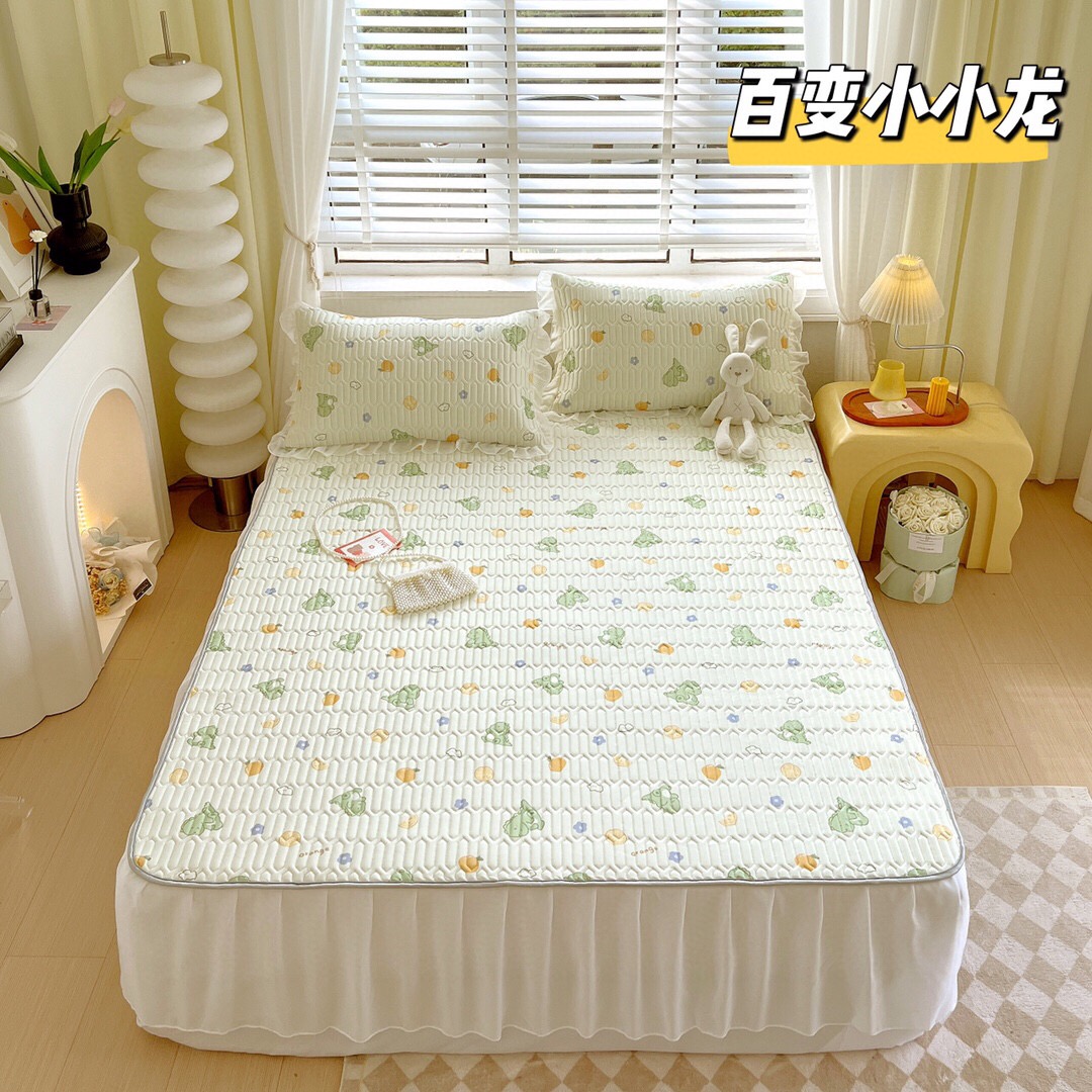 “夏被”【乳胶凉席床裙款三件套】A类凉感丝,环保数码印花 夹层高品质整张天然乳胶 可轻柔机洗/水洗-CC