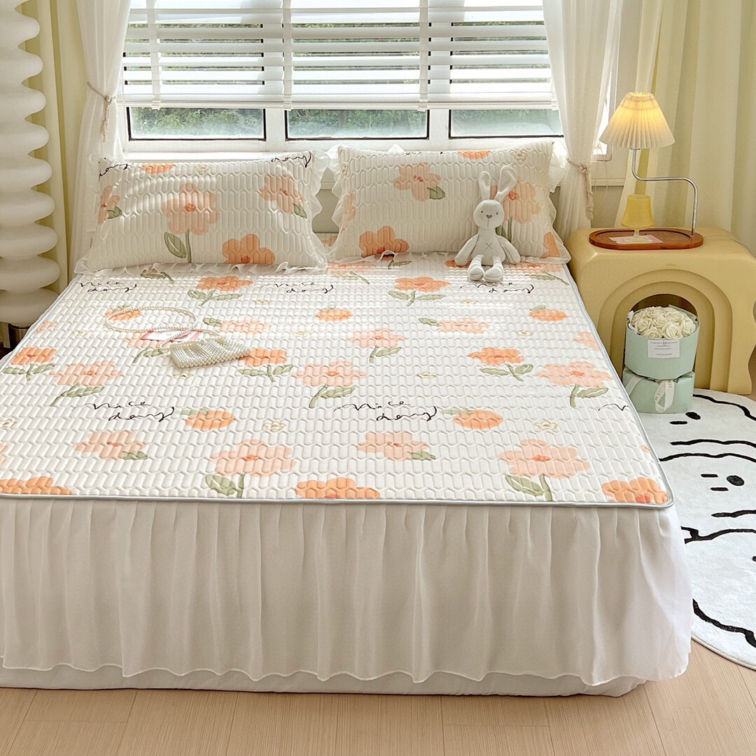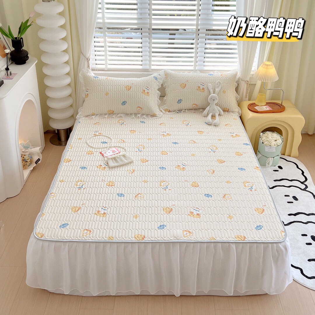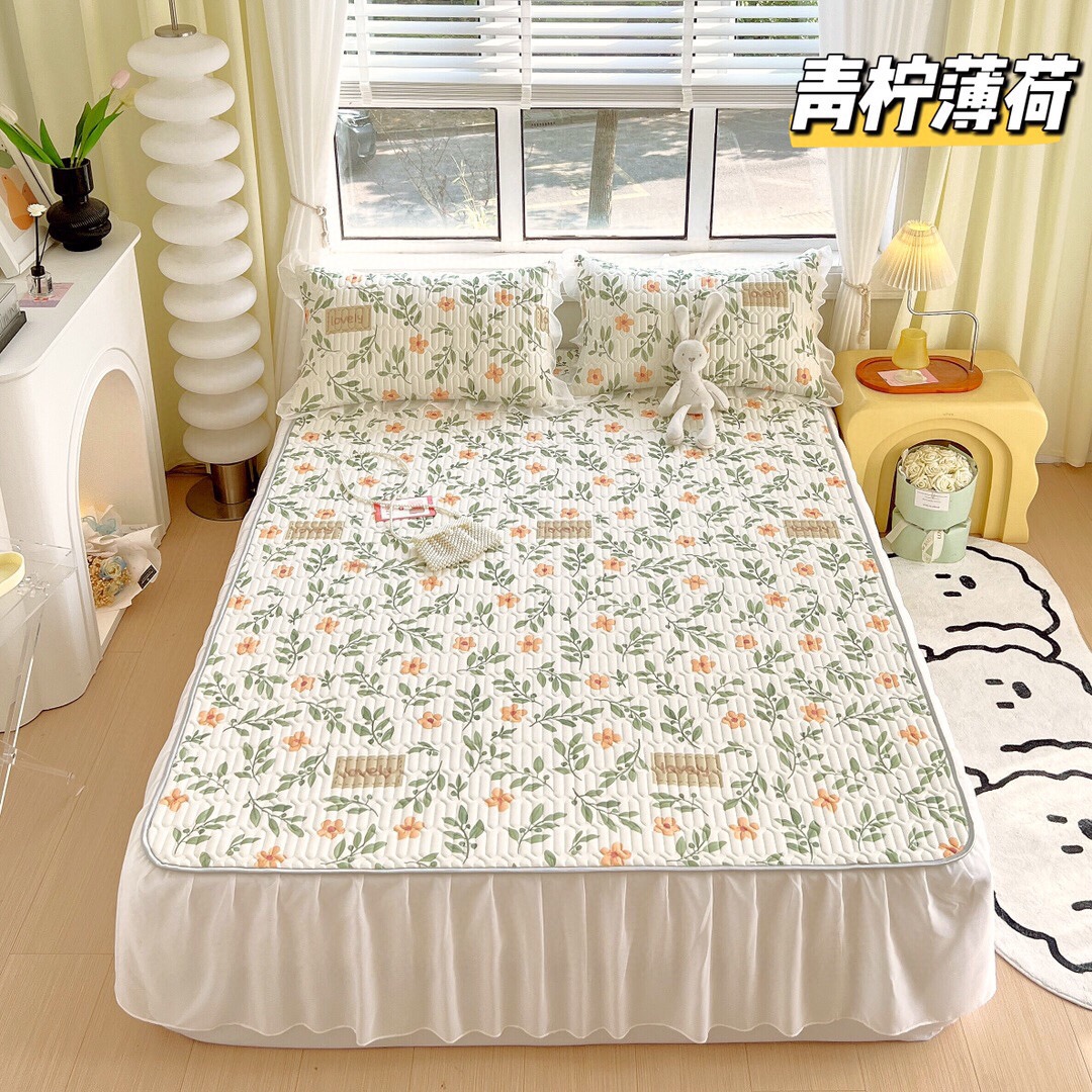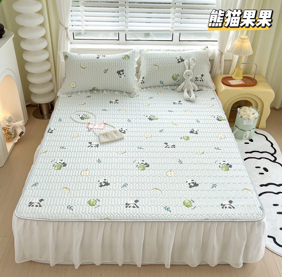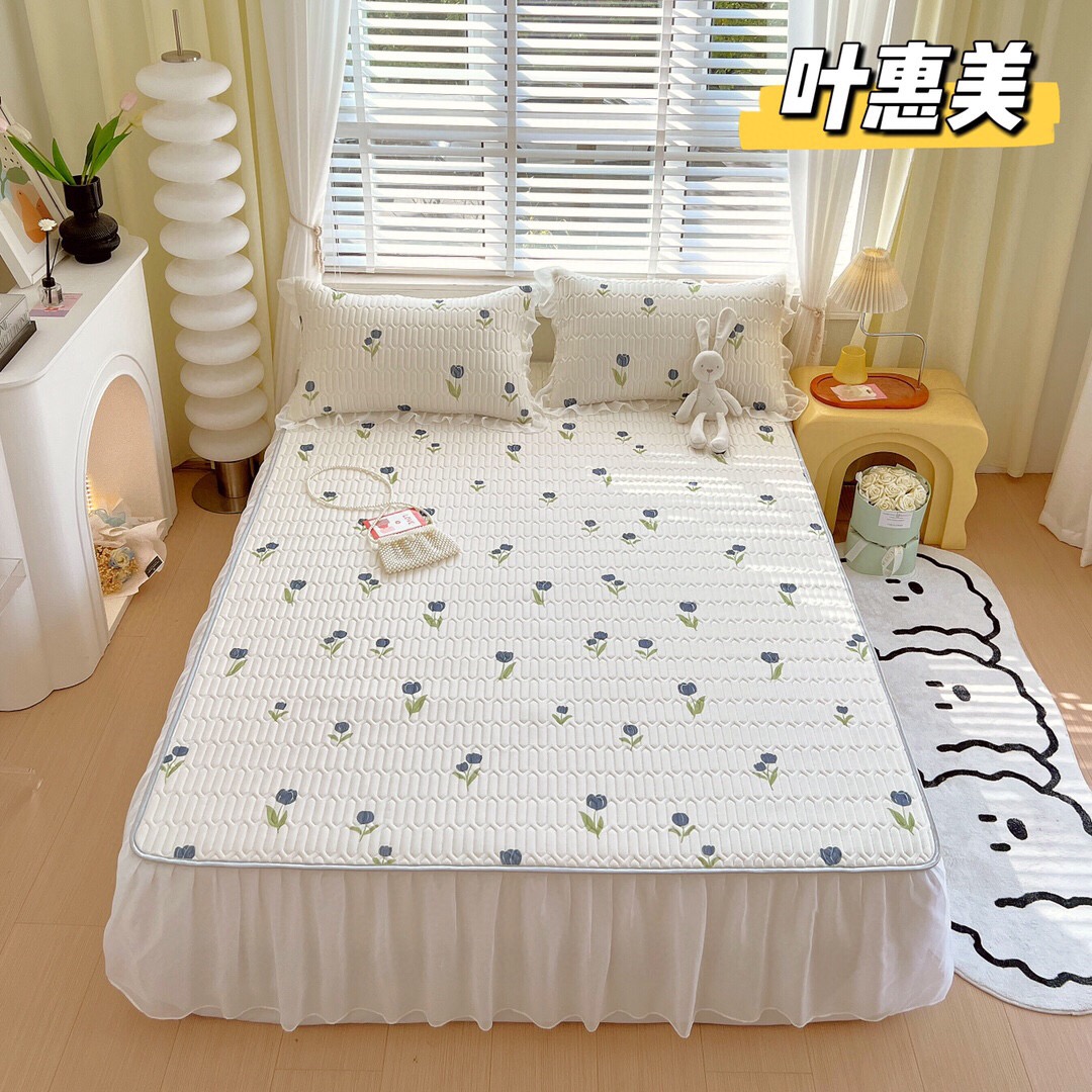 “夏被”【乳胶凉席床裙款三件套】A类凉感丝,环保数码印花 夹层高品质整张天然乳胶 可轻柔机洗/水洗-CC