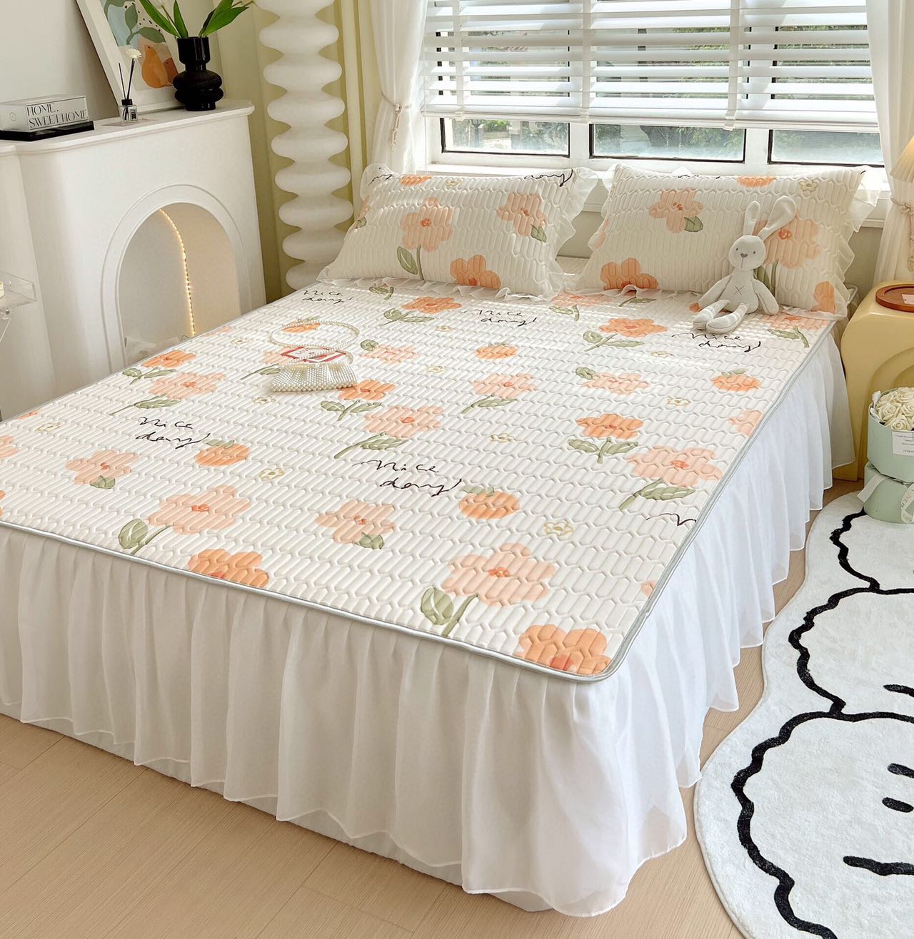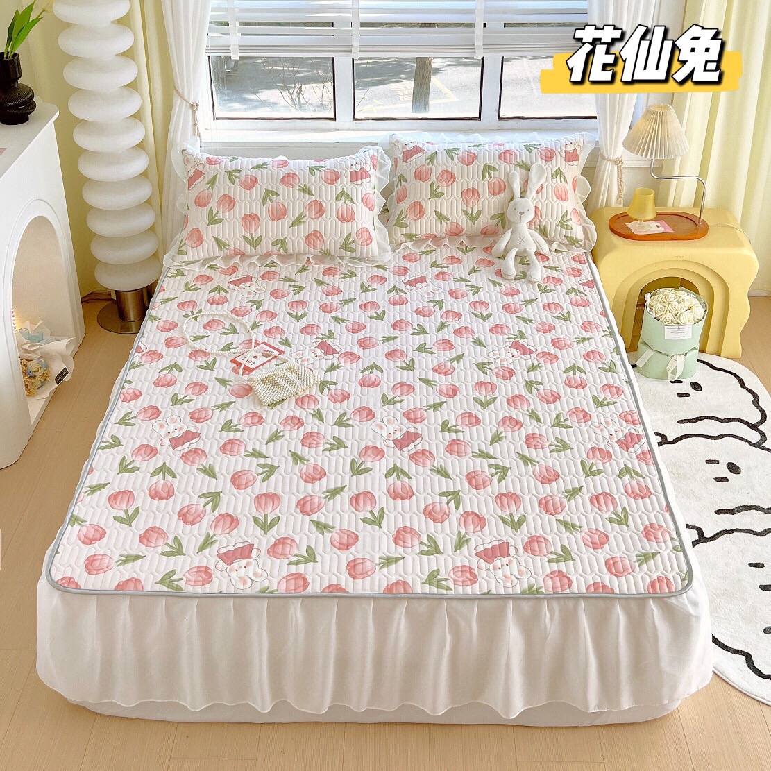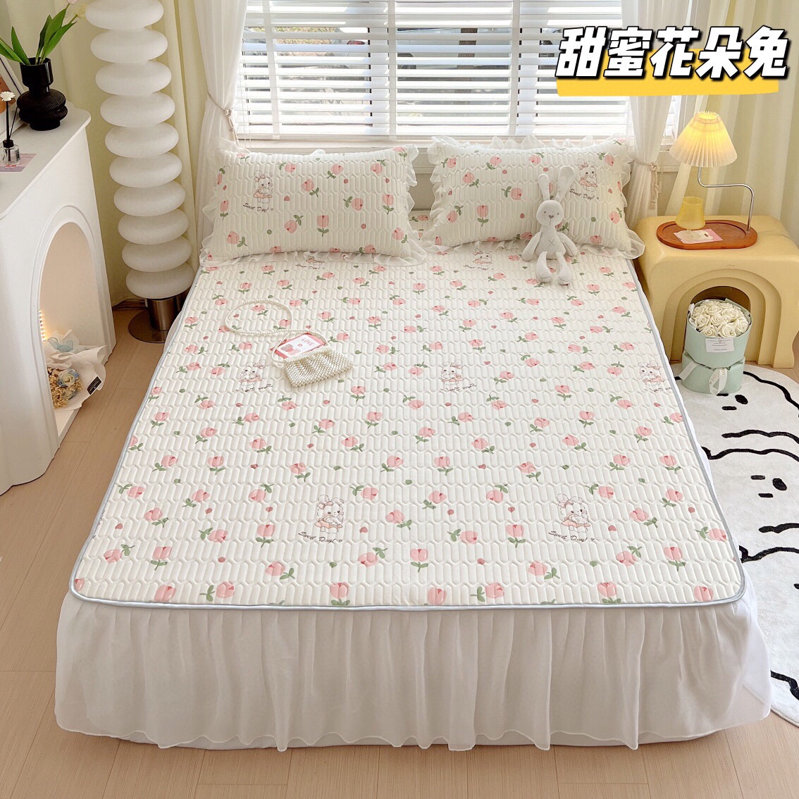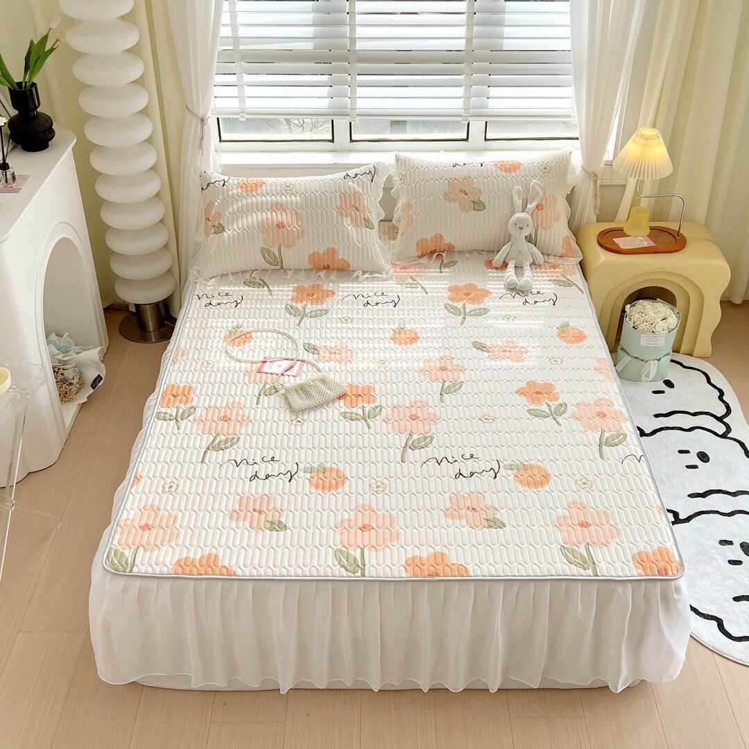 “夏被”【乳胶凉席床裙款三件套】A类凉感丝,环保数码印花 夹层高品质整张天然乳胶 可轻柔机洗/水洗-CC
