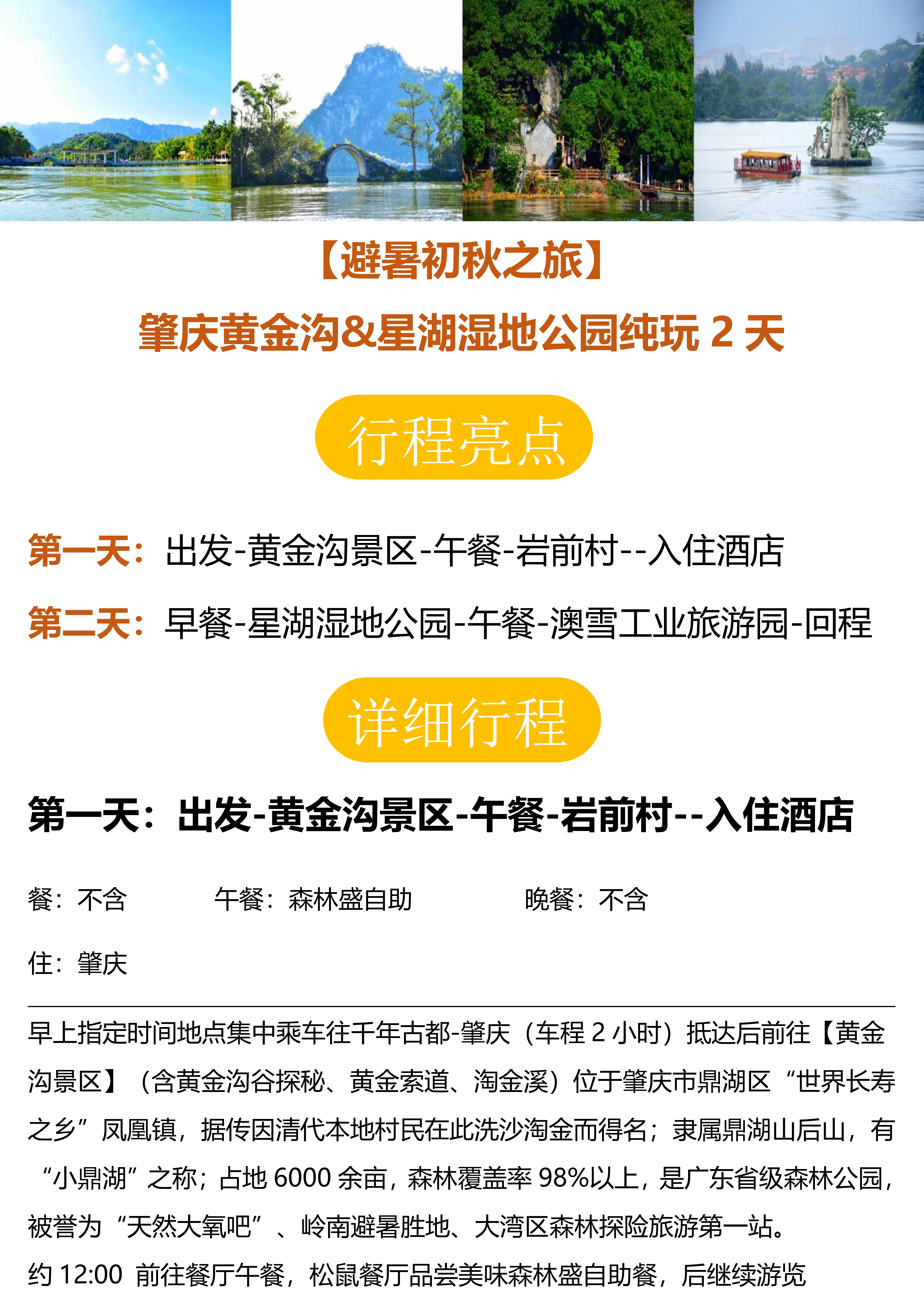 【避暑初秋之旅】 肇庆黄金沟&星湖湿地公园纯玩2天