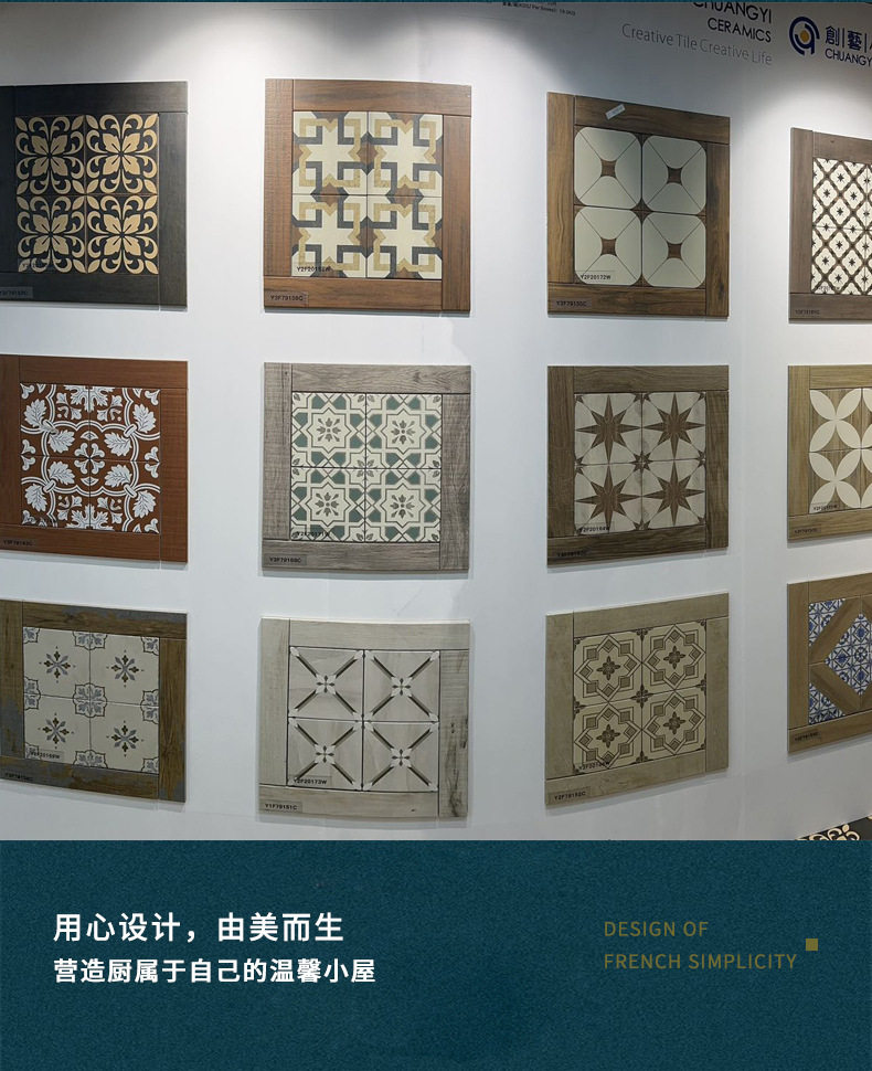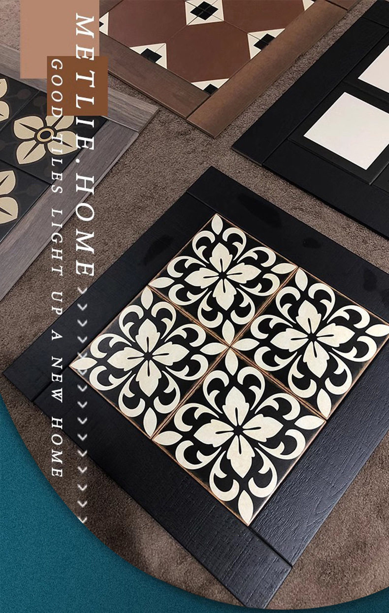 砖法式黑色复古中细条卫生间古风木纹479小玄关花砖轻厨房餐厅*75 商品图4
