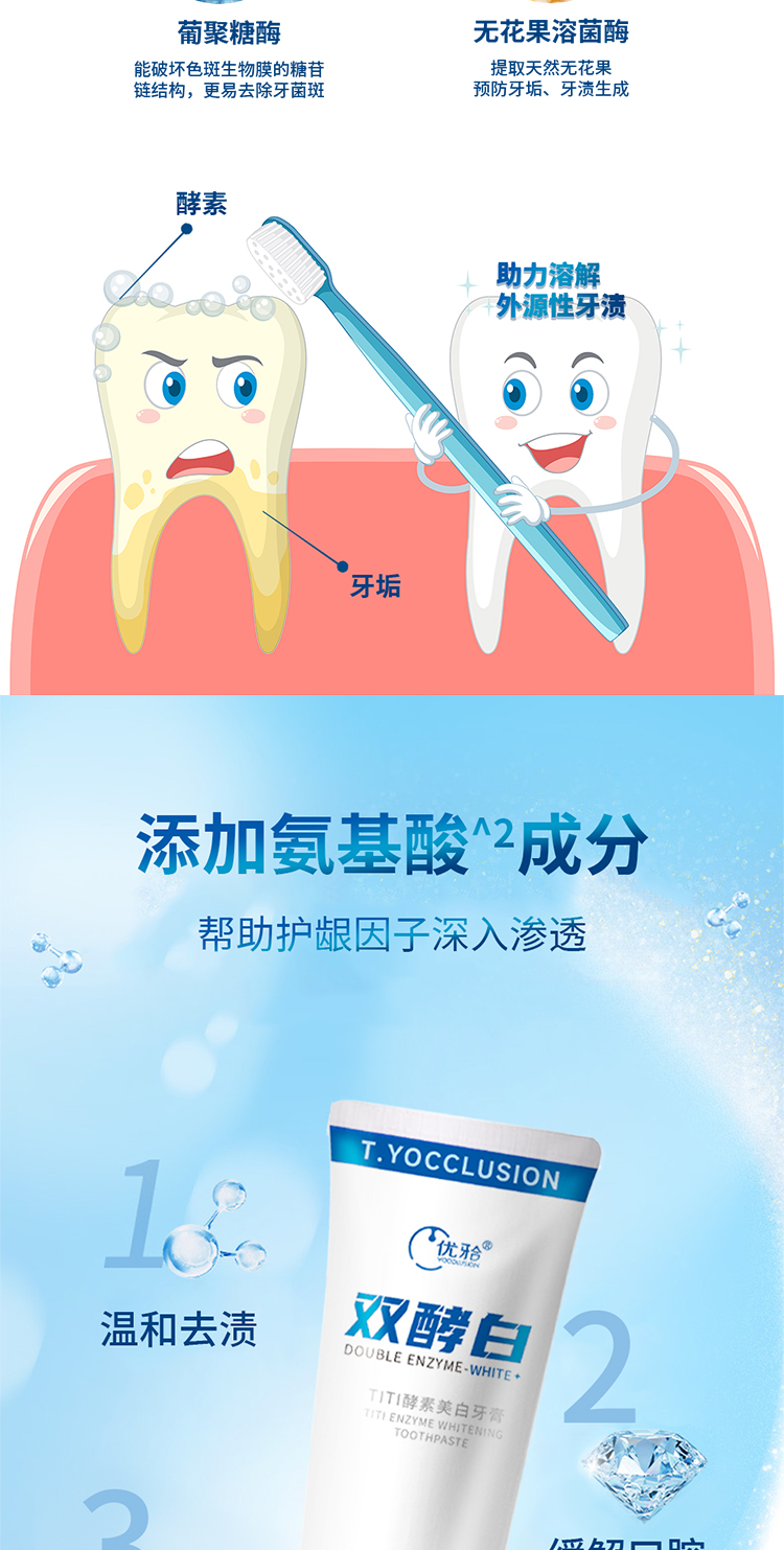 【牙医专享】酵素美白牙膏氨基酸植萃美白温和去渍牙膏