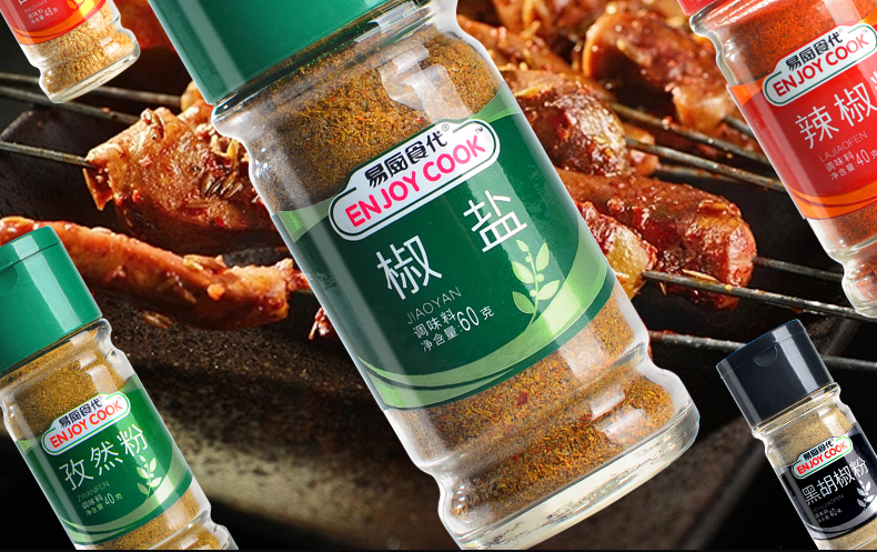 易厨食代烧烤调料套装 黑胡椒辣椒面孜然粉椒盐白芝麻 厨房调味品火锅蘸料香料套装