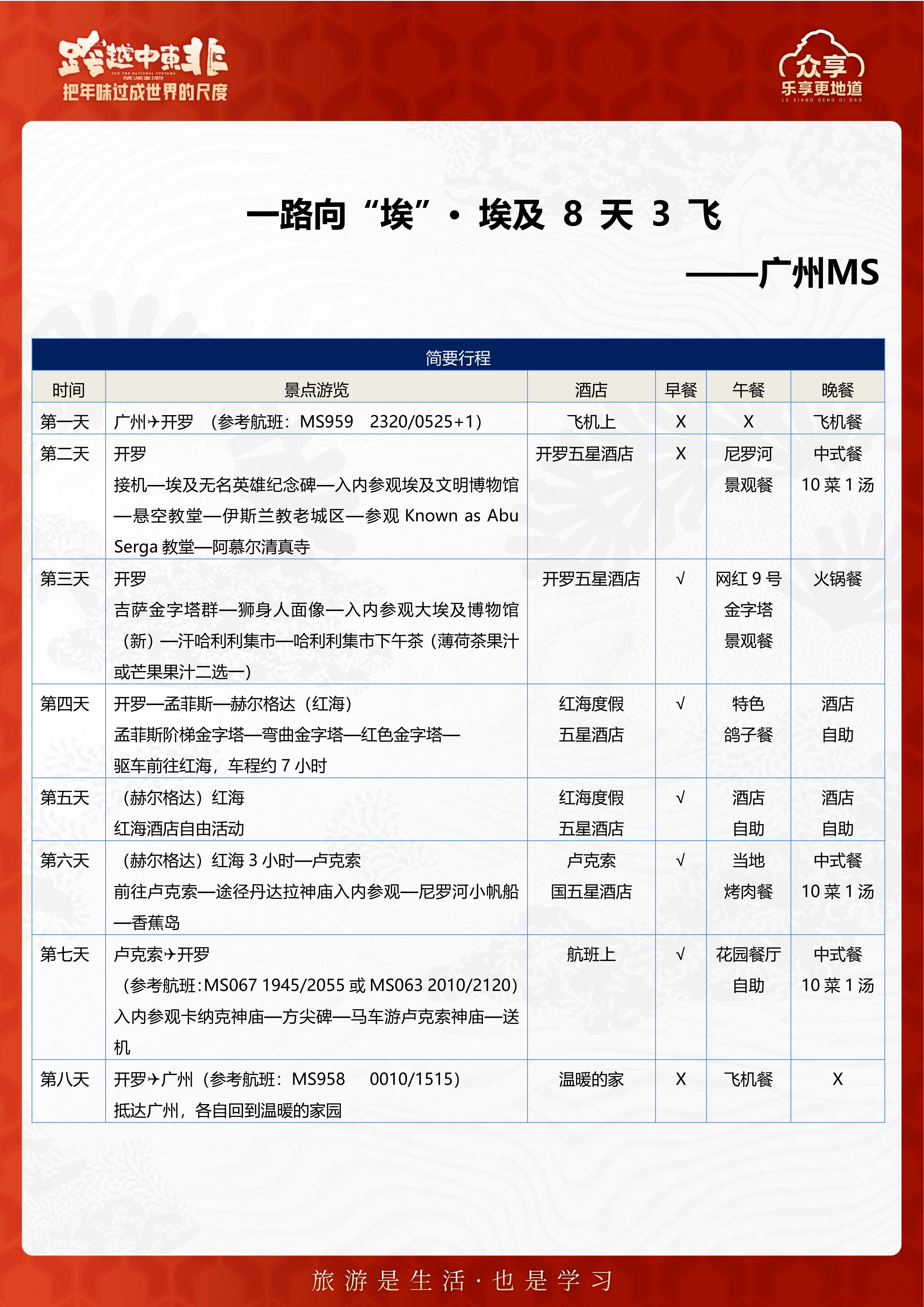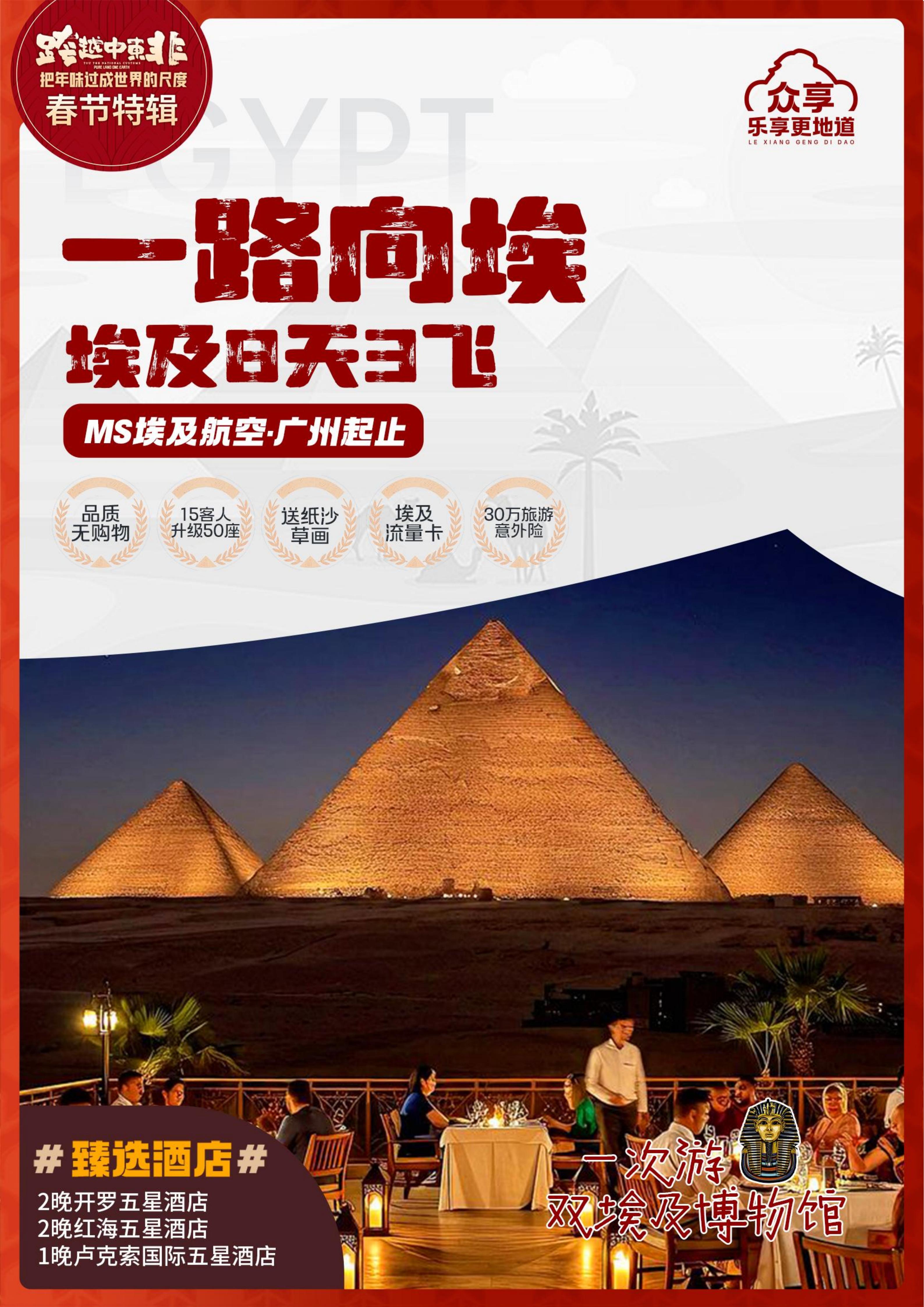 【春节】<埃及开罗+孟菲斯+赫尔格达+卢克索8天3飞>