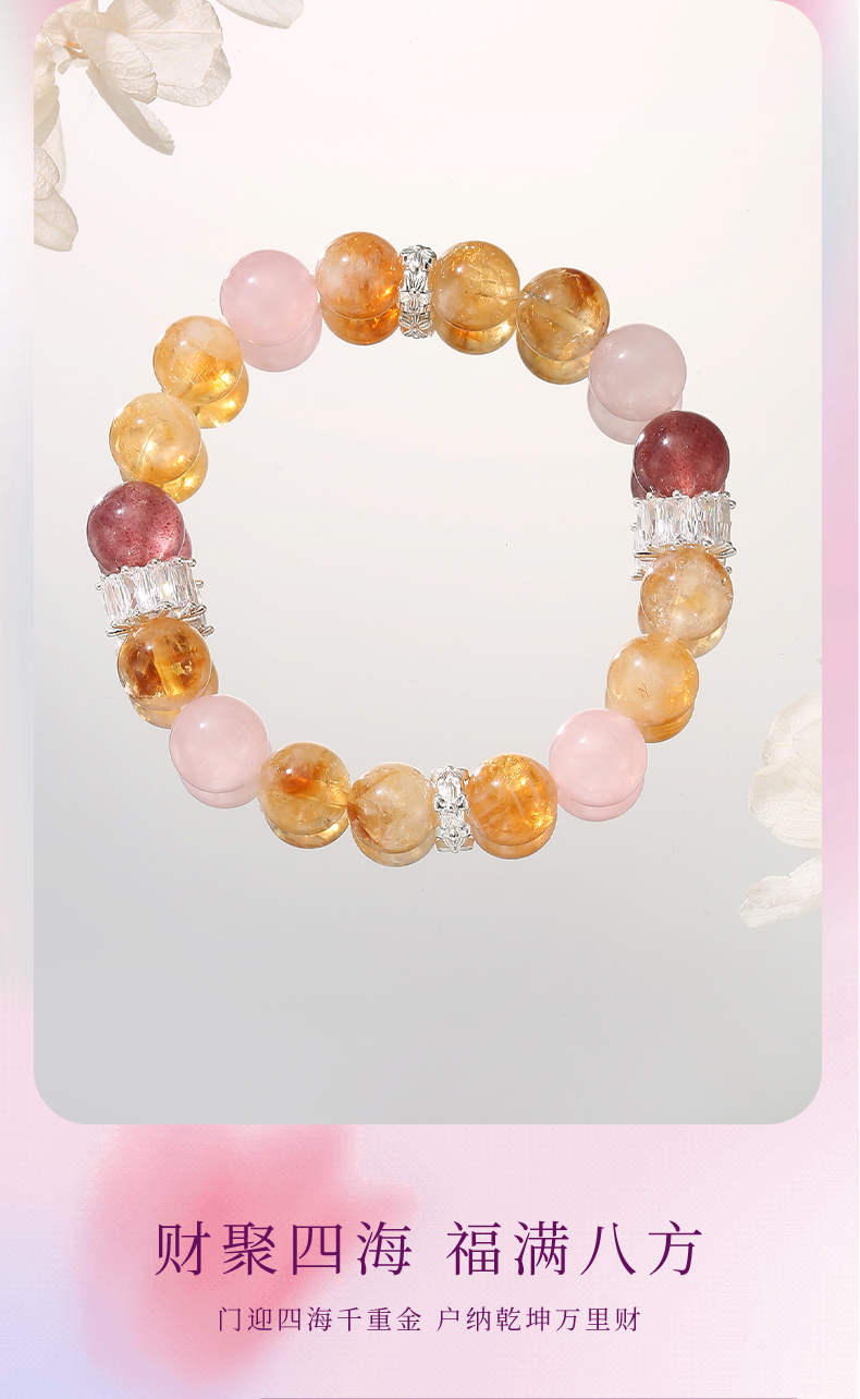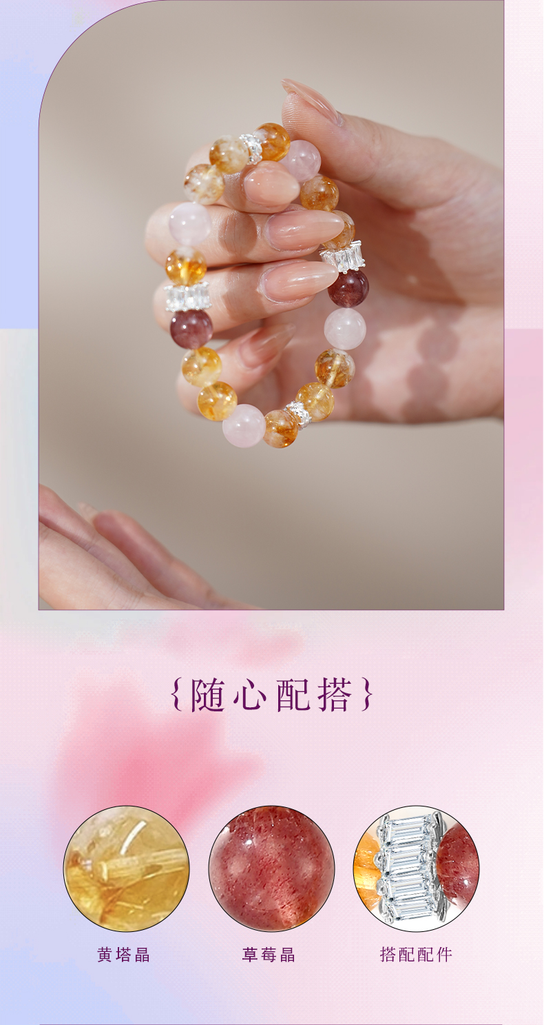 ★【材质】粉水晶+草莓晶+黄塔晶+铜