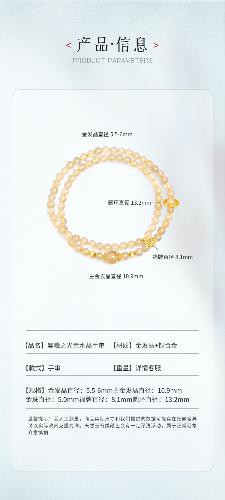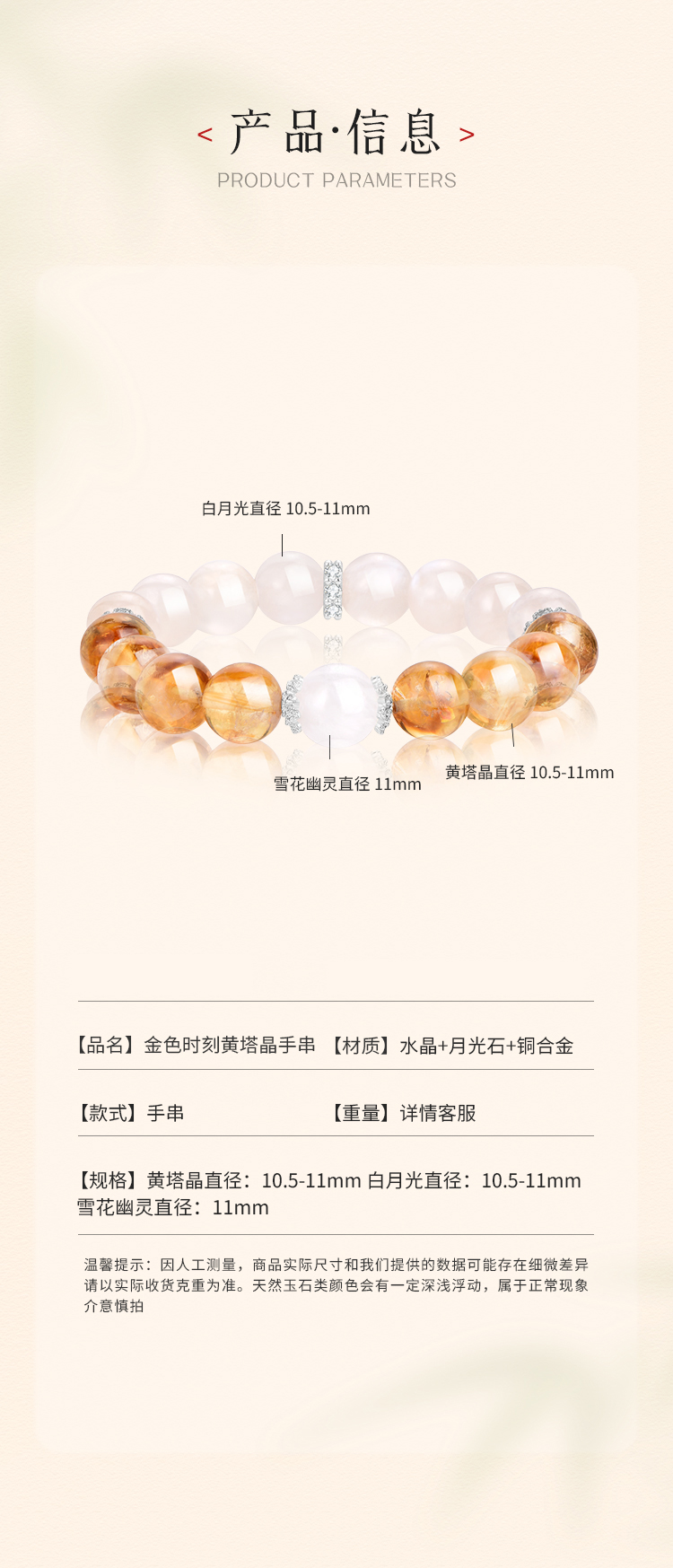 【乘风联名】金色时刻黄塔晶手串,10-11mm,ME-SJ016